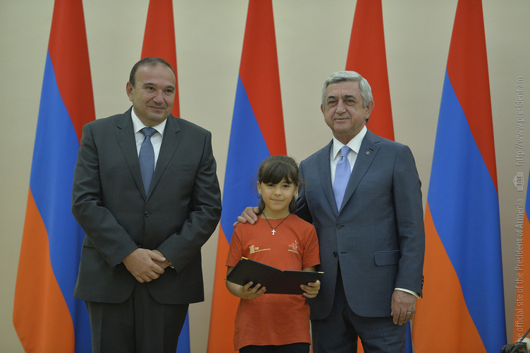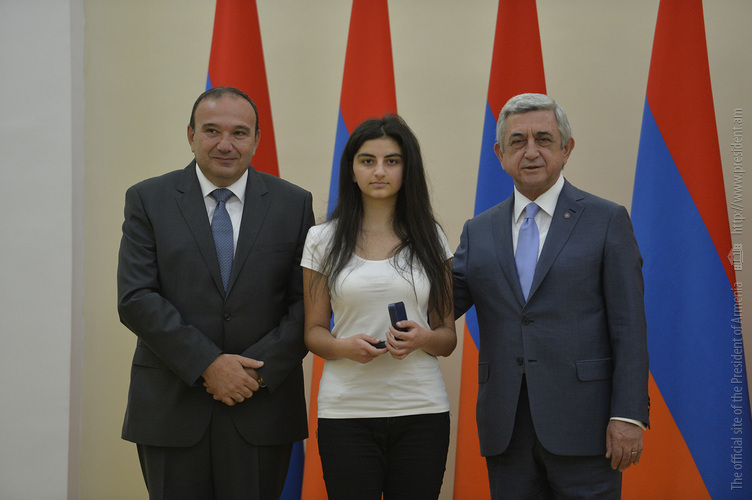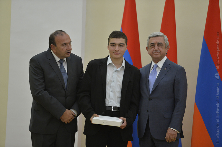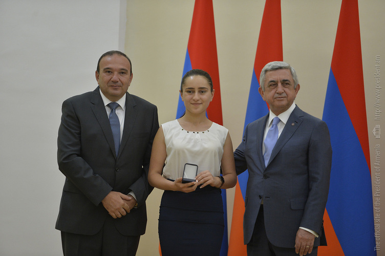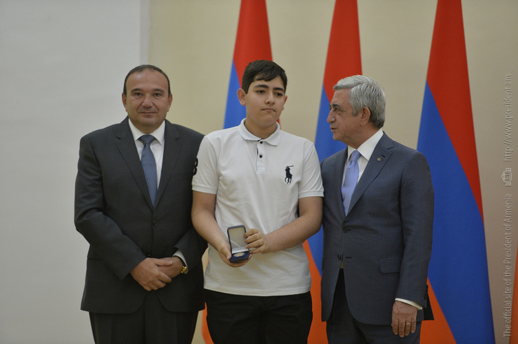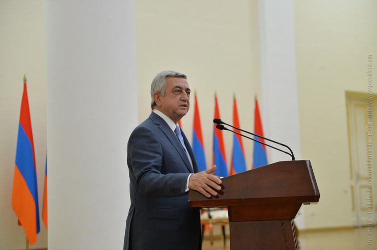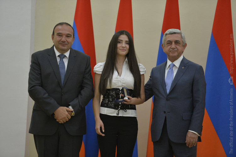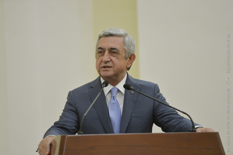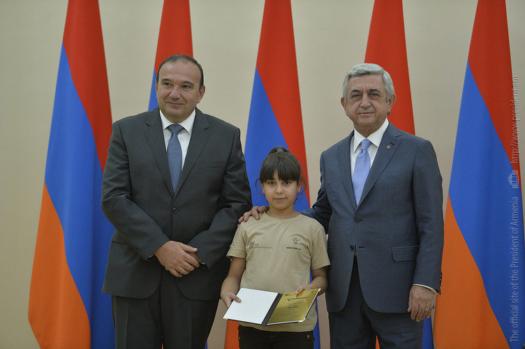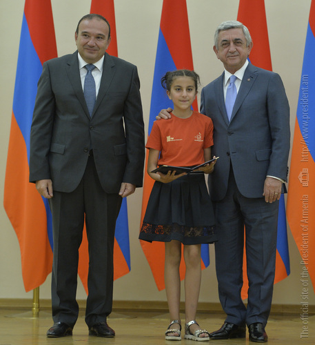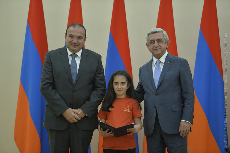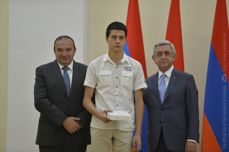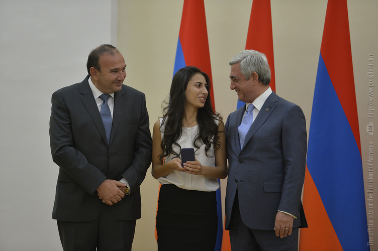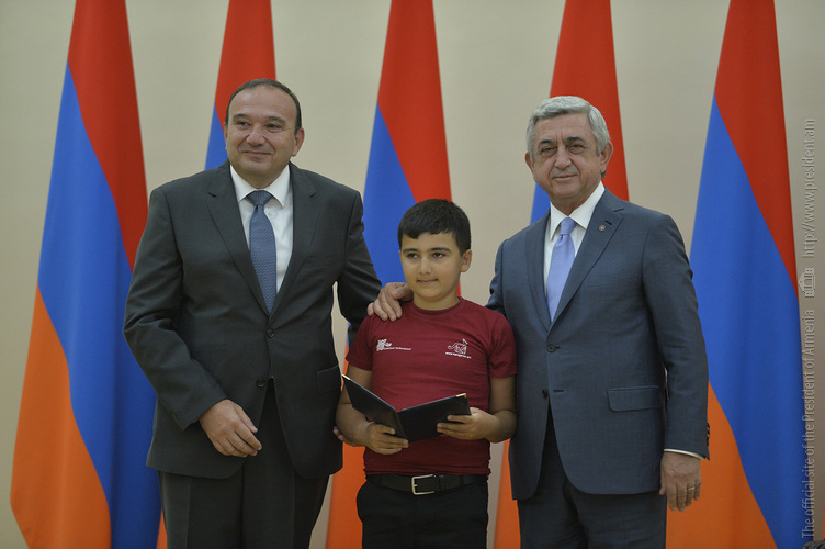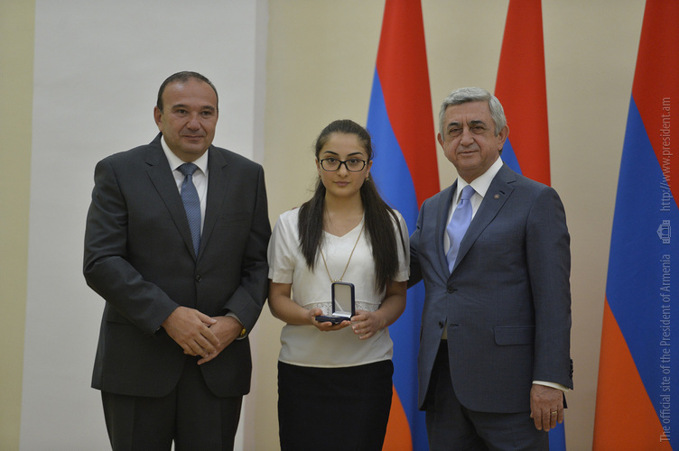 Մեծ սիրով ողջունում եմ ձեզ Հայաստանի Հանրապետության Նախագահի նստավայրում: Մեկ անգամ ևս ջերմորեն շնորհավորում եմ ձեզ համաշխարհային առարկայական օլիմպիադաներում, «Կենգուրու» և «Մեղու» մրցույթներում ունեցած հաջողությունների համար, անշուշտ նաև՝ դպրոցը գերազանցությամբ ավարտելու կապակցությամբ: Ձեր հաջողությունները մեր ողջ ժողովրդին ուժ ու եռանդ են հաղորդում, ինձ անձամբ ոգևորում և հավատ են ներշնչում մեր երկրի ապագայի հանդեպ: Այսպիսի հանդիպումներն արդեն դարձել են ավանդական, և պարզ է թե ինչու: Մենք ուզում ենք սրանով ընդգծել, որ մենք մեր երկրի ապագան կապում են գիտության և կրթության զարգացման հետ ու նաև ցանկանում ենք, որպեսզի ձեր օրինակը վարակիչ լինի ձեր հասակակիցների, ձեր հեռու ու մոտիկ բարեկամների, ձեր դասընկերների համար: Գիտության և ուսման նկատմամբ ծարավը, եթե այն կարելի է լավ առումով վարակ համարել, երբեք չի կարելի կանխարգելել, ընդհակառակը՝ մենք ցանկանում ենք, որ այդ վարակը տարածվի ամենուր: