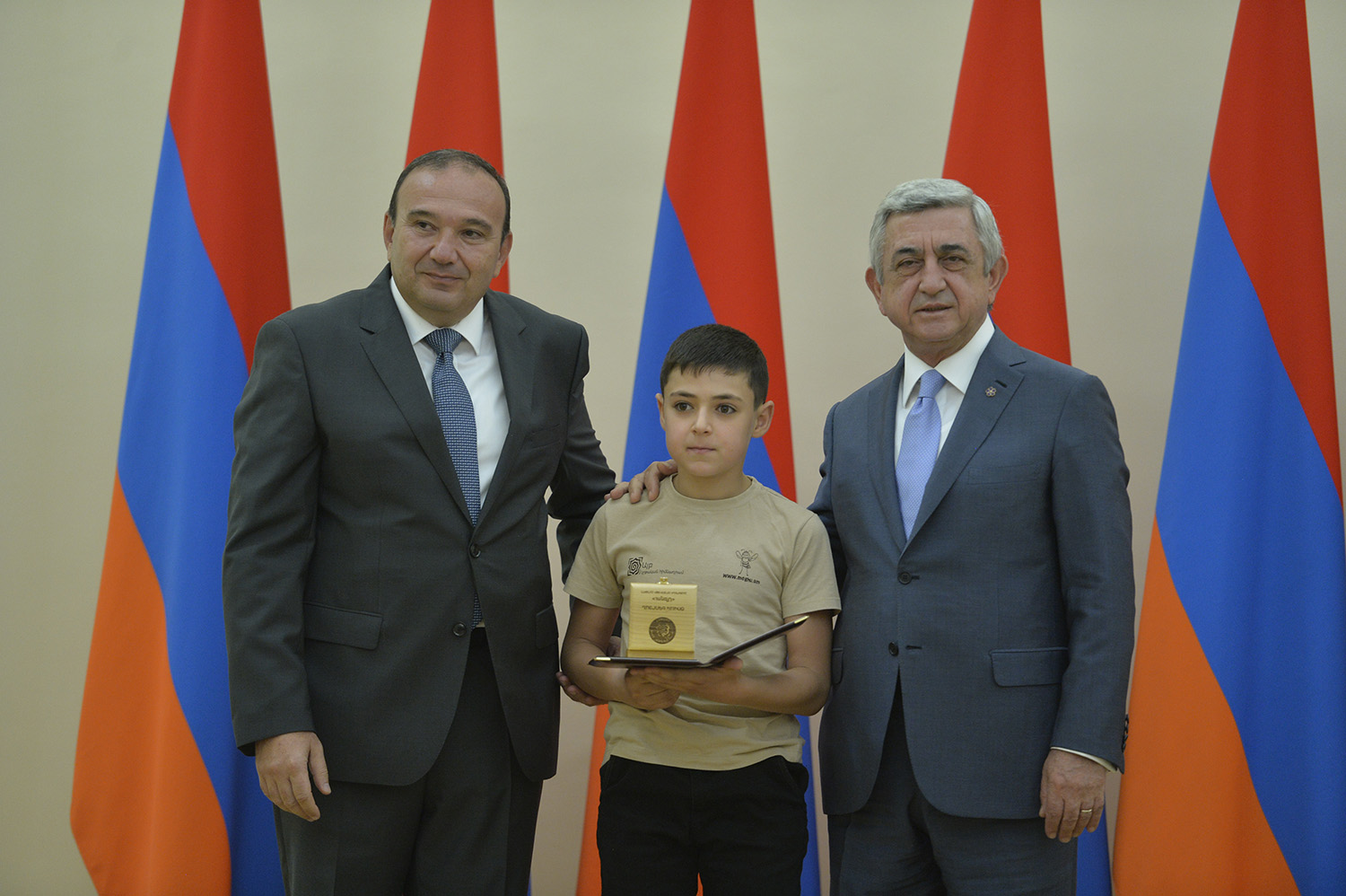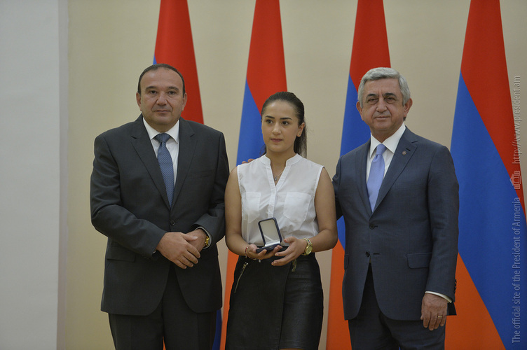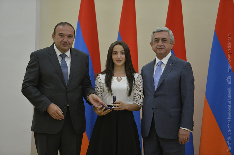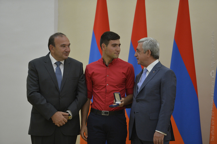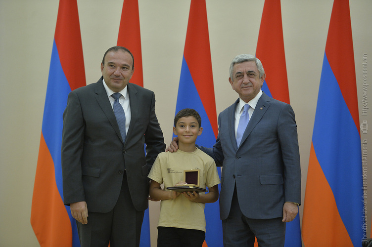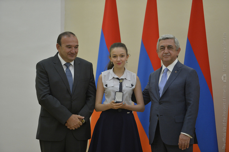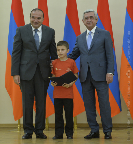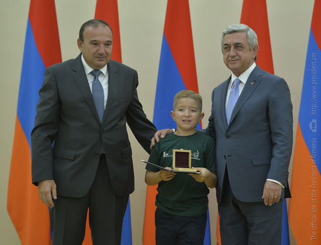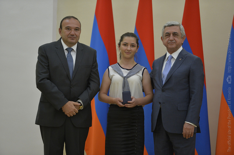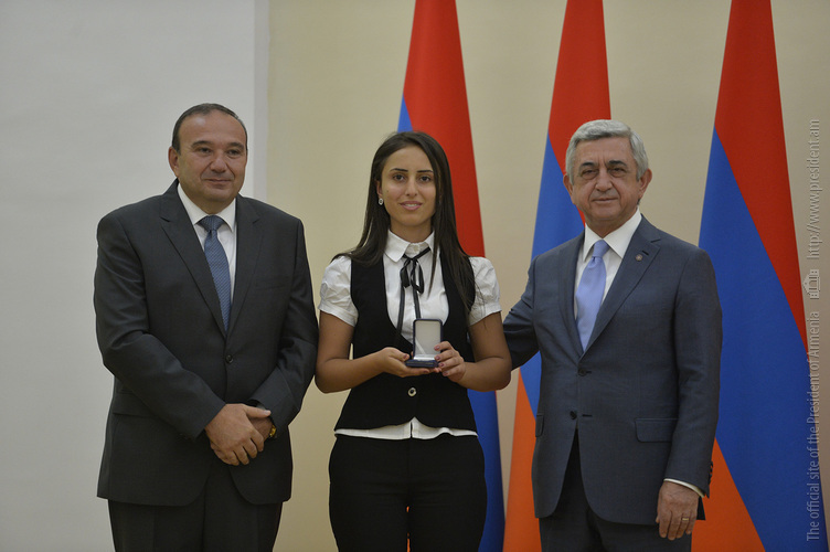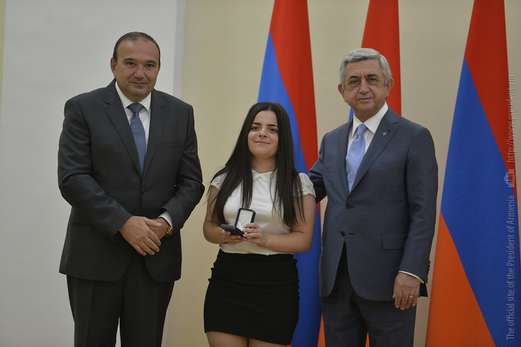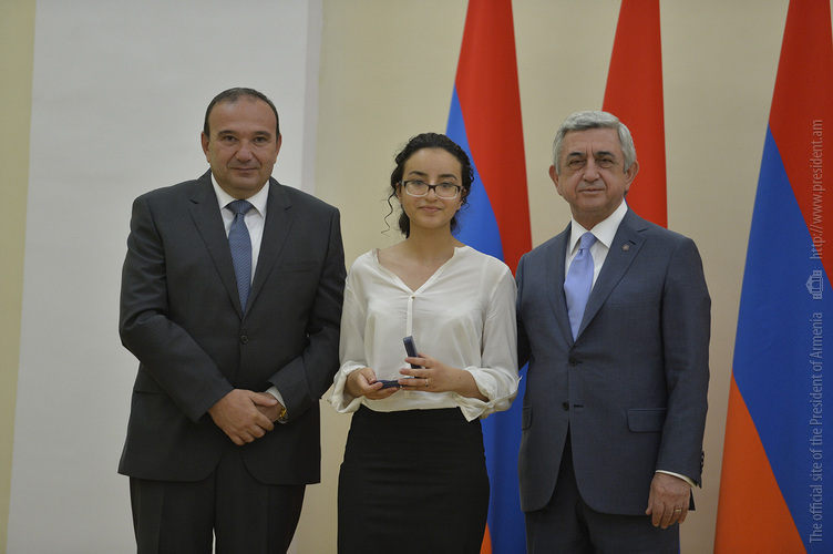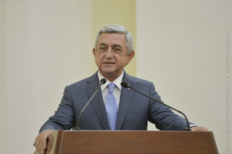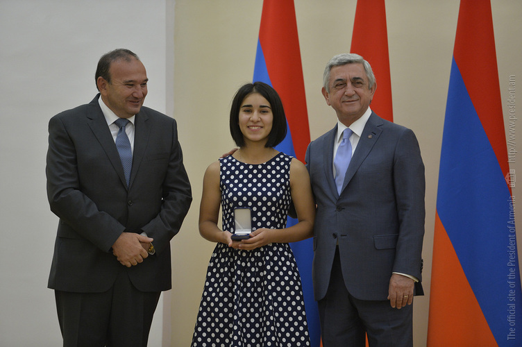 Մեծ սիրով ողջունում եմ ձեզ Հայաստանի Հանրապետության Նախագահի նստավայրում: Մեկ անգամ ևս ջերմորեն շնորհավորում եմ ձեզ համաշխարհային առարկայական օլիմպիադաներում, «Կենգուրու» և «Մեղու» մրցույթներում ունեցած հաջողությունների համար, անշուշտ նաև՝ դպրոցը գերազանցությամբ ավարտելու կապակցությամբ: Ձեր հաջողությունները մեր ողջ ժողովրդին ուժ ու եռանդ են հաղորդում, ինձ անձամբ ոգևորում և հավատ են ներշնչում մեր երկրի ապագայի հանդեպ: Այսպիսի հանդիպումներն արդեն դարձել են ավանդական, և պարզ է թե ինչու: Մենք ուզում ենք սրանով ընդգծել, որ մենք մեր երկրի ապագան կապում են գիտության և կրթության զարգացման հետ ու նաև ցանկանում ենք, որպեսզի ձեր օրինակը վարակիչ լինի ձեր հասակակիցների, ձեր հեռու ու մոտիկ բարեկամների, ձեր դասընկերների համար: Գիտության և ուսման նկատմամբ ծարավը, եթե այն կարելի է լավ առումով վարակ համարել, երբեք չի կարելի կանխարգելել, ընդհակառակը՝ մենք ցանկանում ենք, որ այդ վարակը տարածվի ամենուր: