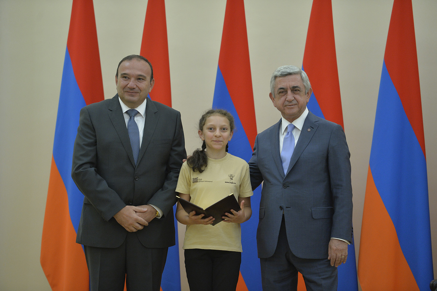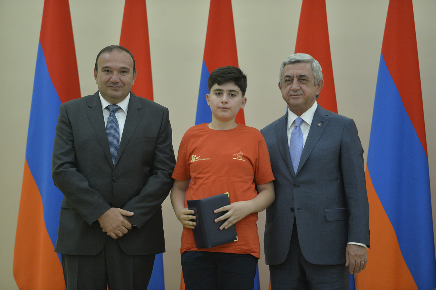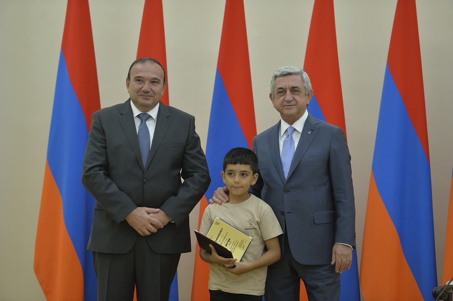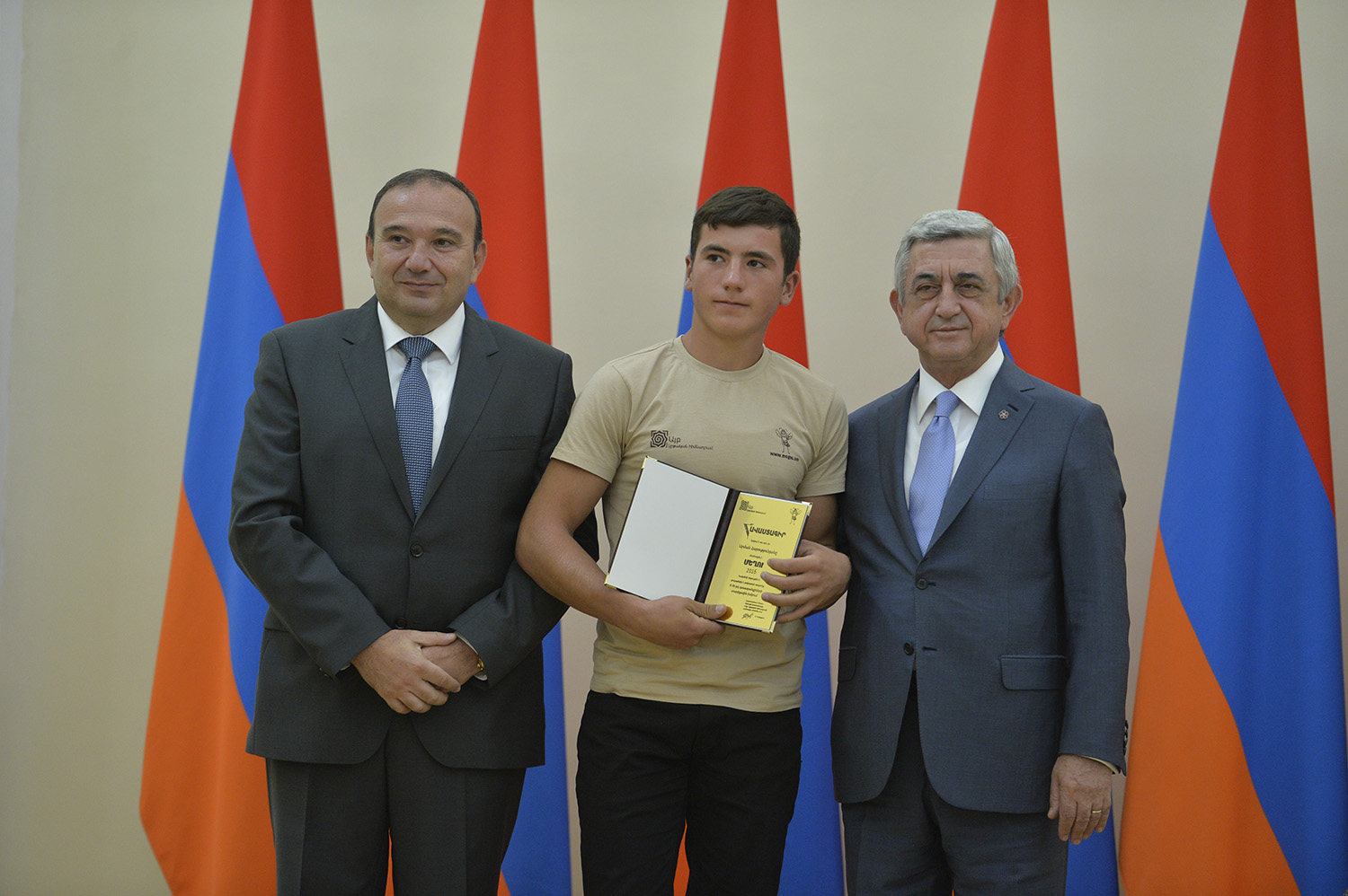 Մեծ սիրով ողջունում եմ ձեզ Հայաստանի Հանրապետության Նախագահի նստավայրում: Մեկ անգամ ևս ջերմորեն շնորհավորում եմ ձեզ համաշխարհային առարկայական օլիմպիադաներում, «Կենգուրու» և «Մեղու» մրցույթներում ունեցած հաջողությունների համար, անշուշտ նաև՝ դպրոցը գերազանցությամբ ավարտելու կապակցությամբ: Ձեր հաջողությունները մեր ողջ ժողովրդին ուժ ու եռանդ են հաղորդում, ինձ անձամբ ոգևորում և հավատ են ներշնչում մեր երկրի ապագայի հանդեպ: Այսպիսի հանդիպումներն արդեն դարձել են ավանդական, և պարզ է թե ինչու: Մենք ուզում ենք սրանով ընդգծել, որ մենք մեր երկրի ապագան կապում են գիտության և կրթության զարգացման հետ ու նաև ցանկանում ենք, որպեսզի ձեր օրինակը վարակիչ լինի ձեր հասակակիցների, ձեր հեռու ու մոտիկ բարեկամների, ձեր դասընկերների համար: Գիտության և ուսման նկատմամբ ծարավը, եթե այն կարելի է լավ առումով վարակ համարել, երբեք չի կարելի կանխարգելել, ընդհակառակը՝ մենք ցանկանում ենք, որ այդ վարակը տարածվի ամենուր: