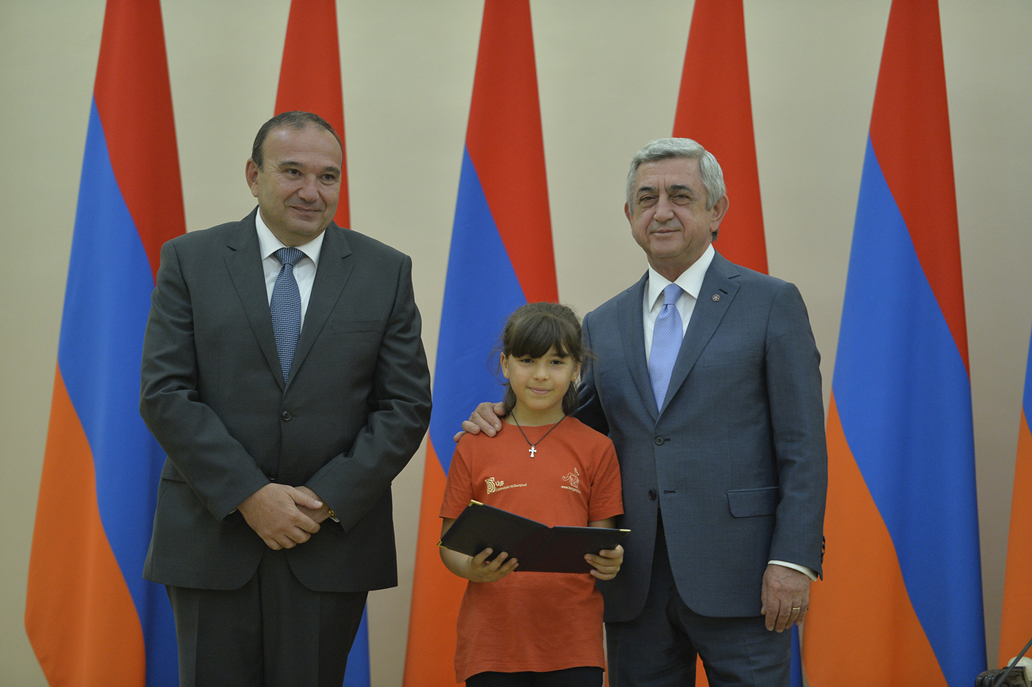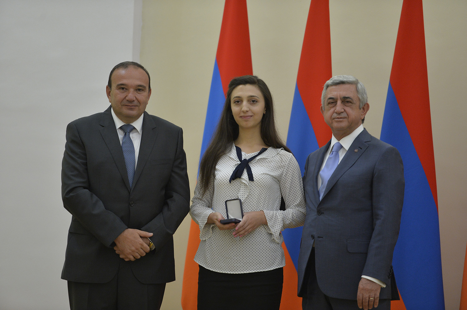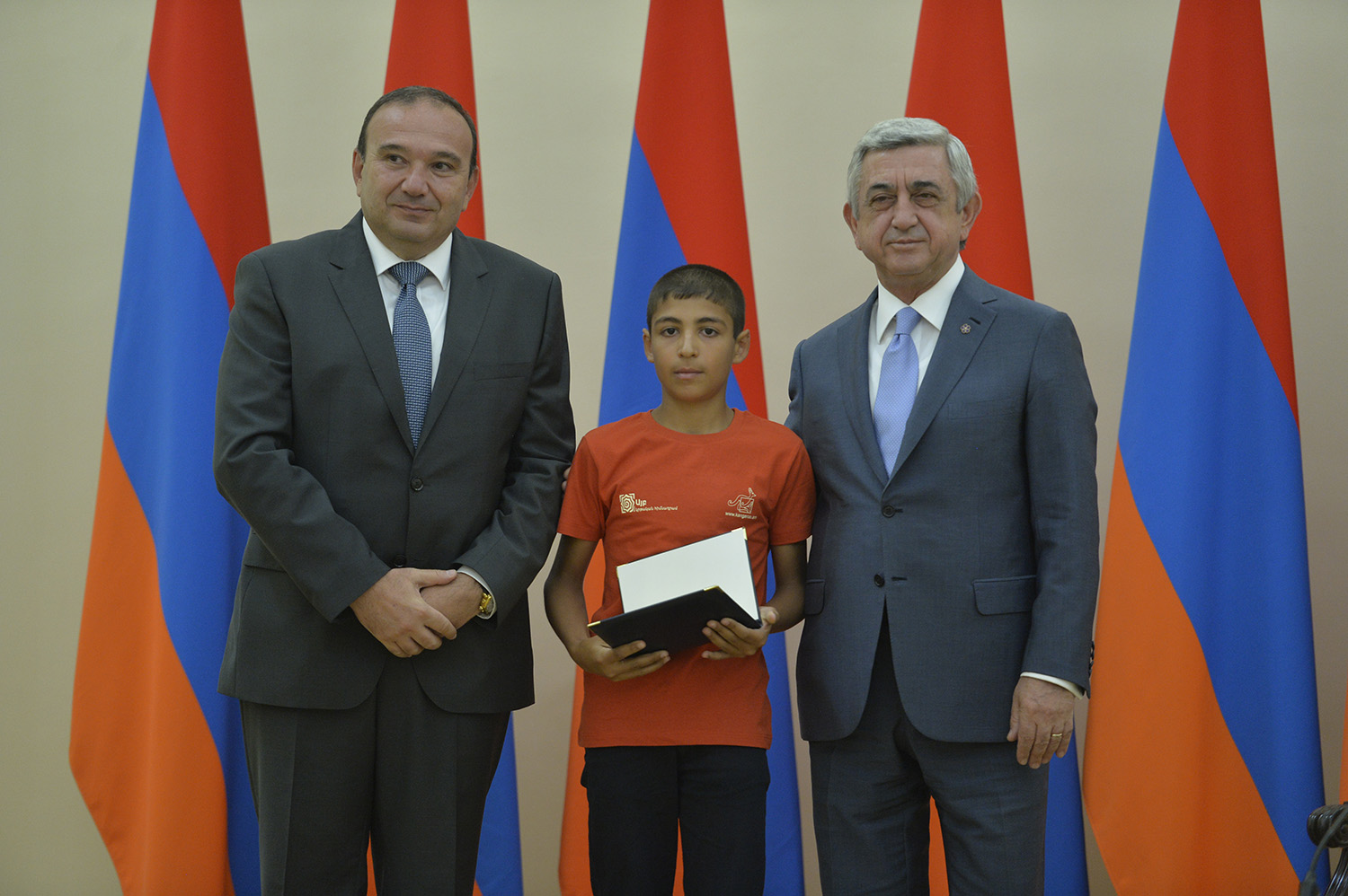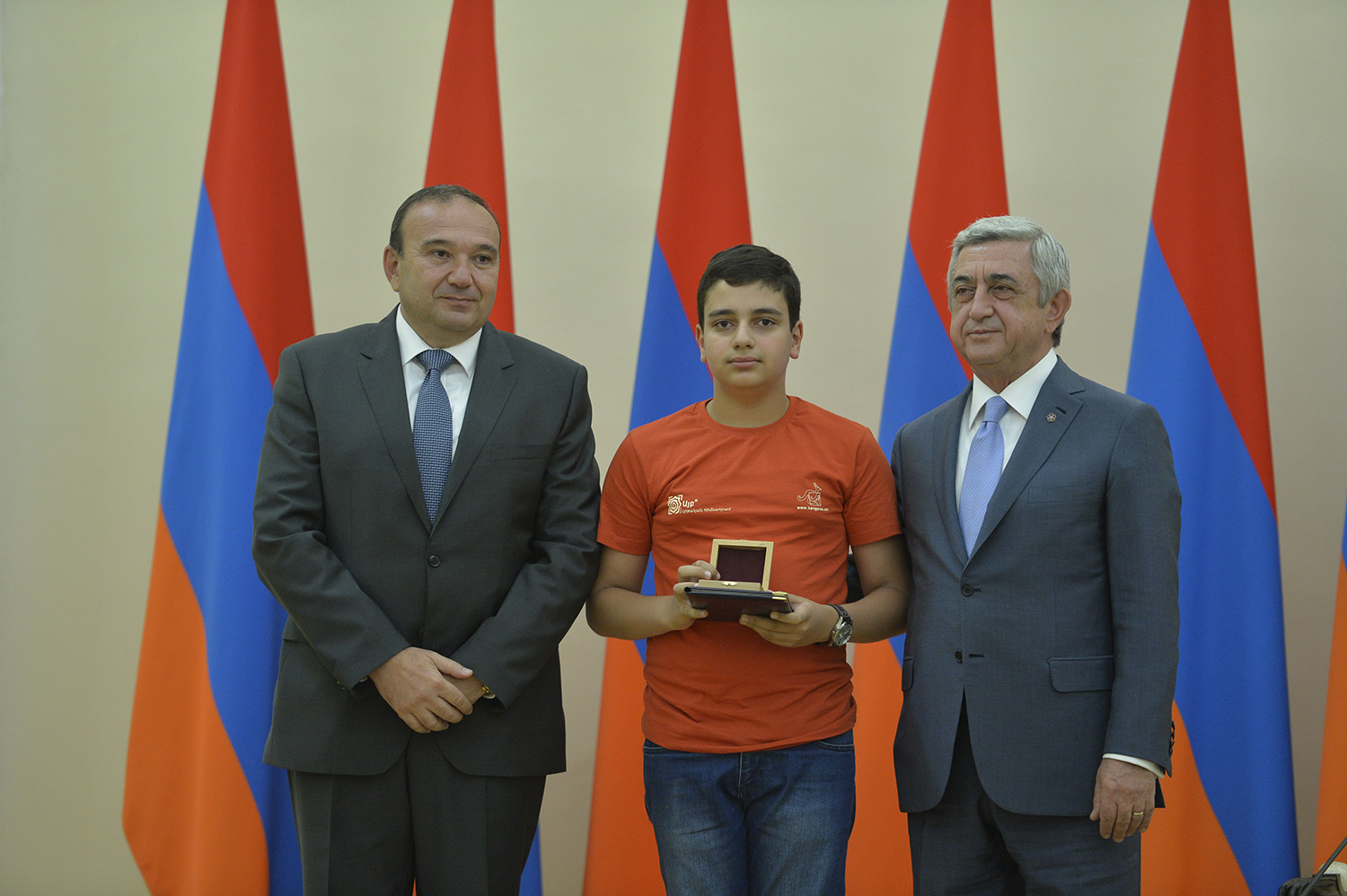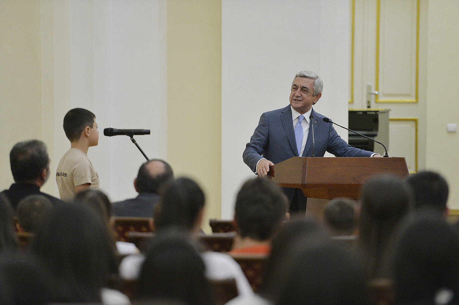 Մեծ սիրով ողջունում եմ ձեզ Հայաստանի Հանրապետության Նախագահի նստավայրում: Մեկ անգամ ևս ջերմորեն շնորհավորում եմ ձեզ համաշխարհային առարկայական օլիմպիադաներում, «Կենգուրու» և «Մեղու» մրցույթներում ունեցած հաջողությունների համար, անշուշտ նաև՝ դպրոցը գերազանցությամբ ավարտելու կապակցությամբ: Ձեր հաջողությունները մեր ողջ ժողովրդին ուժ ու եռանդ են հաղորդում, ինձ անձամբ ոգևորում և հավատ են ներշնչում մեր երկրի ապագայի հանդեպ: Այսպիսի հանդիպումներն արդեն դարձել են ավանդական, և պարզ է թե ինչու: Մենք ուզում ենք սրանով ընդգծել, որ մենք մեր երկրի ապագան կապում են գիտության և կրթության զարգացման հետ ու նաև ցանկանում ենք, որպեսզի ձեր օրինակը վարակիչ լինի ձեր հասակակիցների, ձեր հեռու ու մոտիկ բարեկամների, ձեր դասընկերների համար: Գիտության և ուսման նկատմամբ ծարավը, եթե այն կարելի է լավ առումով վարակ համարել, երբեք չի կարելի կանխարգելել, ընդհակառակը՝ մենք ցանկանում ենք, որ այդ վարակը տարածվի ամենուր: