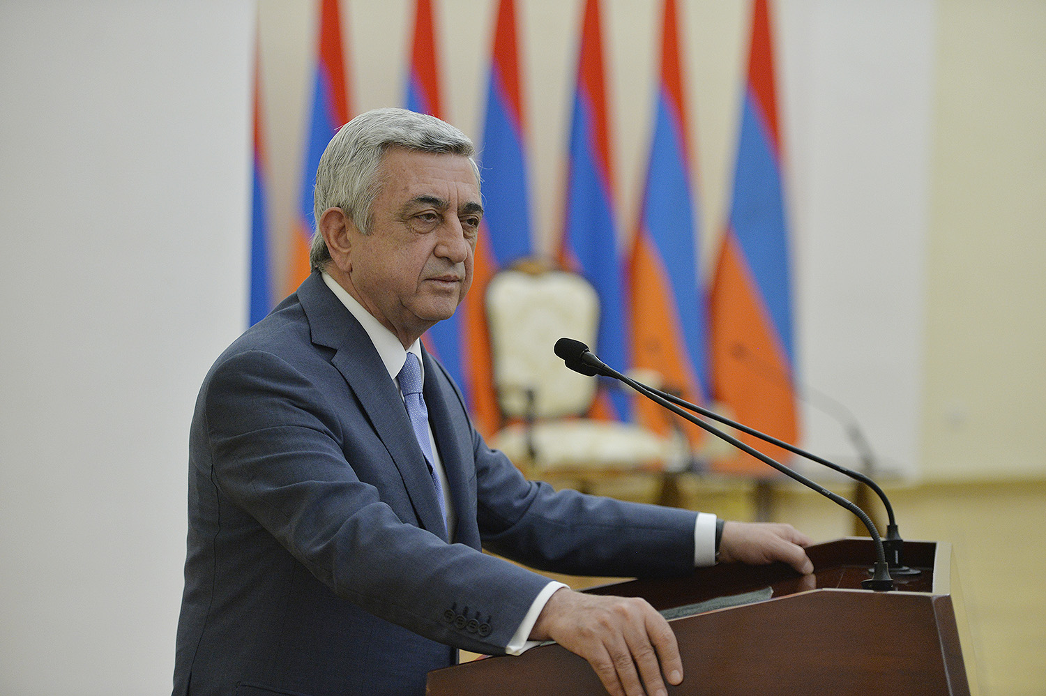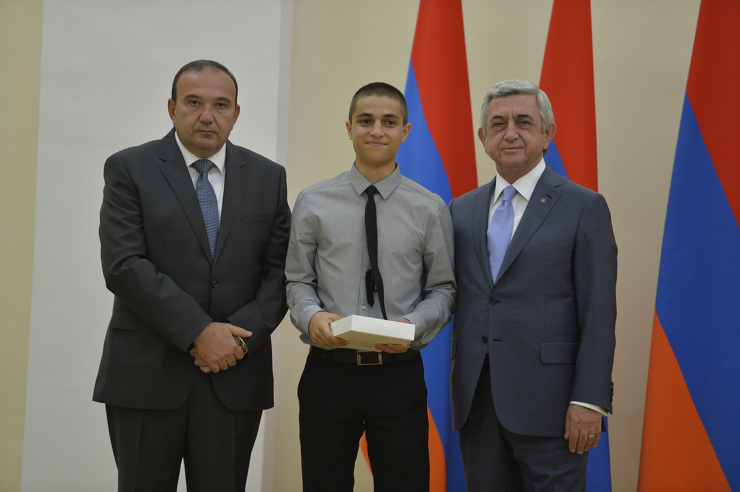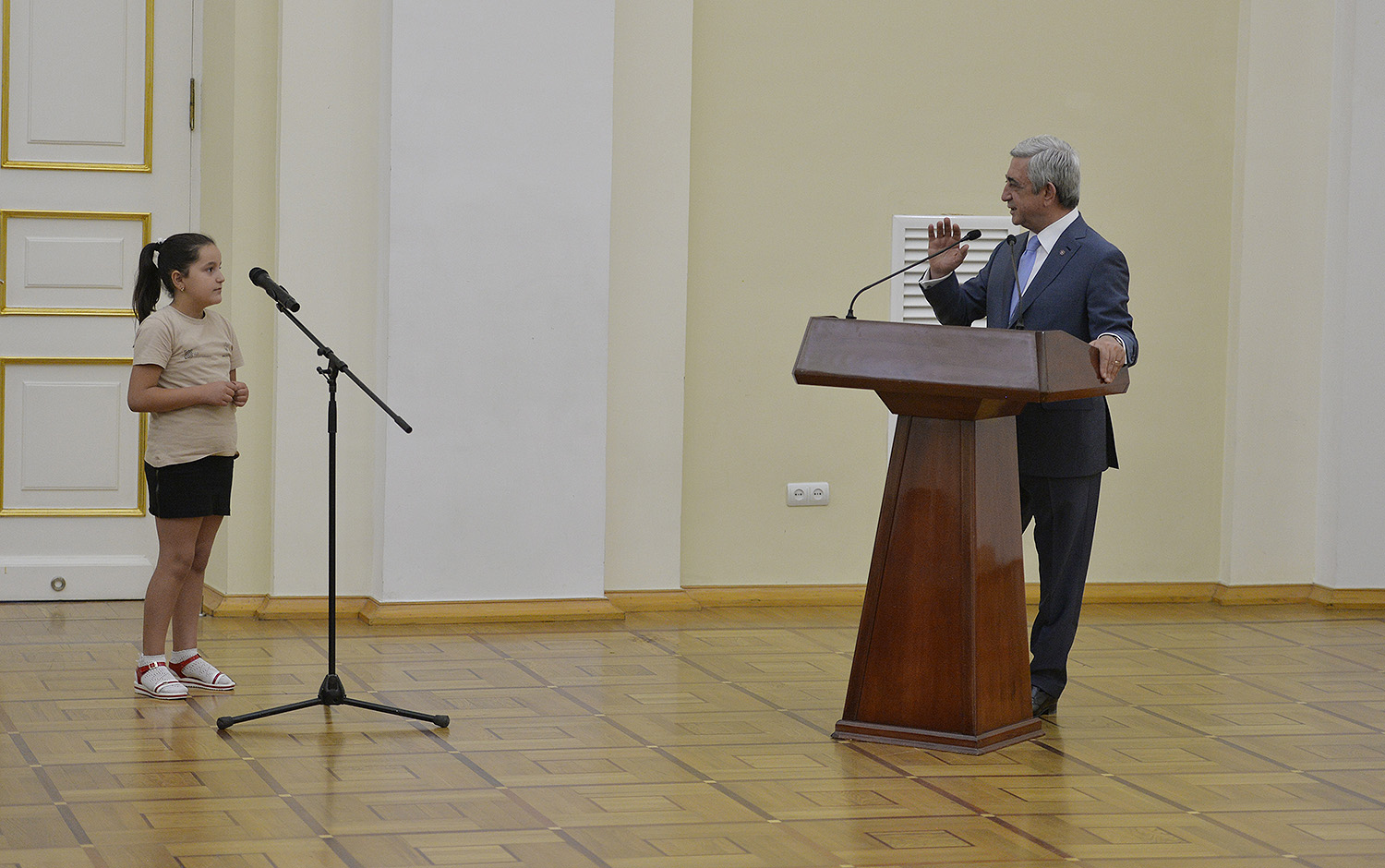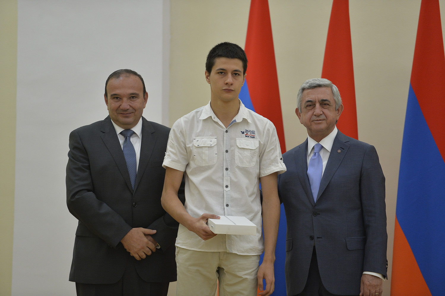Մեծ սիրով ողջունում եմ ձեզ Հայաստանի Հանրապետության Նախագահի նստավայրում: Մեկ անգամ ևս ջերմորեն շնորհավորում եմ ձեզ համաշխարհային առարկայական օլիմպիադաներում, «Կենգուրու» և «Մեղու» մրցույթներում ունեցած հաջողությունների համար, անշուշտ նաև՝ դպրոցը գերազանցությամբ ավարտելու կապակցությամբ: Ձեր հաջողությունները մեր ողջ ժողովրդին ուժ ու եռանդ են հաղորդում, ինձ անձամբ ոգևորում և հավատ են ներշնչում մեր երկրի ապագայի հանդեպ: Այսպիսի հանդիպումներն արդեն դարձել են ավանդական, և պարզ է թե ինչու: Մենք ուզում ենք սրանով ընդգծել, որ մենք մեր երկրի ապագան կապում են գիտության և կրթության զարգացման հետ ու նաև ցանկանում ենք, որպեսզի ձեր օրինակը վարակիչ լինի ձեր հասակակիցների, ձեր հեռու ու մոտիկ բարեկամների, ձեր դասընկերների համար: Գիտության և ուսման նկատմամբ ծարավը, եթե այն կարելի է լավ առումով վարակ համարել, երբեք չի կարելի կանխարգելել, ընդհակառակը՝ մենք ցանկանում ենք, որ այդ վարակը տարածվի ամենուր: