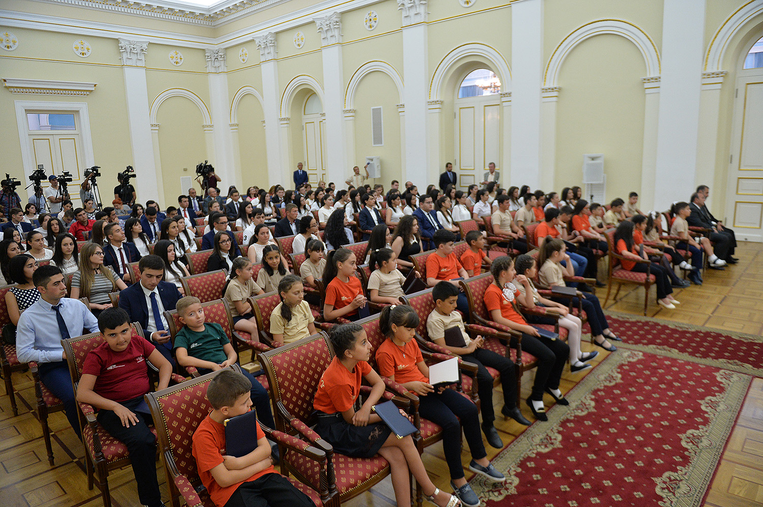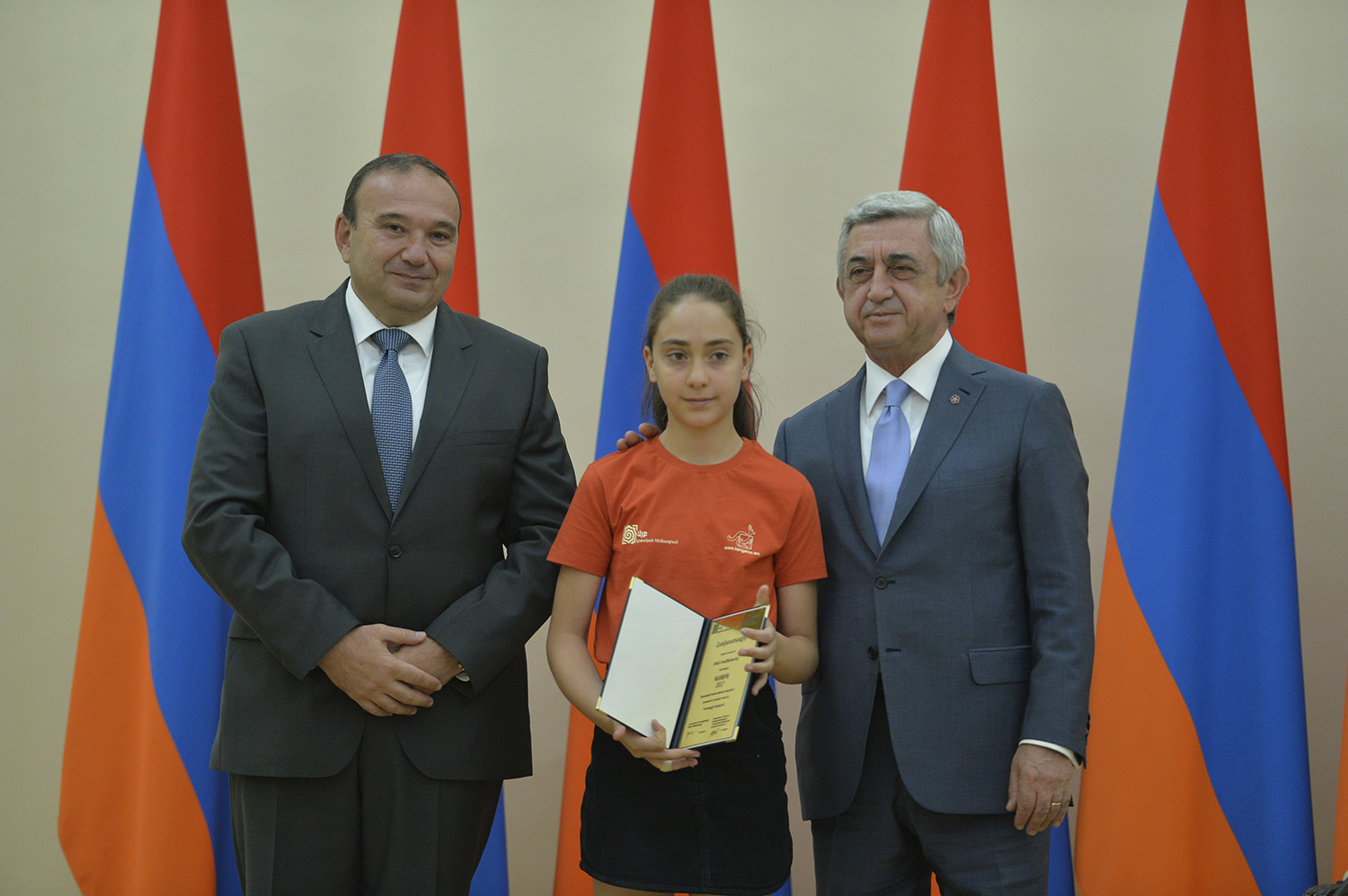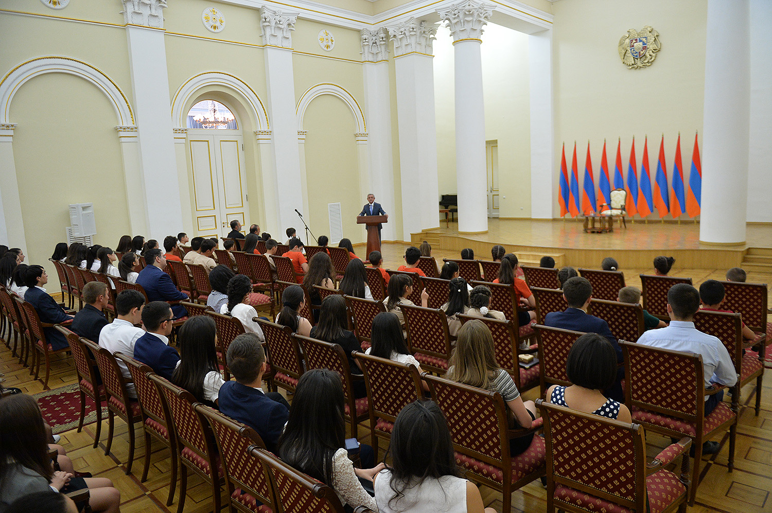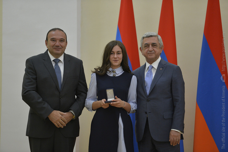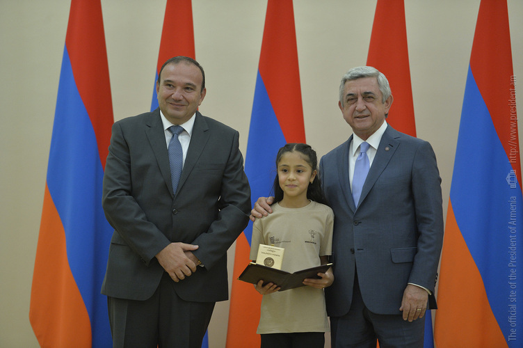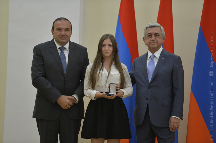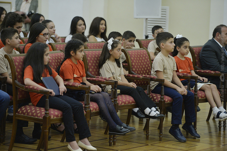 Նախագահ Սերժ Սարգսյանն այսօր հյուրընկալել է 2016-2017 ուսումնական տարում բարձր առաջադիմություն ցուցաբերած` հանրապետության հանրակրթական ուսումնական հաստատությունների մեդալակիր շրջանավարտներին, ինչպես նաև դպրոցականների միջազգային առարկայական օլիմպիադաներում 2017թ. հաջողությունների հասած՝ մայրաքաղաքի և մարզերի աշակերտներին, «Կենգուրու» միջազգային մաթեմատիկական և հայոց լեզվի «Մեղու» մրցույթների մրցանակակիրներին: