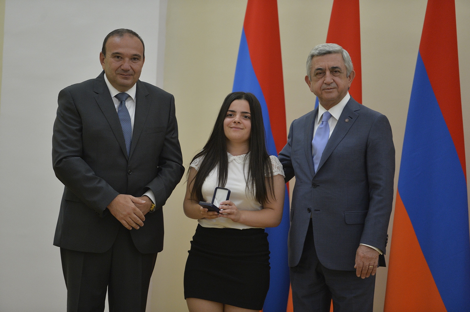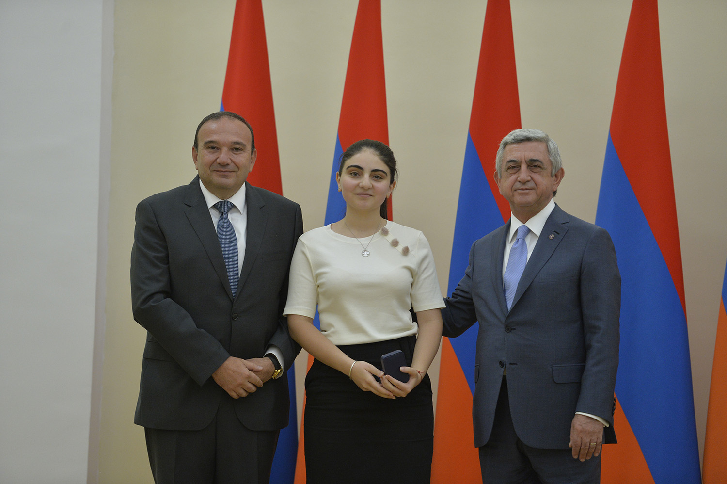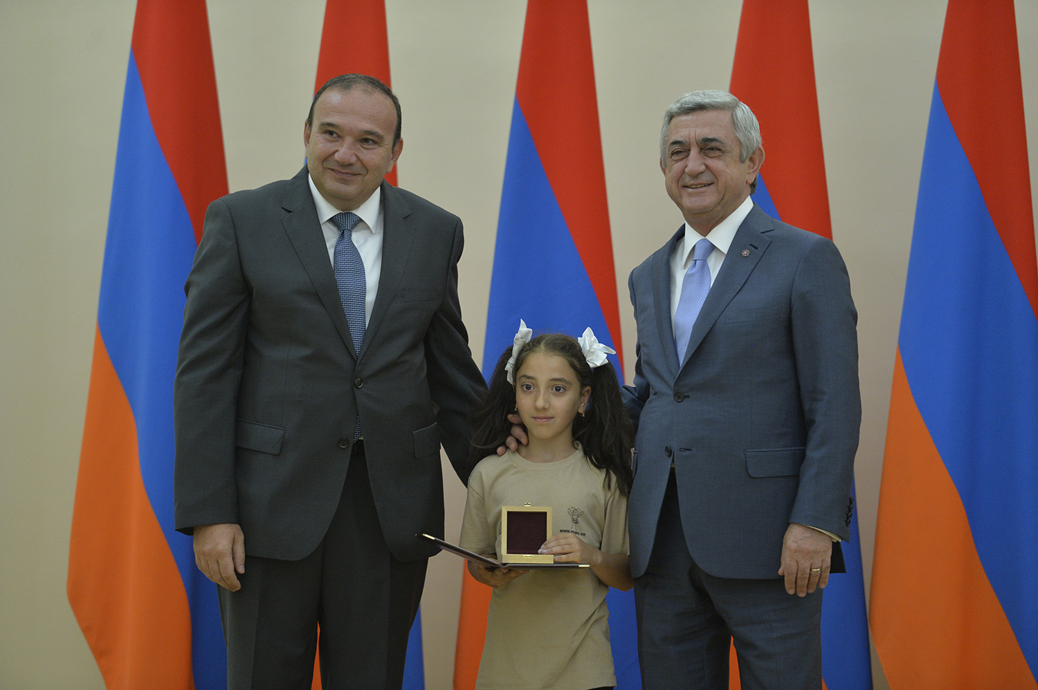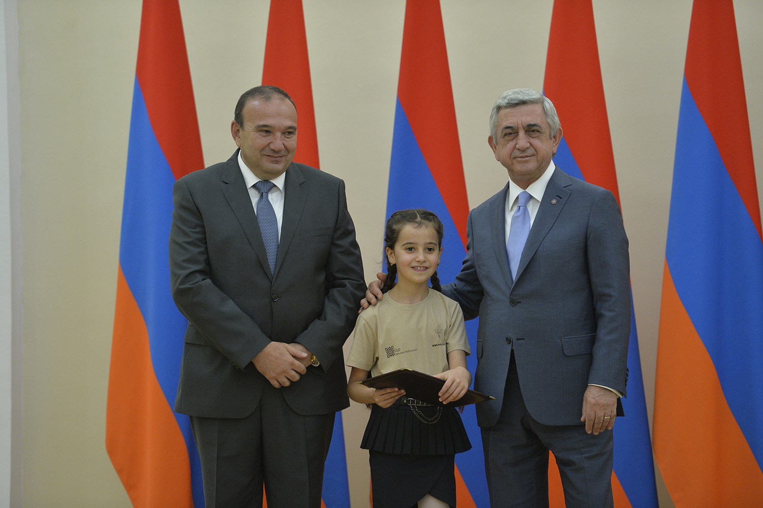 Նախագահ Սերժ Սարգսյանն այսօր հյուրընկալել է 2016-2017 ուսումնական տարում բարձր առաջադիմություն ցուցաբերած` հանրապետության հանրակրթական ուսումնական հաստատությունների մեդալակիր շրջանավարտներին, ինչպես նաև դպրոցականների միջազգային առարկայական օլիմպիադաներում 2017թ. հաջողությունների հասած՝ մայրաքաղաքի և մարզերի աշակերտներին, «Կենգուրու» միջազգային մաթեմատիկական և հայոց լեզվի «Մեղու» մրցույթների մրցանակակիրներին: