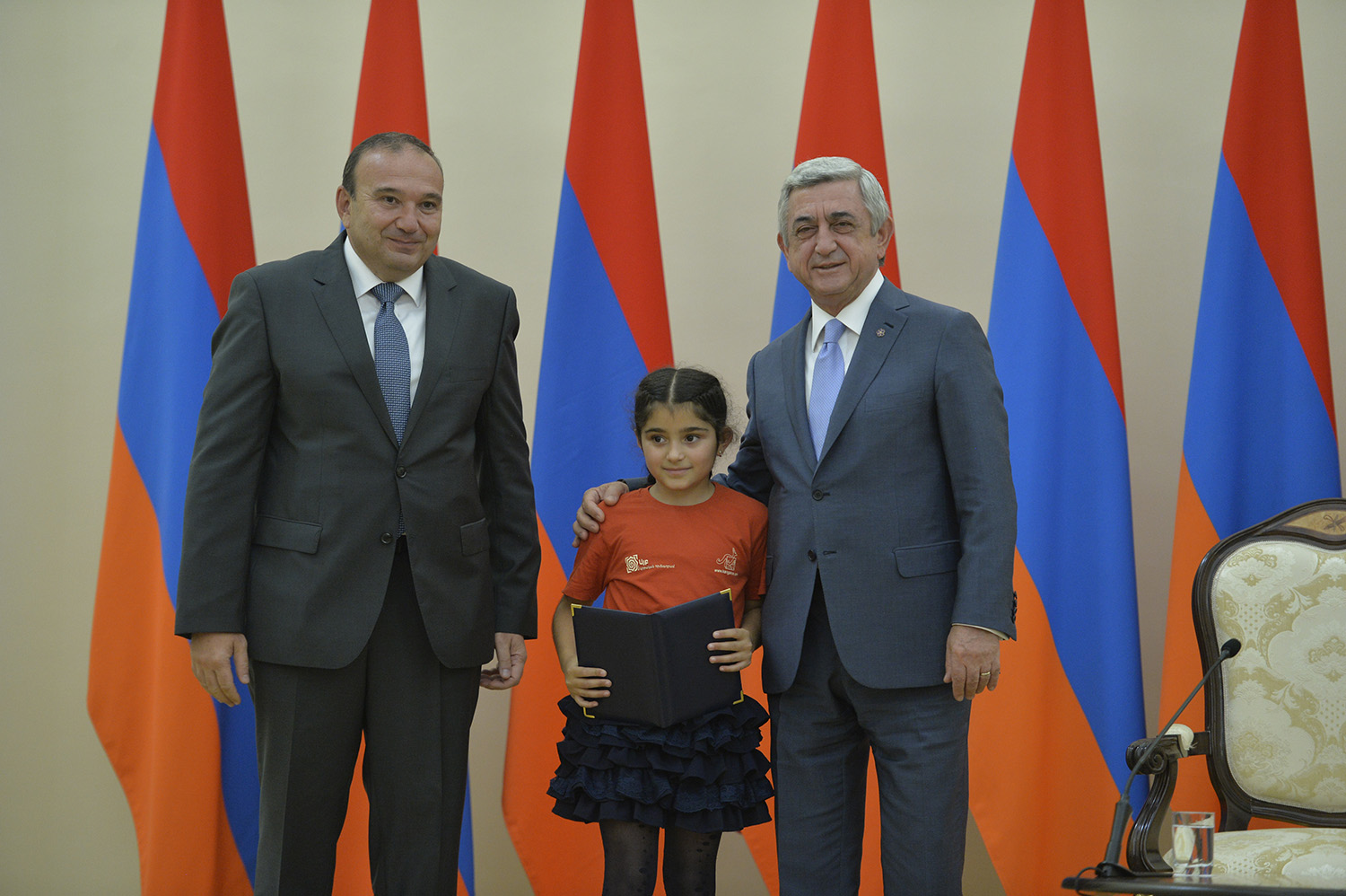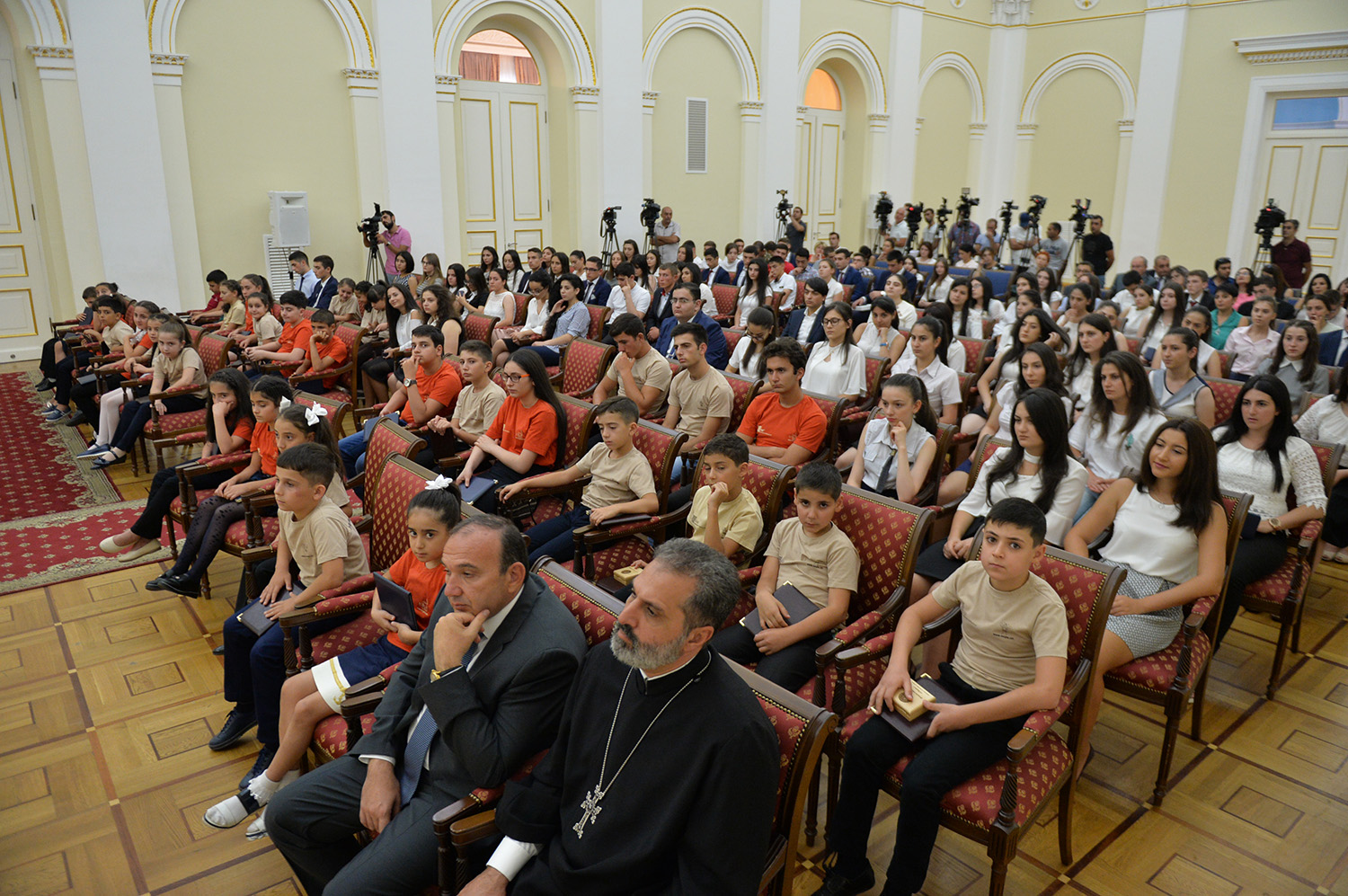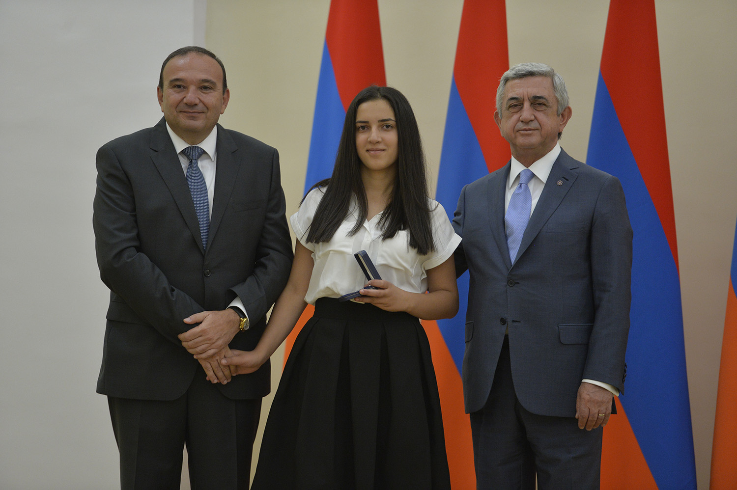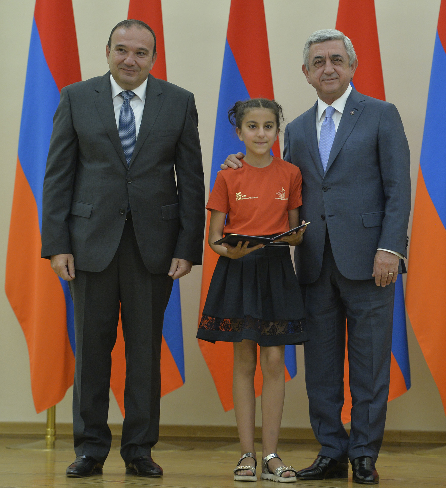 Նախագահ Սերժ Սարգսյանն այսօր հյուրընկալել է 2016-2017 ուսումնական տարում բարձր առաջադիմություն ցուցաբերած` հանրապետության հանրակրթական ուսումնական հաստատությունների մեդալակիր շրջանավարտներին, ինչպես նաև դպրոցականների միջազգային առարկայական օլիմպիադաներում 2017թ. հաջողությունների հասած՝ մայրաքաղաքի և մարզերի աշակերտներին, «Կենգուրու» միջազգային մաթեմատիկական և հայոց լեզվի «Մեղու» մրցույթների մրցանակակիրներին: