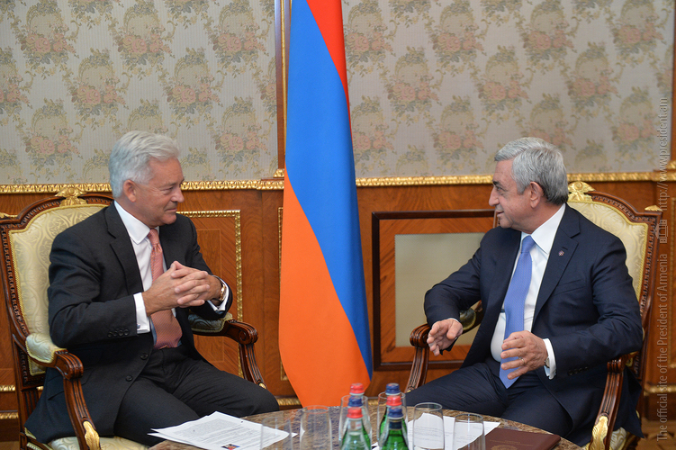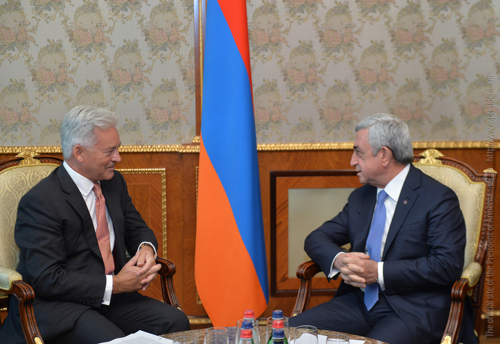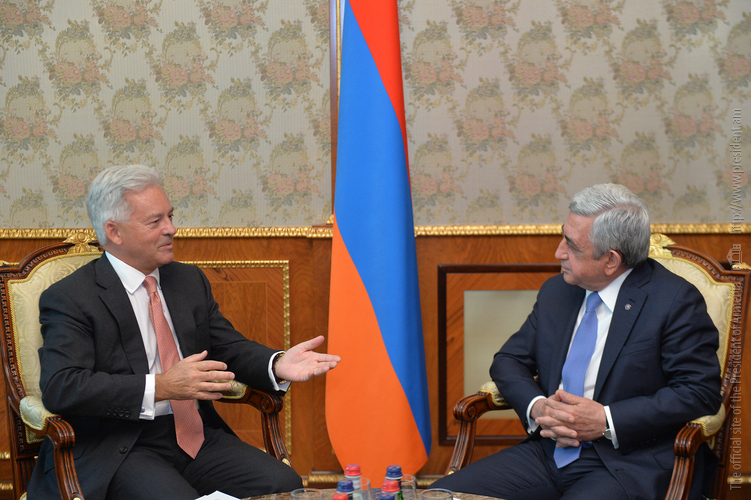 Ողջունելով հյուրին մեր երկրում՝ Հանրապետության Նախագահը ընդգծել է, որ Հայաստանը շահագրգռված է Միացյալ Թագավորության հետ միջպետական հարաբերությունները խորացնելու հարցում: Սերժ Սարգսյանը նշել է, որ դիվանագիտական հարաբերությունների հաստատումից ի վեր անցած 25 տարիներին երկու երկրների միջև առկա համագործակցության ներուժը դեռևս լիարժեք չի օգտագործվել: Ուրախությամբ արձանագրելով վերջին շրջանում հաճախակի դարձած փոխայցելություններն ու Հայաստանում Միացյալ Թագավորության դեսպանության աշխատանքը՝ Նախագահը հույս է հայտնել, որ այդ դինամիկան կպահպանվի, և հայ-բրիտանական միջպետական հարաբերությունները որակական նոր մակարդակի կբարձրանան: