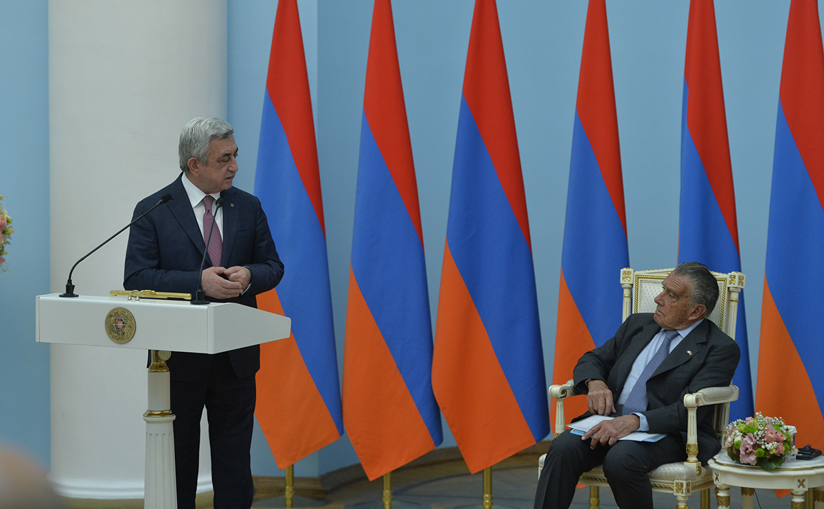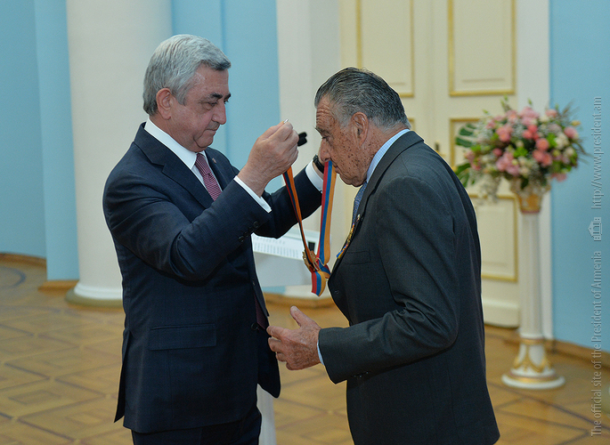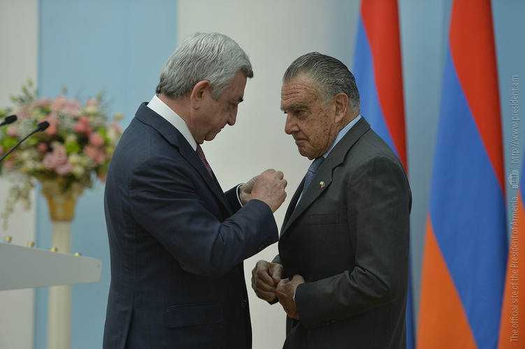 Նախագահը բարերար Էդուարդո Էռնեկյանին հանձնել է Հայրենիքի շքանշան