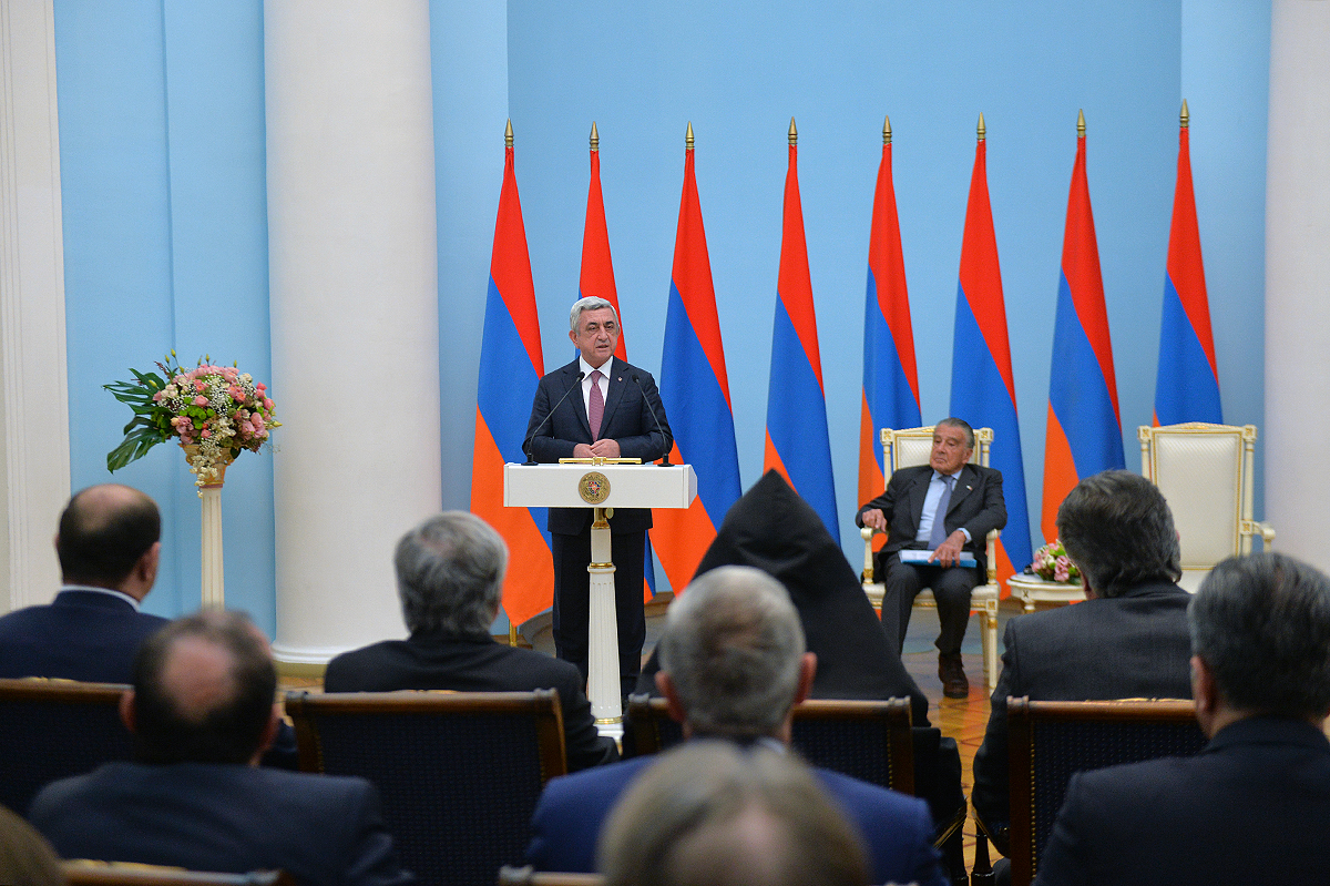 Էդուարդո Էռնեկյանին «Հայաստանի ազգային հերոս» բարձրագույն կոչումը շնորհելու մեջ ես շատ մեծ խորհուրդ եմ տեսնում: Այո՛, մենք համոզված ենք, որ Հայաստանը շենացնելը հերոսություն է: Այո՛, սփյուռքի ձեռնարկատերերի և Հայաստանի պետության միջև կարող են հաստատվել փոխշահավետ հարաբերություններ, և այս գործընկերային հարաբերությունը պարոն Էռնեկյանի հետ ուղղակի այդ օրինակներից մեկն է: Ես համոզված եմ, որ պարոն Էռնեկյանի հետ միասին ստեղծել ենք լավագույն հնարավոր համագործակցությունը, և այն իսկապես պետք է օրինակ դառնա սփյուռքի մեր բազմաթիվ հայրենակիցների համար: