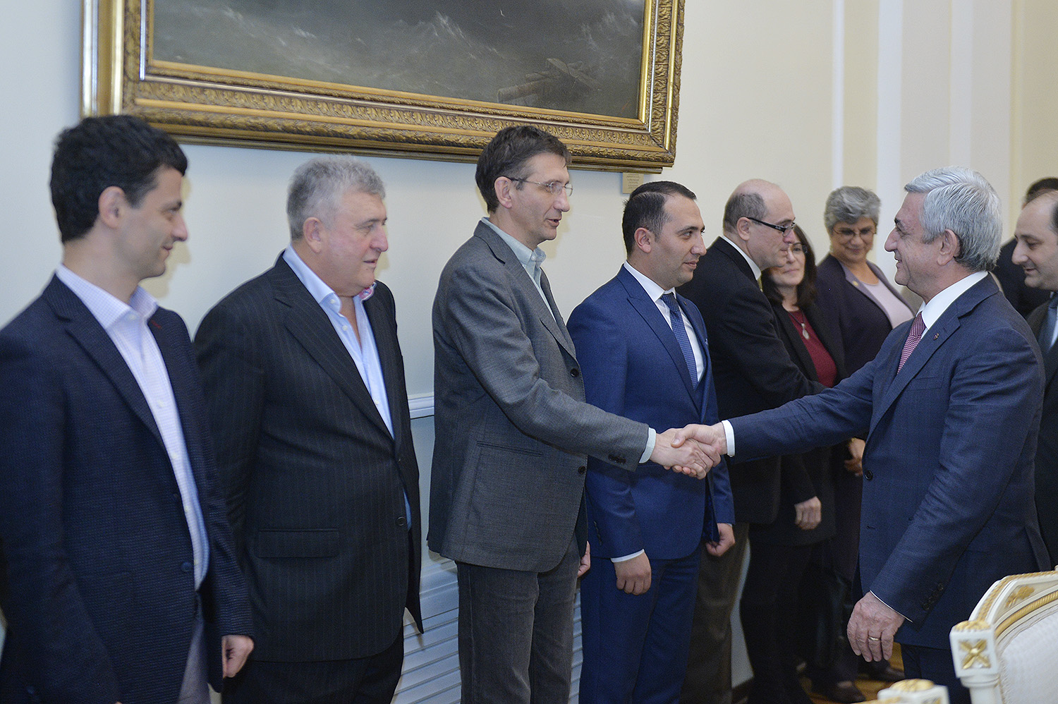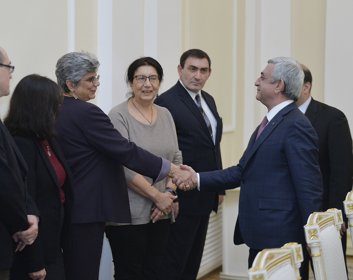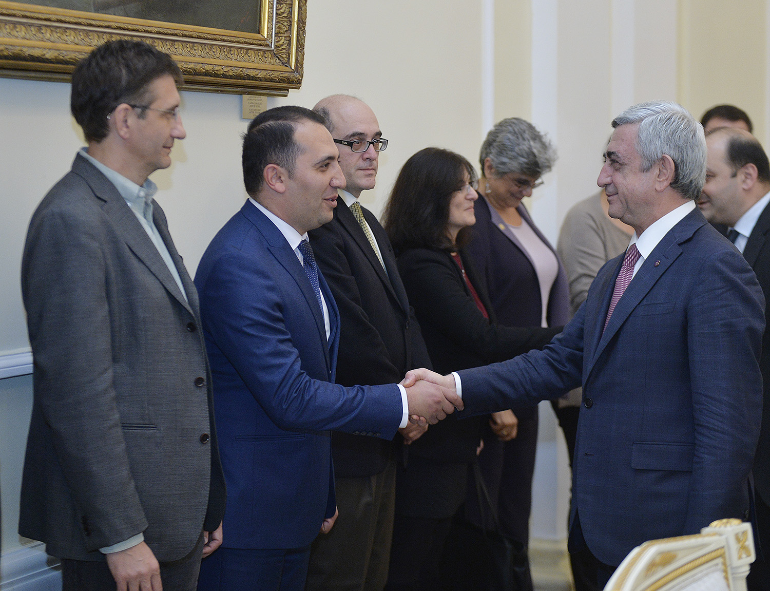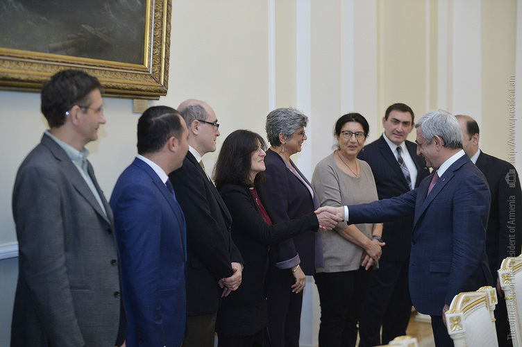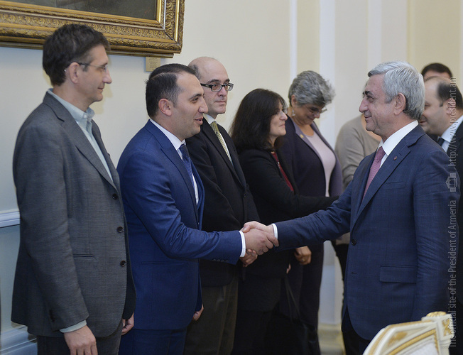 Նախագահ Սերժ Սարգսյանն այսօր ընդունել է նոյեմբերի 5-8-ը Երևանում անցկացվող Երկրորդ համահայկական գիտական համաժողովի մասնակիցներին՝ հայազգի ճանաչված գիտնականների ԱՄՆ-ից, Ռուսաստանից, Ֆրանսիայից, Իռլանդիայից, Դանիայից և մի շարք այլ երկրներից: