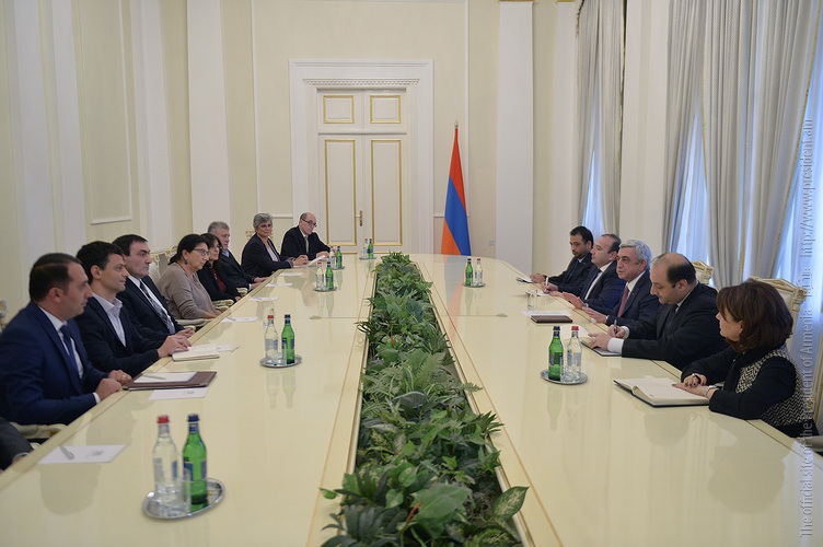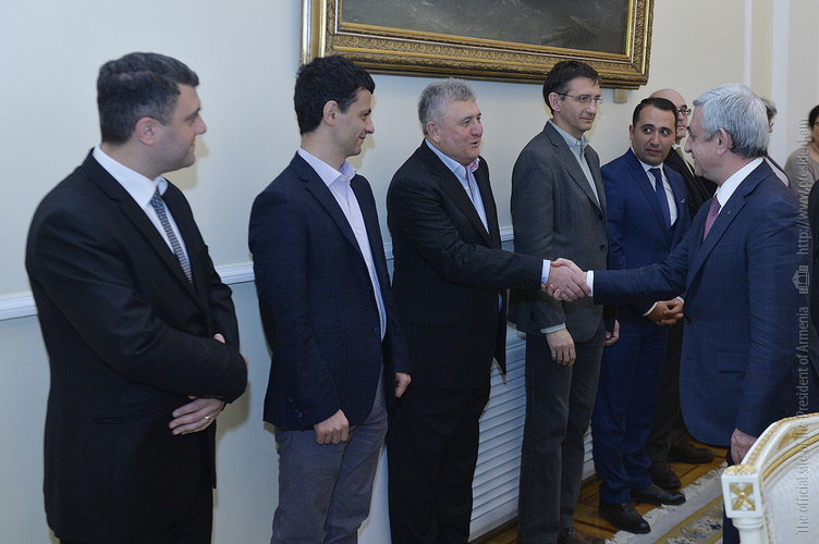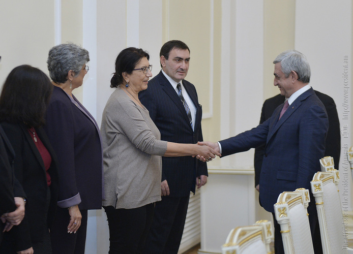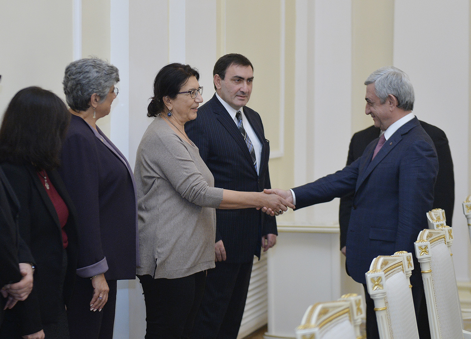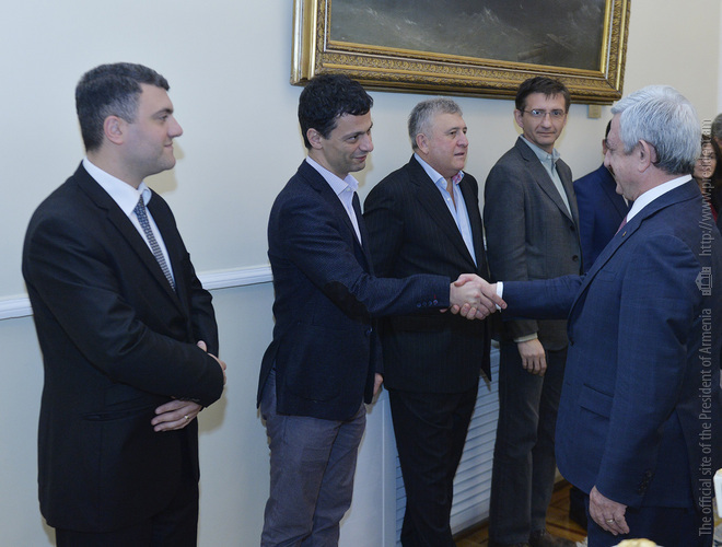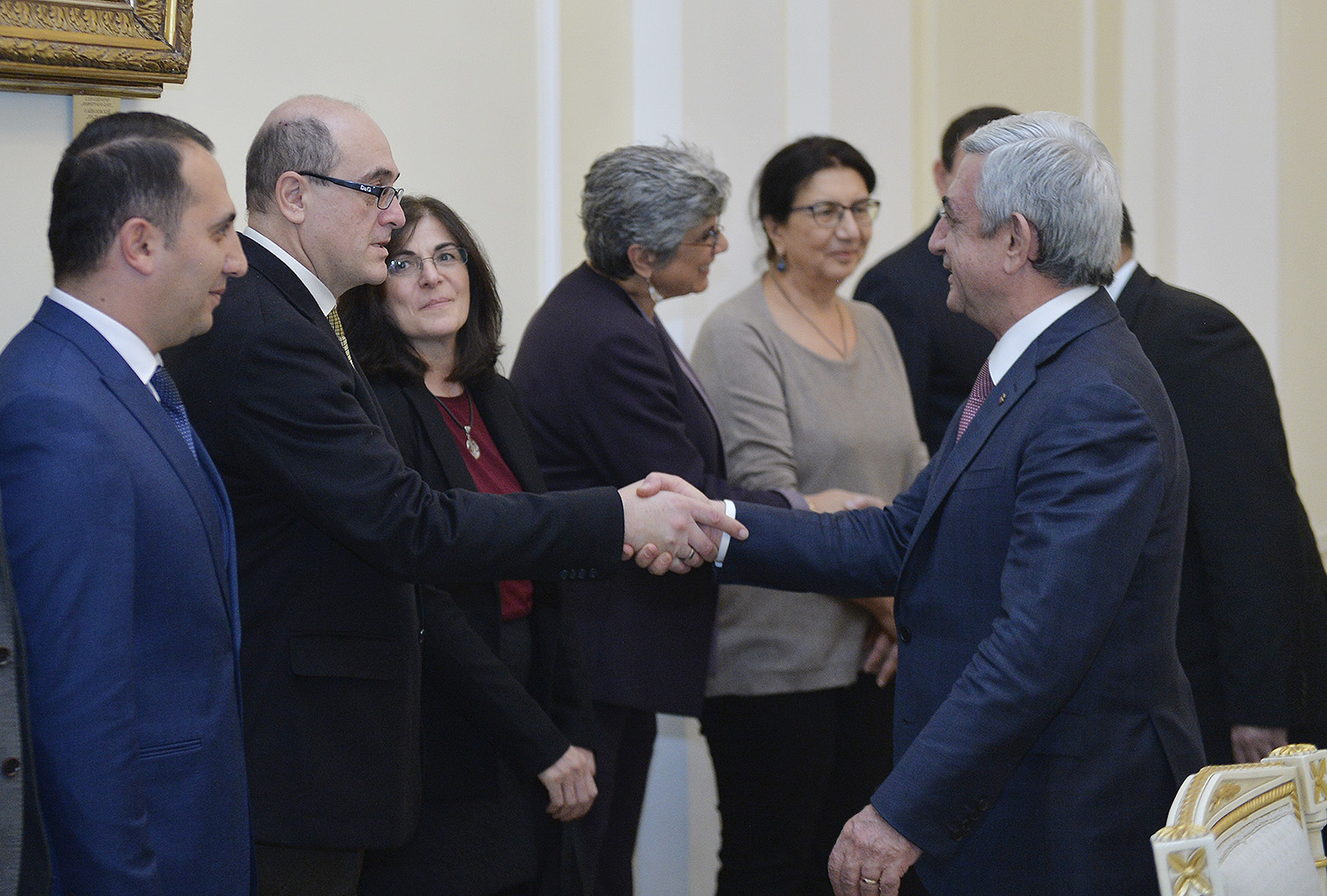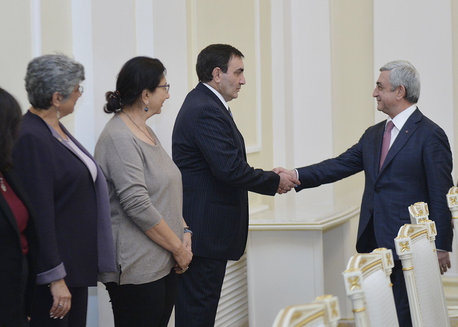 Նախագահ Սերժ Սարգսյանն այսօր ընդունել է նոյեմբերի 5-8-ը Երևանում անցկացվող Երկրորդ համահայկական գիտական համաժողովի մասնակիցներին՝ հայազգի ճանաչված գիտնականների ԱՄՆ-ից, Ռուսաստանից, Ֆրանսիայից, Իռլանդիայից, Դանիայից և մի շարք այլ երկրներից: