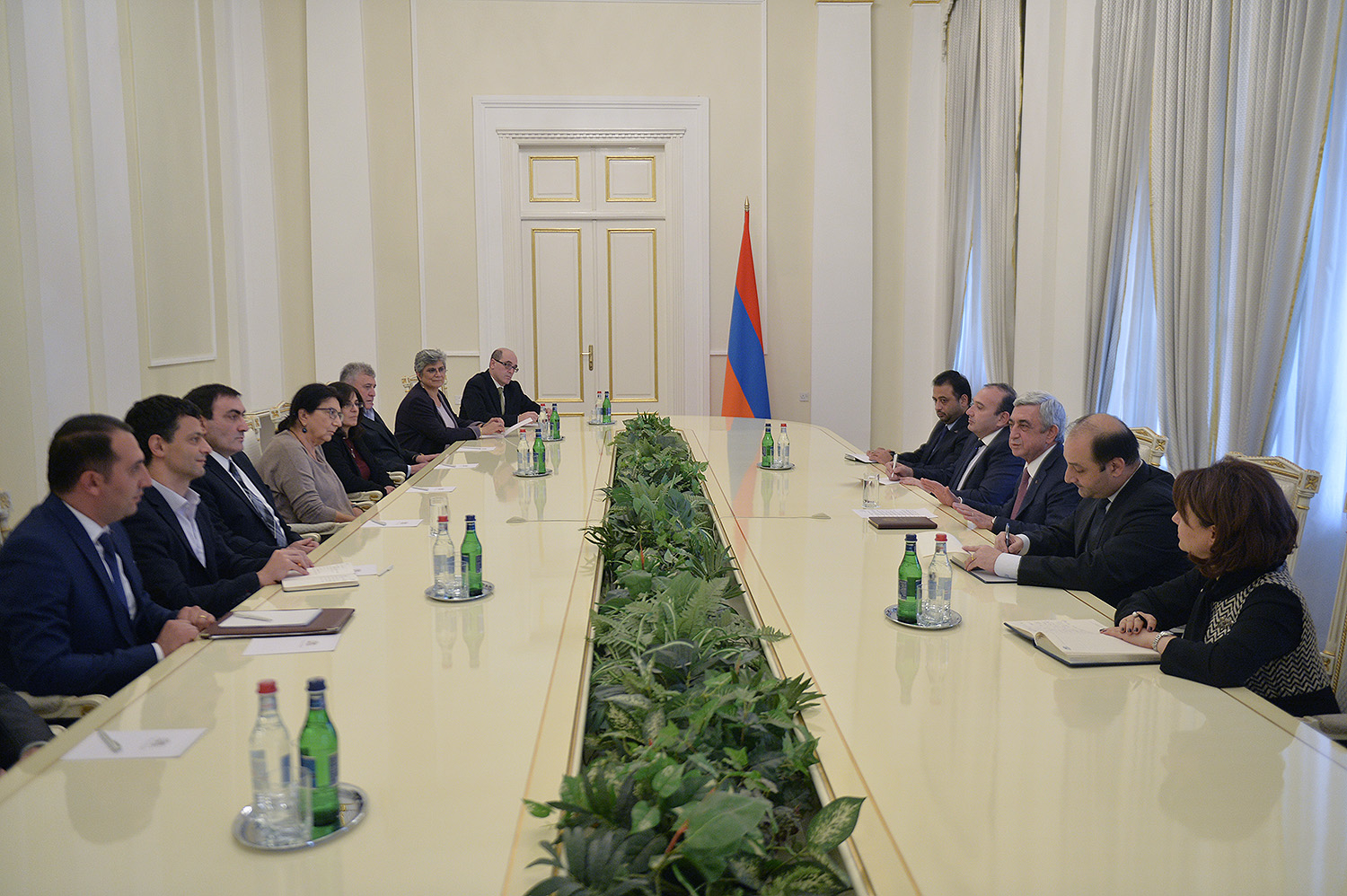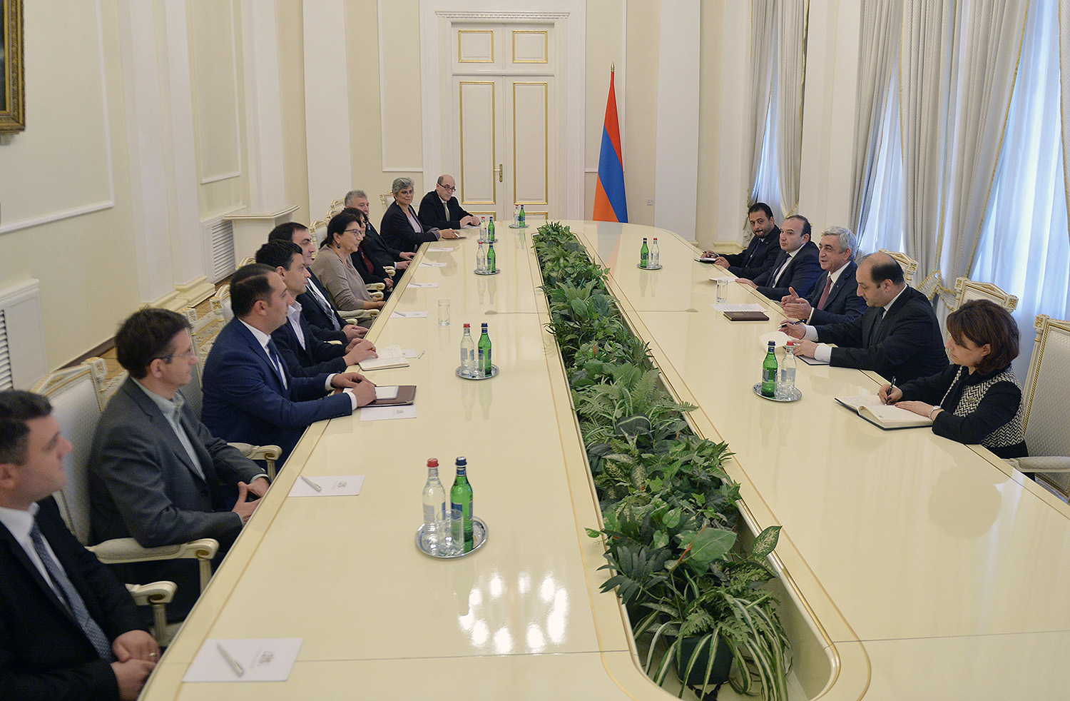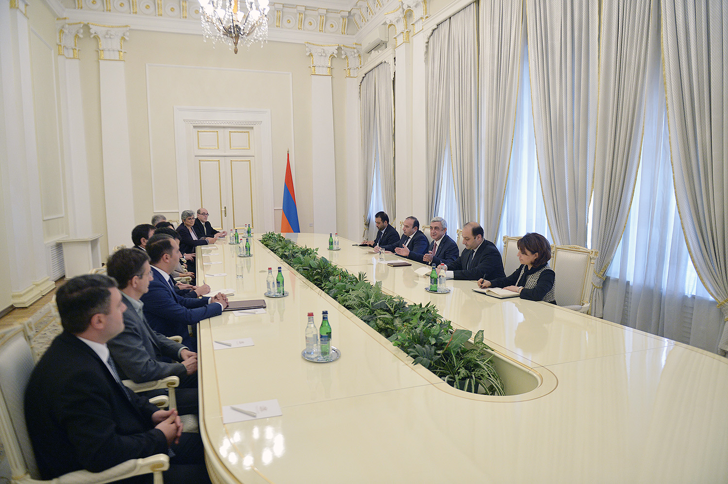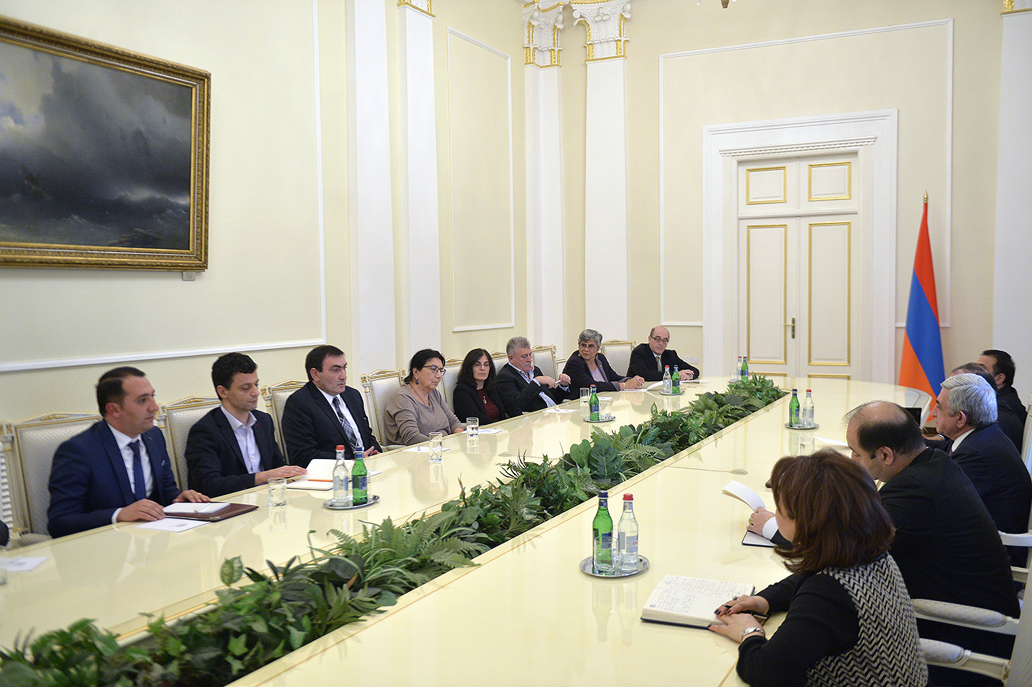 Նախագահ Սերժ Սարգսյանն այսօր ընդունել է նոյեմբերի 5-8-ը Երևանում անցկացվող Երկրորդ համահայկական գիտական համաժողովի մասնակիցներին՝ հայազգի ճանաչված գիտնականների ԱՄՆ-ից, Ռուսաստանից, Ֆրանսիայից, Իռլանդիայից, Դանիայից և մի շարք այլ երկրներից: