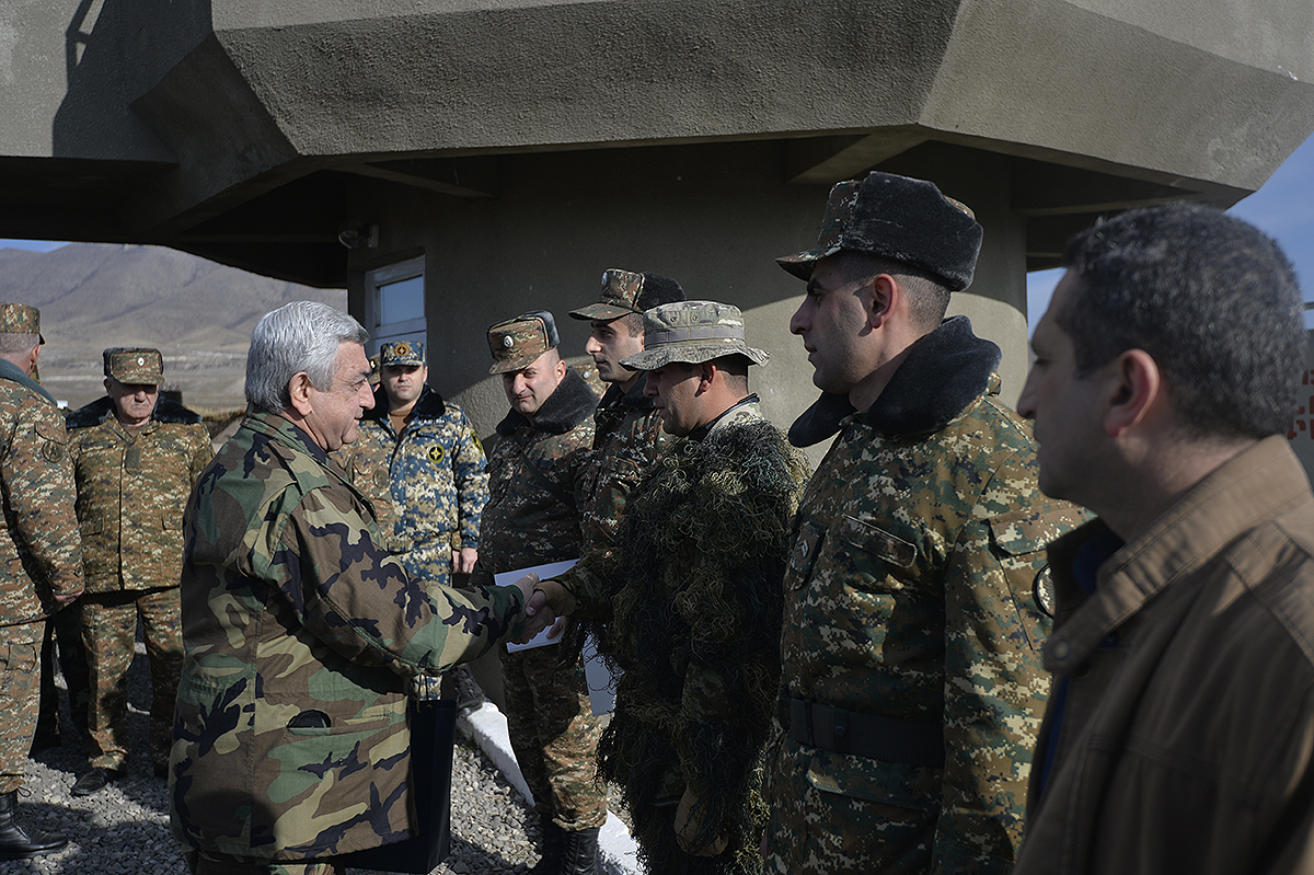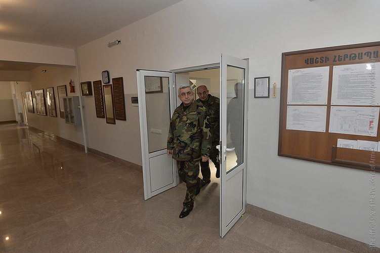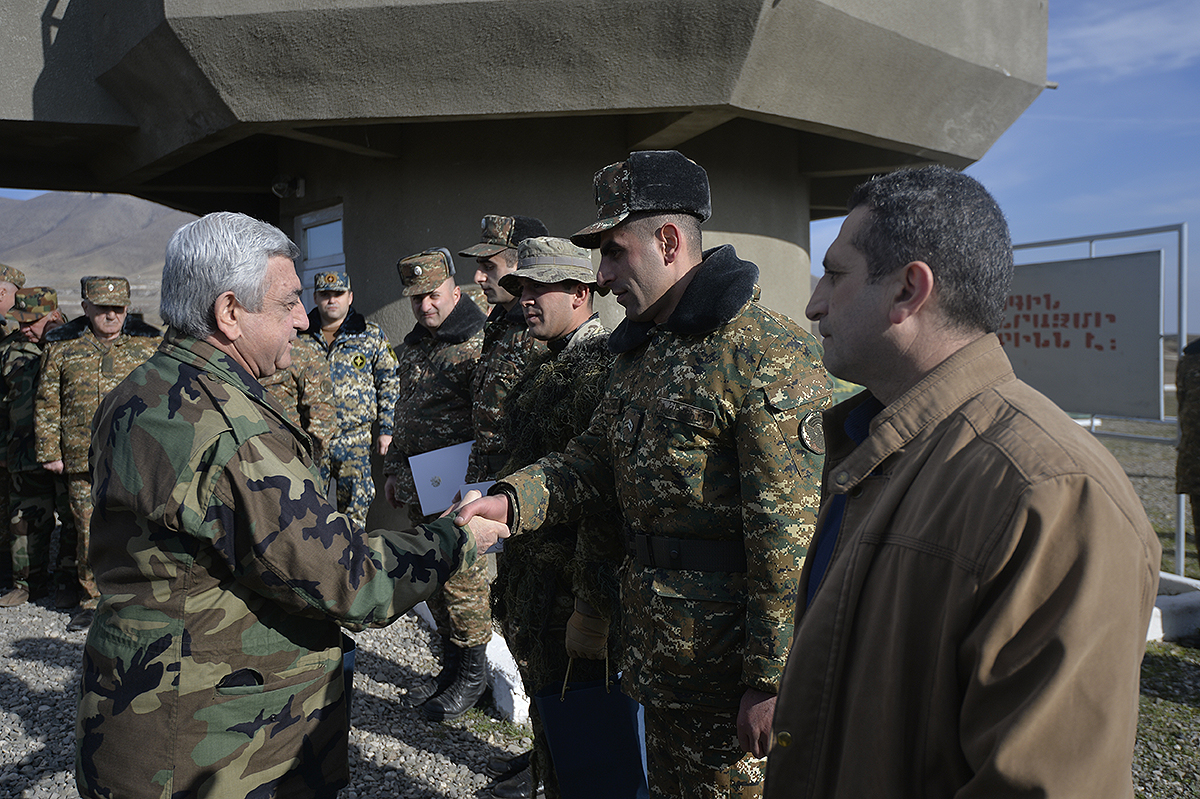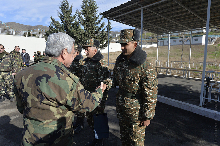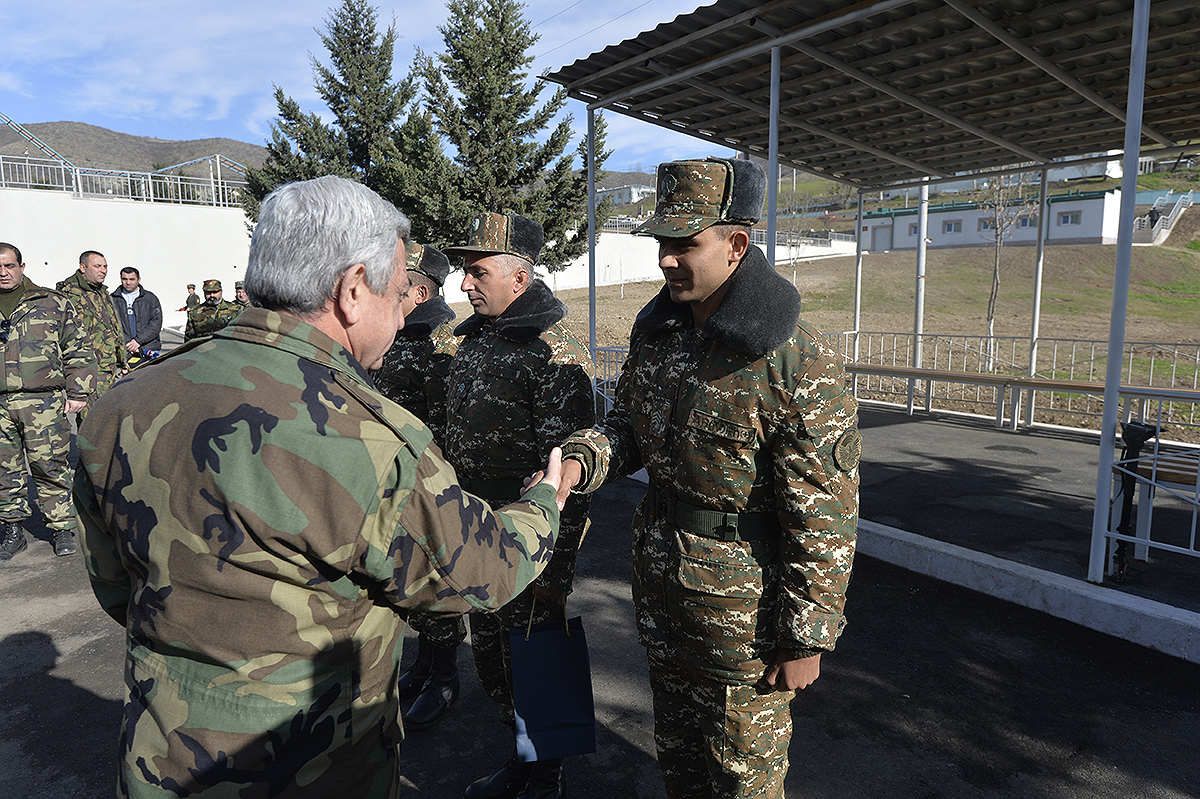 ՀՀ Նախագահը խրախուսական նվերներ է հանձնել ծառայության մեջ աչքի ընկած զինծառայողներին, այնուհետև Արցախի արևելյան և կենտրոնական հատվածներում ներկա է գտնվել նոր զորանոցների և զինվորական ակումբի բացման արարողություններին: Նախագահներ Սերժ Սարգսյանը և Բակո Սահակյանը շրջայց են կատարել նորաբաց զորանոցներում, ծանոթացել զինծառայողների սոցիալ-կենցաղային պայմաններին: Նախագահ Սարգսյանը խրախուսել է զորամասի լավագույն սպաներին, պայմանագրային և ժամկետային զինծառայողներին: