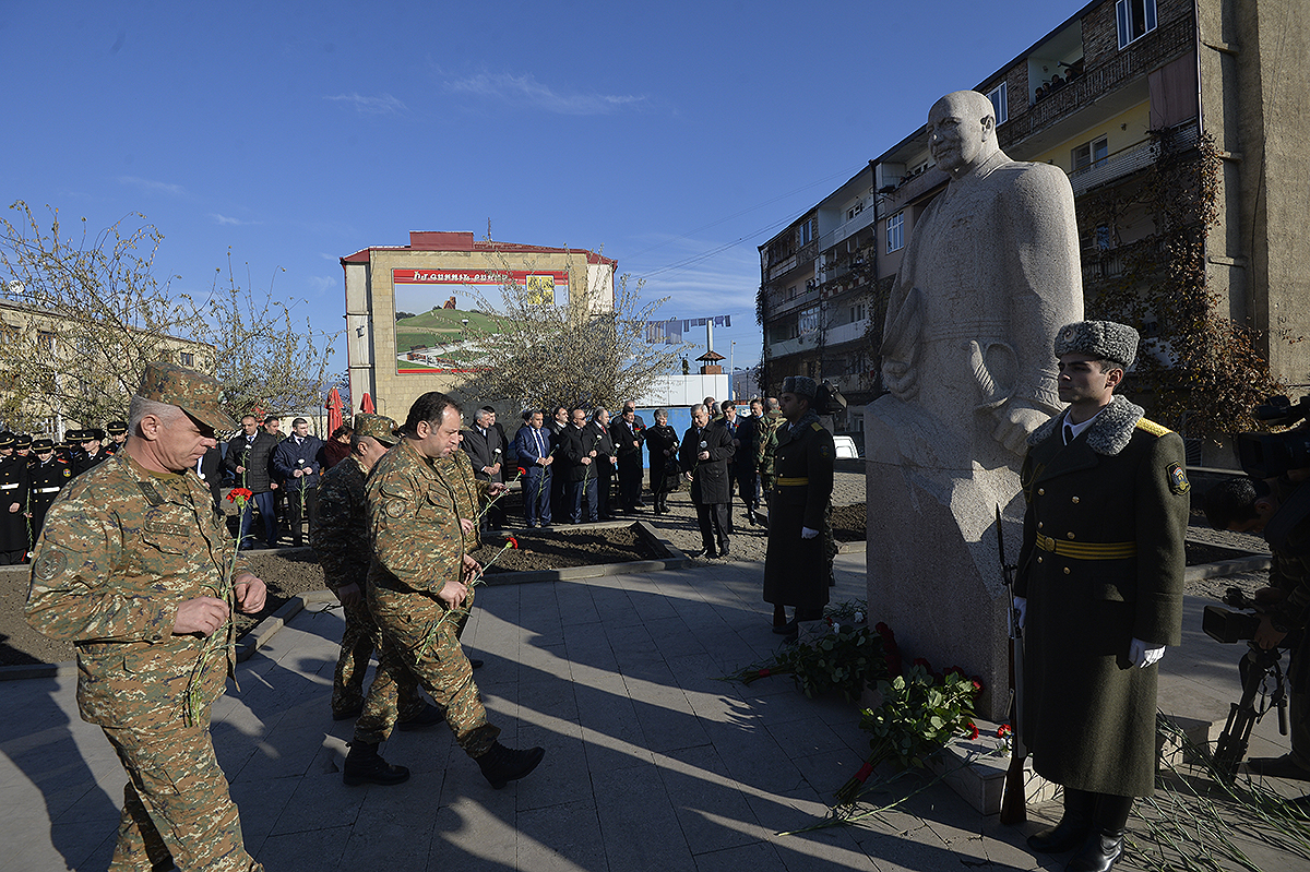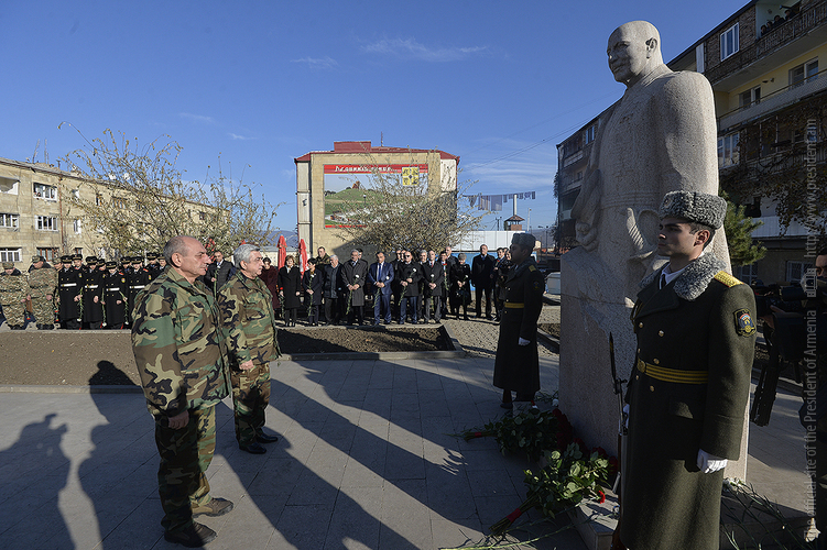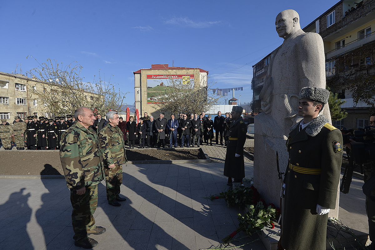 Ստեփանակերտում հայկական երկու հանրապետությունների նախագահները, մարշալ Հովհաննես Բաղրամյանի ծննդյան 120-ամյակի կապակցությամբ, այցելել են մեծ զորավարի հուշարձանին` ծաղիկներ դրել և հարգանքի տուրք մատուցել նրա հիշատակին: