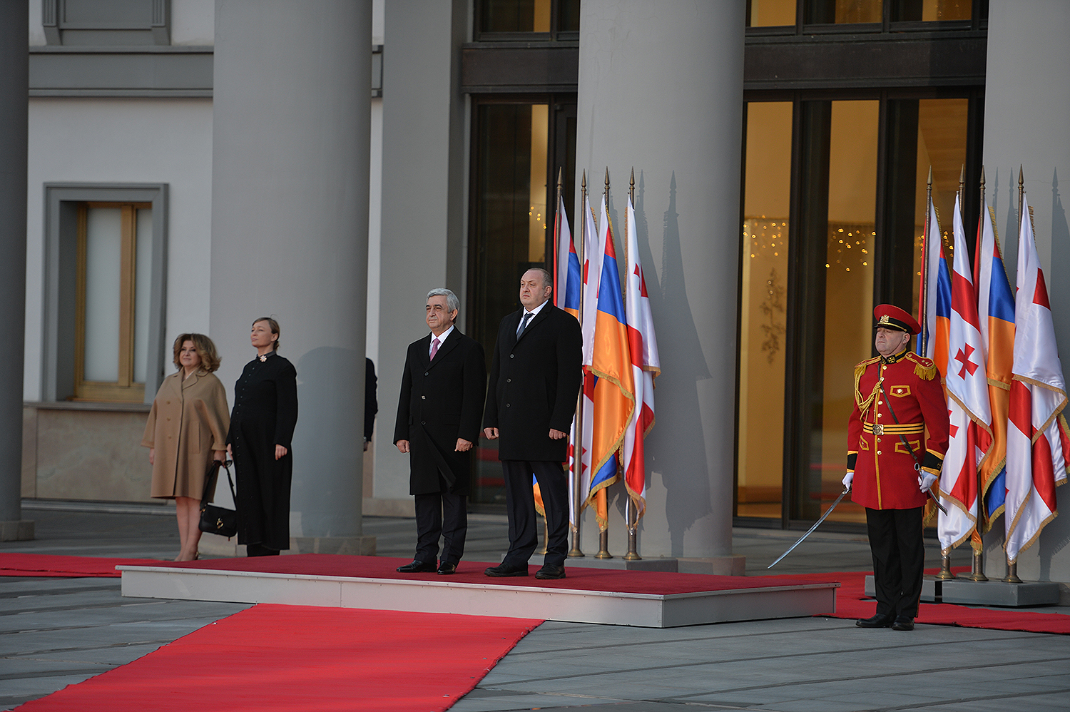 Ի պատիվ պաշտոնական այցով Վրաստանում գտնվող Նախագահ Սերժ Սարգսյանի և տիկին Ռիտա Սարգսյանի՝ Գիորգի Մարգվելաշվիլիի և նրա տիկնոջ` Մակա Չիչուայի անունից երեկոյան կտրվի պաշտոնական ընթրիք: