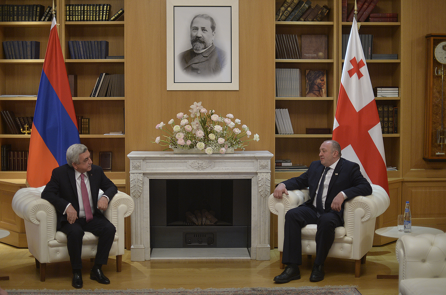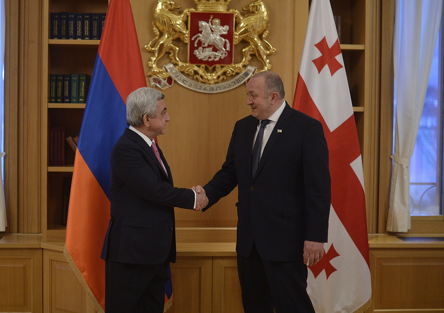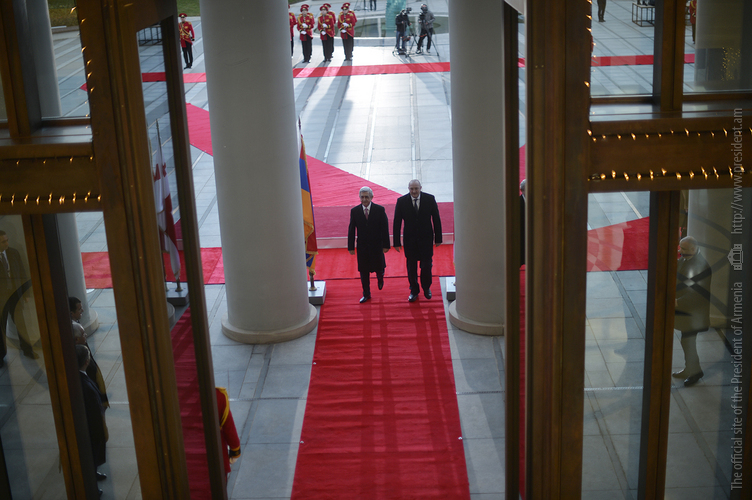 Դիմավորման պաշտոնական արարողությունից հետո Վրաստանի նախագահի նստավայրում մեկնարկել է նախագահներ Սերժ Սարգսյանի և Գիորգի Մարգվելաշվիլիի առանձնազրույցը, որին կհաջորդեն ընդլայնված կազմով հայ-վրացական բարձր մակարդակի բանակցությունները՝ երկու երկրների պատվիրակությունների մասնակցությամբ: