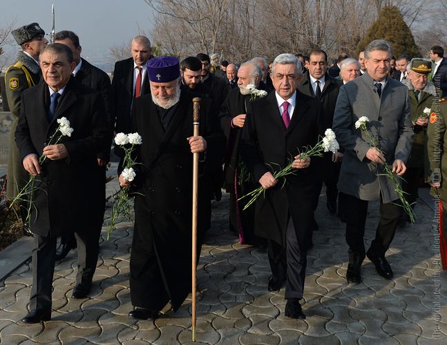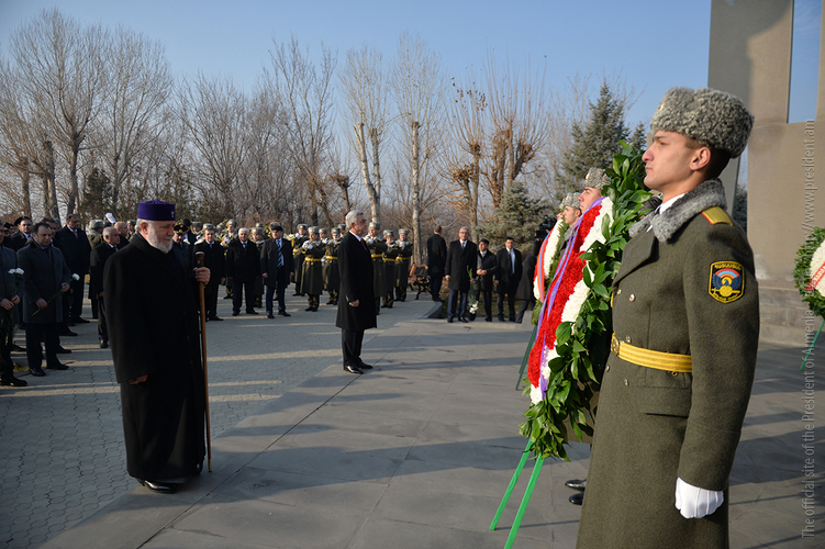 Նախագահ Սերժ Սարգսյանն այսօր Ն.Ս.Օ.Տ.Տ. Գարեգին Բ Ամենայն Հայոց Կաթողիկոսի հետ և Հանրապետության բարձրագույն ղեկավարության ուղեկցությամբ այցելել է «Եռաբլուր» զինվորական պանթեոն՝ հարգանքի տուրք մատուցել Հայրենիքի անկախության համար իրենց կյանքը զոհաբերած հայորդիների հիշատակին: