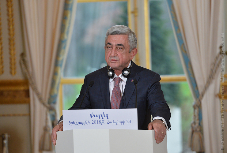 Եվս մեկ անգամ, պարո՛ն Նախագահ, շնորհակալ եմ, որ եկել եք Փարիզ տարվա սկզբին: Առաջիկա ամիսները կլինեն բուռն աշխատանքի ամիսներ, և ևս մեկ անգամ շնորհակալություն եմ հայտնում Ձեր հրավերի համար, որը ես սիրով ընդունում եմ և Հայաստան կժամանեմ պետական այցով այս աշնանը: