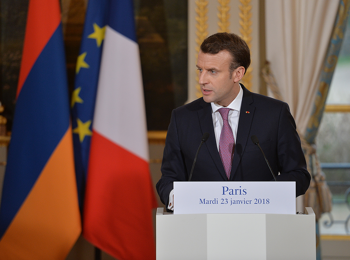 Ֆրանսիայի Հանրապետության նախագահ Էմանուել Մակրոնի խոսքը Նախագահ Սերժ Սարգսյանի հետ հանդիպման արդյունքներով