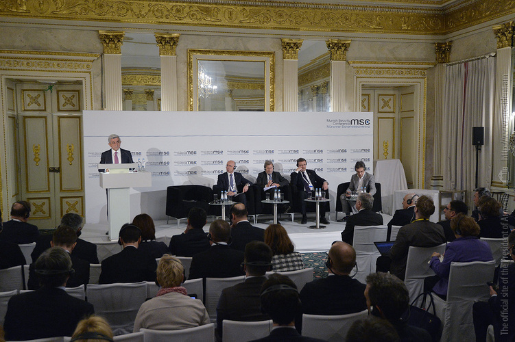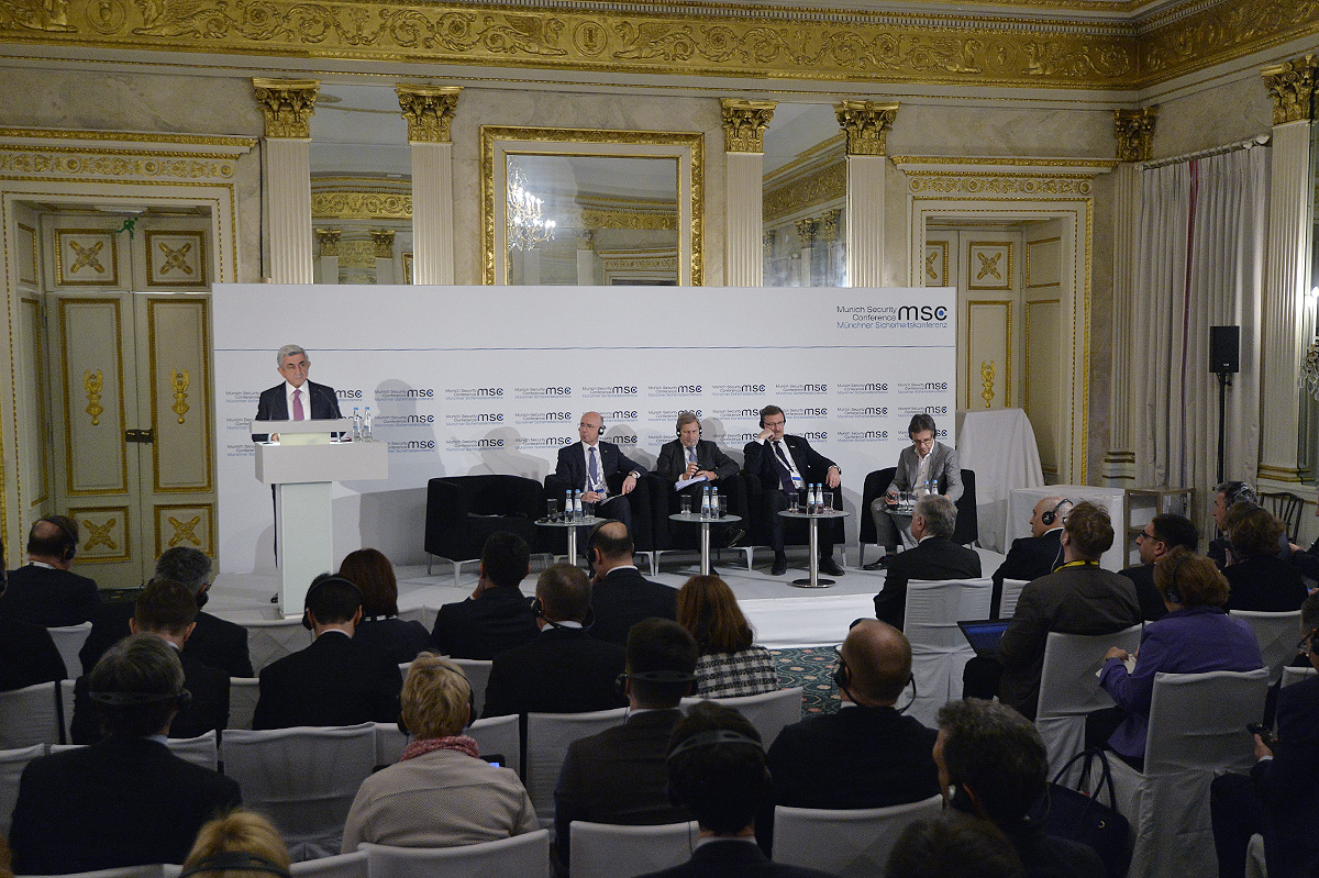 Մյունխենի անվտանգության համաժողովը նախագահող, դեսպան Վոլֆգանգ Իշինգերի հրավերով աշխատանքային այցով Գերմանիայի Դաշնային Հանրապետություն ժամանած Նախագահ Սերժ Սարգսյանն այսօր երեկոյան մասնակցել է Մյունխենի անվտանգության համաժողովին: Համաժողովի «Ներս, թե՞ դուրս. Ռուսաստանի և Եվրոպայի միջև ընկած երկրները» խորագրով քննարկման ժամանակ Հանրապետության Նախագահը հանդես է եկել ելույթով: