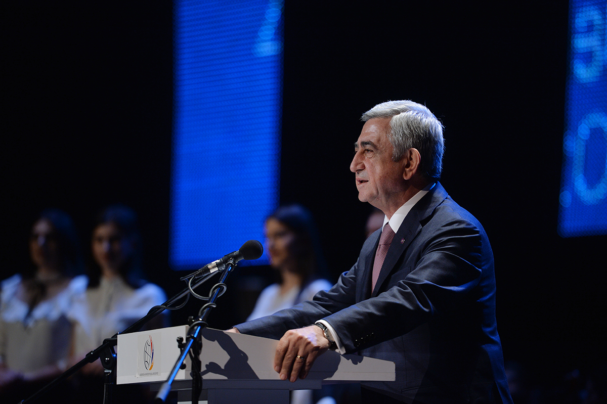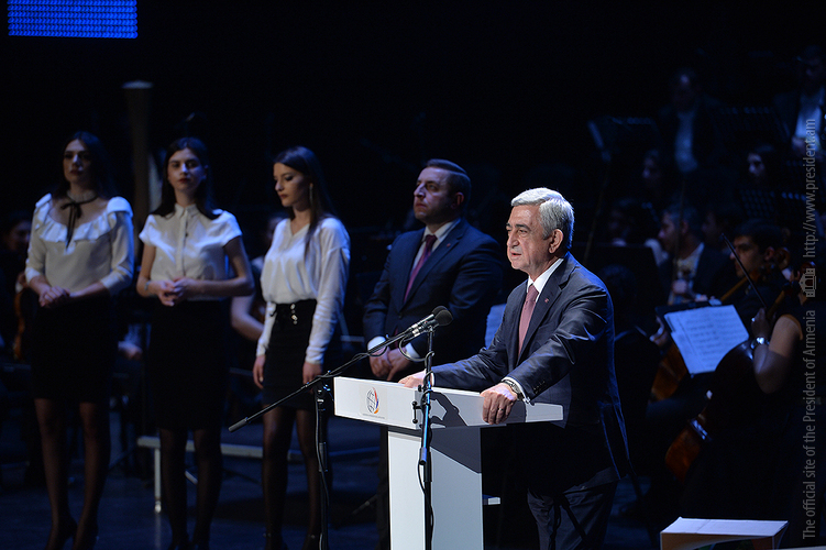 Նորից եմ կրկնում, սիրելի՛ երիտասարդներ, մեր բոլորիս հույսը դուք եք և ի դեմս ձեզ՝ Հայաստանի ուսանողությունը, Հայաստանի երիտասարդությունը: Միգուցե ծեծված խոսքեր են, բայց ապագան ձերն է, և դուք միշտ պետք է կարողանաք արժանավայել ու արժանապատիվ անցնել ձեր ճանապարհը»,-ողջույնի խոսքում ասել է Նախագահ Սերժ Սարգսյանը և ընդգծել, որ կիսում է միջոցառման մասնակիցների կողմից երեկոյի ընթացքում բազմիցս արտահայտված լավատեսությունը, թե ամեն ինչ լավ է լինելու: