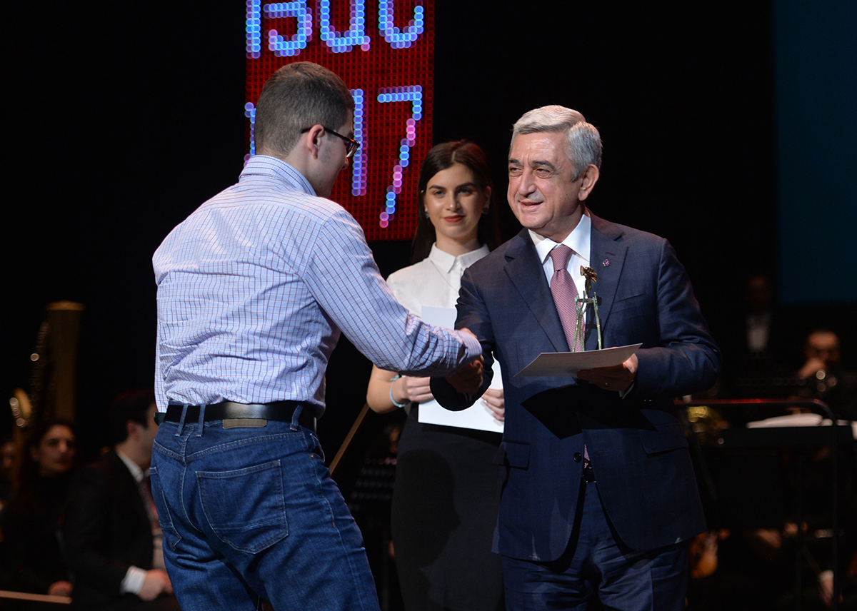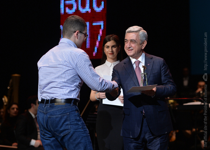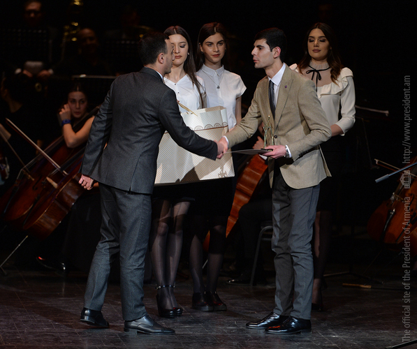 Մրցանակաբաշխության ավարտին Նախագահ Սերժ Սարգսյանը շնորհավորել է բոլոր մրցանակակիրներին, մաղթել նրանց նորանոր հաջողություններ` հույս հայտնելով, որ այսօր նրանց ստացած մրցանակները բաղադրիչներն են դառնալու հաջողությունների այն երկար շղթայի, որ երիտասարդները հետագայում էլ պետք է ունենան` ի փառս Հայաստանի և հայ ժողովրդի: