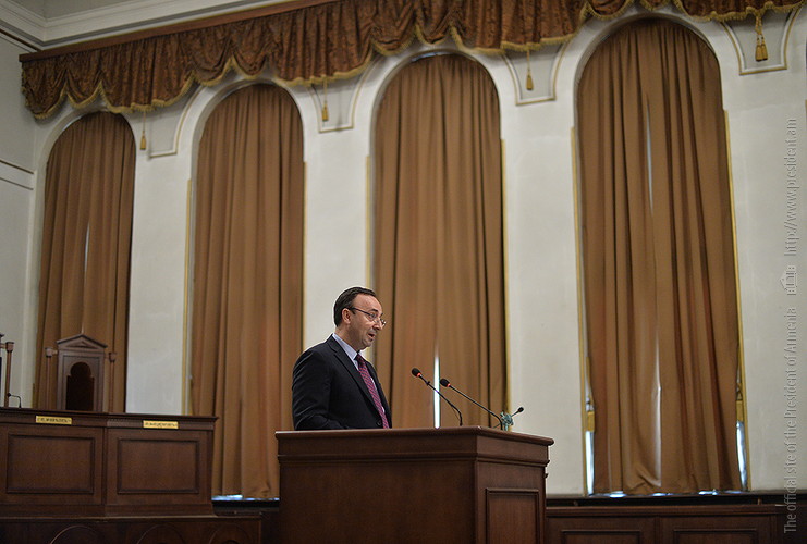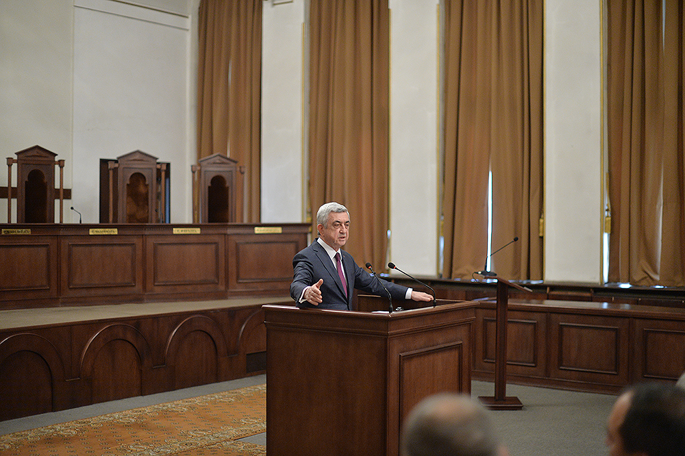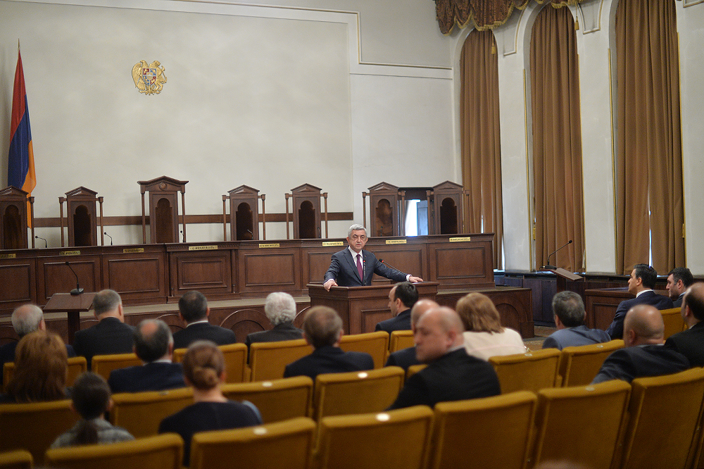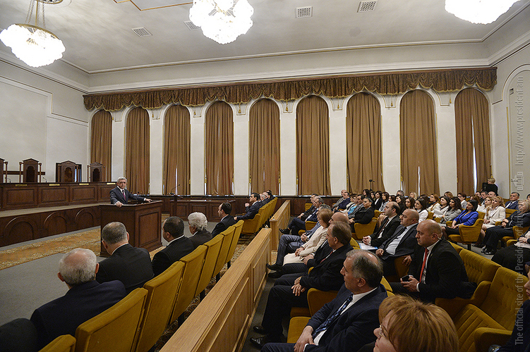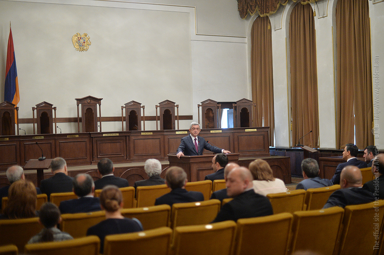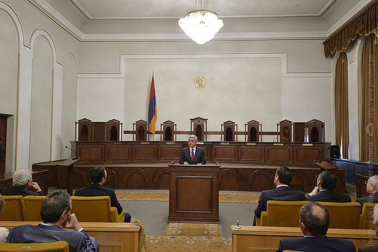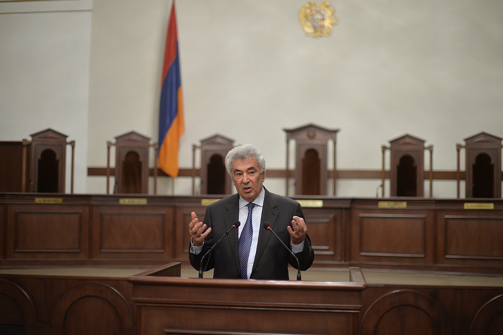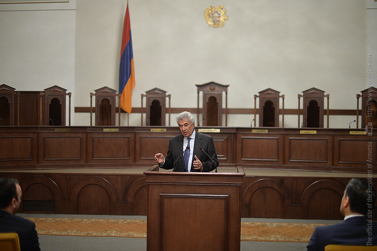 Ասելիքս այն է, որ հաջողություն կարելի է ակնկալել միայն այնտեղ, որտեղ կա շարունակականություն, երբ քարին քար է դրվում, երբ կաթիլները հավաքվելով՝ դառնում են կա՛մ լիճ, կա՛մ գետ և կարողանում են որակ ապահովել: Խորհուրդ կտամ իմ բոլոր գործընկերներին, Սահմանադրական դատարանի աշխատակիցներին, նկատի ունենալ հետևյալը՝ ինչ մենք արել ենք մինչ օրս՝ եղել է նախապատրաստական աշխատանք: Հիշում եք՝ մինչև 2005 թվականը ՝ տասը տարում քննել ենք ընդամենը տասը օրենքի սահմանադրականության հարց, այսօր արդեն երկու ամսում մենք այդքան քննում ենք: Տասը տարի և երկու ամիս: Բայց այդքանով հանդերձ, սահմանադրական նոր փոփոխությունները բոլորովին նոր ասպարեզ են բացում: Եթե արդեն վաղը, մյուս օրը, ամսի 9-ից, երբ նոր օրենքը կսկսի գործել, և նոր դիմողներ կհայտնվեն Սահմանադրական դատարանում, այս պարագայում ծանրաբեռնվածությունը բազմակի ավելանալու է, և պատասխանատվությունն է շատ ավելի բարձրանալու: Ես համոզված եմ, որ այն մեկնարկային պայմանները, որ մեզ հաջողվեց ստեղծել՝ հնարավորություն կտան այդ պատասխանատվությունը իսկապես ստանձնել և իրացնել: Մեր խնդիրը հետևյալն է՝ շատ բան արվեց սահմանադրական փոփոխությունների առումով, շատերդ շփվել եք դրսերում, ունեցել եք նաև հանդիպումներ, ելույթներ կոնֆերանսներում և տեսել եք, որ այսօր չկա մի երկիր, որտեղ սահմանադրական զարգացումներից խոսեն ու դրվատանքի խոսքեր չասվի այն գործընթացի մասին, որն արվեց Հայաստանում: Բայց ամեն ինչ կարող է մնալ թղթի վրա, եթե դա իրական կյանքում նույն ձևով չի դրսևորվում: Չլինի այնպիսի վիճակ, երբ ունենք Սահմանադրություն, բայց սահմանադրականությունը դրան ներդաշնակ չէ, համարժեք չէ: Մենք պետք է իսկապես կարողանանք Սահմանադրությունը կյանքի կոչել: