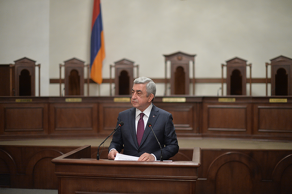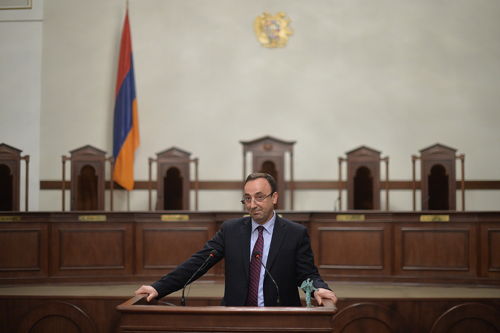 Հարգելի՛ գործընկերներ, իհարկե, առիթից օգտվելով՝ շնորհավորում եմ Հրայր Թովմասյանին Սահմանադրական դատարանի նախագահի պաշտոնում ընտրվելու առթիվ: Պարո՛ն Թովմասյան, Ձեզ բարի երթ եմ մաղթում և հաջողություն այս շատ կարևոր նավի ղեկը պարոն Հարությունյանի հմուտ ձեռքից ստանձնելու կապակցությամբ: Դա արդեն պատասխանատվության շատ մեծ բեռ է դնում Ձեր ուսերին: