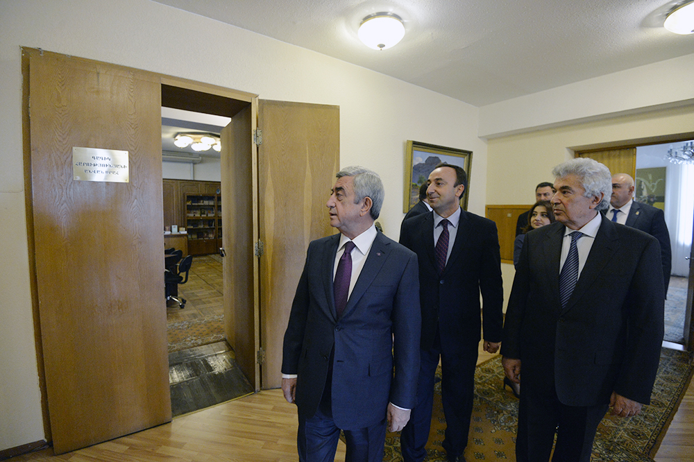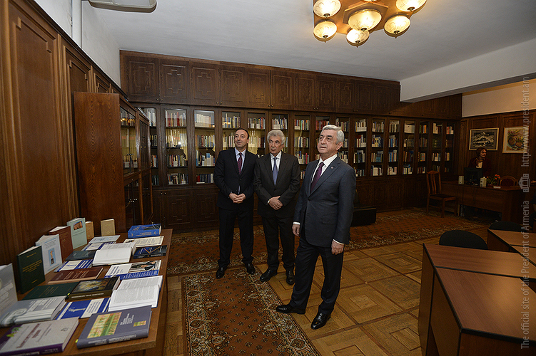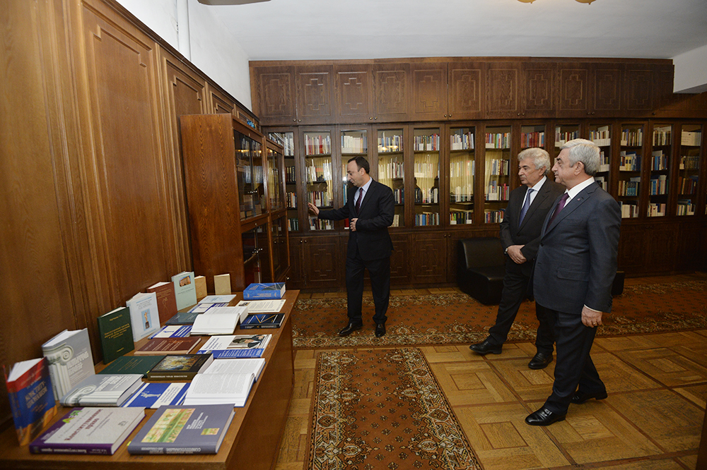 Մինչ այդ Հանրապետության Նախագահը Սահմանադրական դատարանի նախագահ Հրայր Թովմասյանի և դատարանի նախկին նախագահ, Բարձրագույն դատական խորհրդի նախագահ Գագիկ Հարությունյանի ուղեկցությամբ ծանոթացել է այսօրվանից Գագիկ Հարությունյանի անունը կրող՝ իրավաբանական, գիտական ու լրագրական նյութերով և մասնագիտական ձեռնարկներով հարուստ ՍԴ գրադարանի գործունեությանը, որը նախատեսված է ոչ միայն ՍԴ անդամների ու աշխատակազմի աշխատակիցների, այլ նաև իրավաբանությամբ զբաղվող անձանց և ուսանողների համար: ՍԴ նախագահը նշել է, որ նախատեսում է թվայնացնել գրադարանը և նոր տեխնոլոգիաների շնորհիվ այն ավելի հասանելի դարձնել օգտվողների համար: