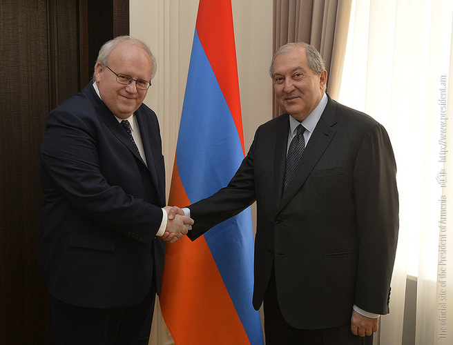 Ողջունելով հյուրերին` Հանրապետության նախագահը մեծապես կարևորել է Եվրոպական երկրների և ԵՄ հետ հարաբերությունների հետագա զարգացումը և խորացումը: Նախագահը խոսել է նաև տարվա ընթացքում կայանալիք Հայաստանի Հանրապետության և Մայիսյան հերոսամարտերի 100-ամյակին և Երևանի հիմնադրման 2800-ամյակին նվիրված հոբելյանական միջոցառումների, ինչպես նաև Ֆրանկոֆոնիայի գագաթնաժողովի պատշաճ անցկացման մասին: