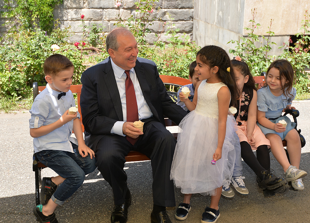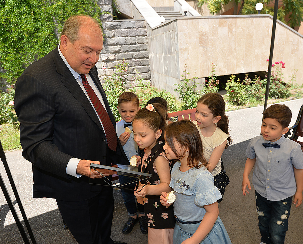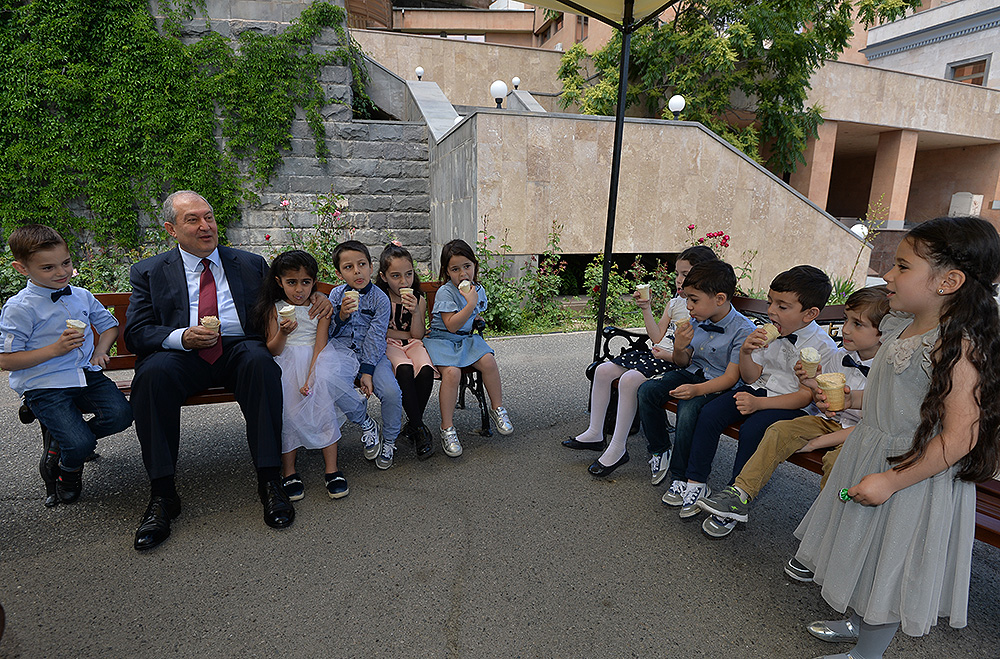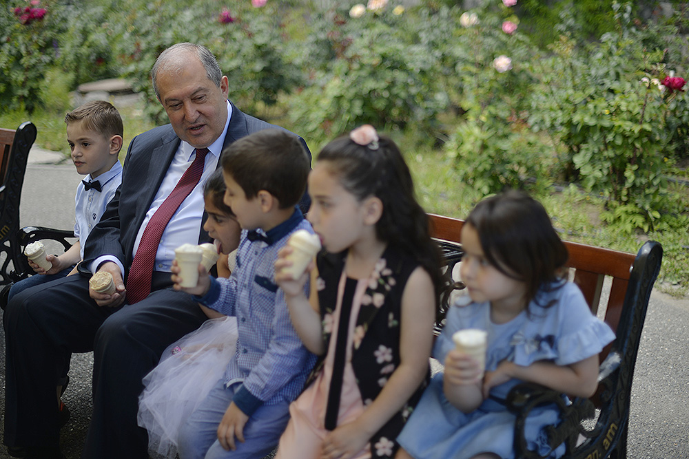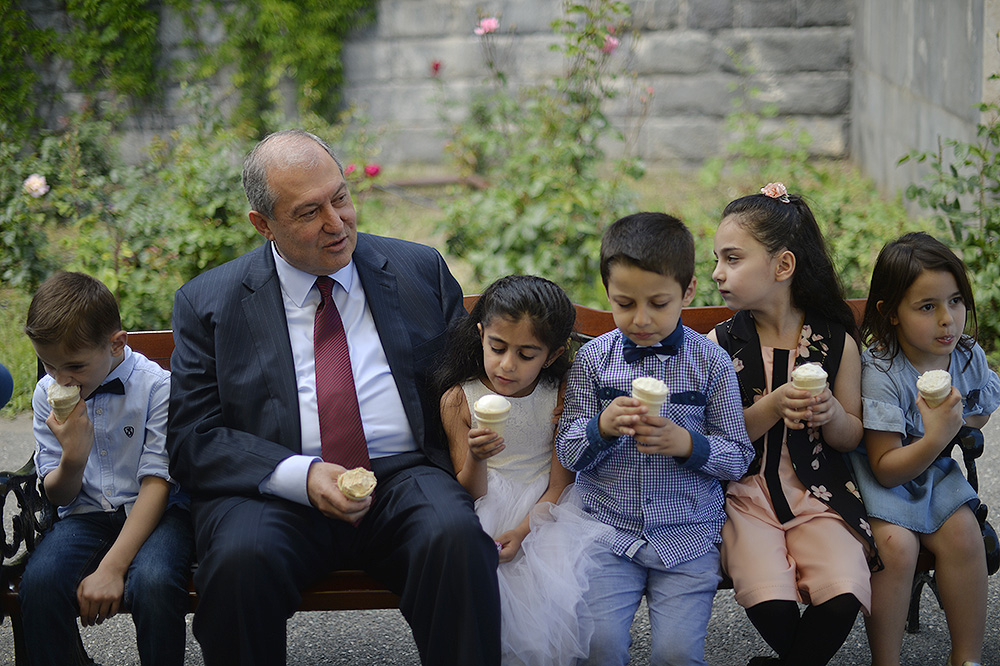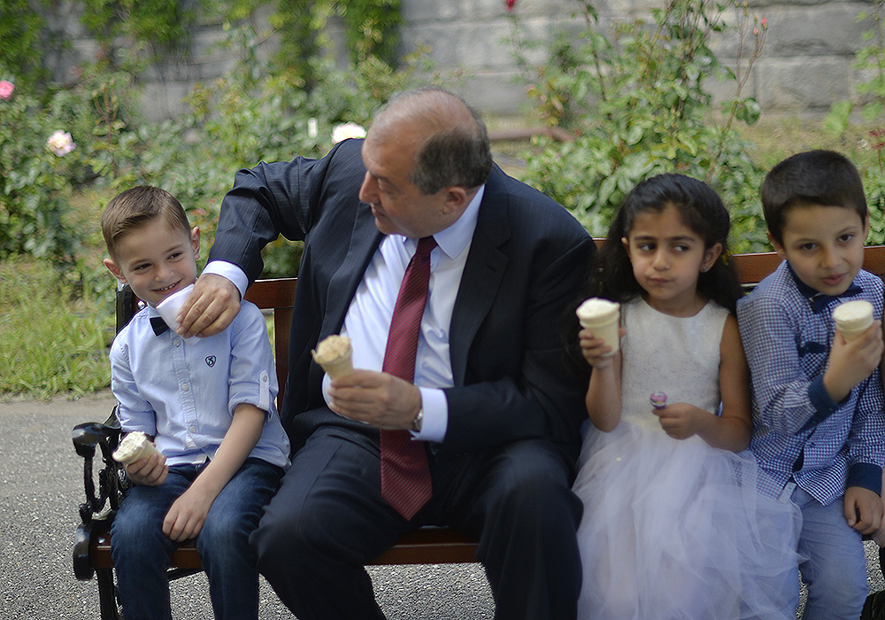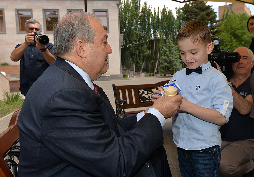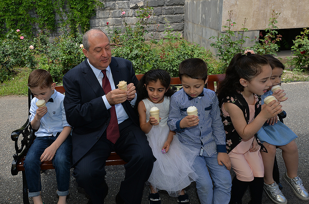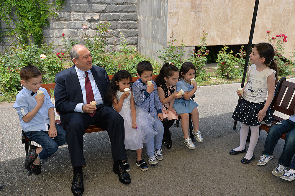 Օրեր առաջ Հանրապետության Նախագահն իր նստավայրի մոտ պատահաբար հանդիպել էր փոքրիկներին և նրանց հրավիրել նախագահական նստավայր՝ խոստանալով պաղպաղակ հյուրասիրել: