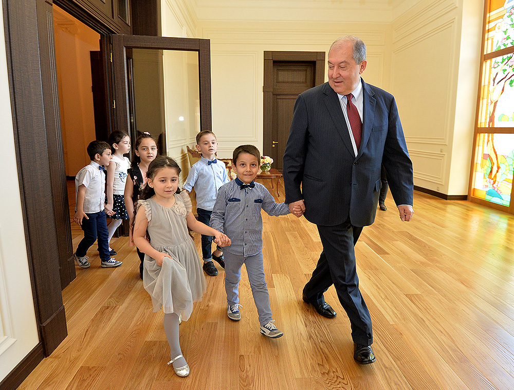 Հանրապետության Նախագահ Արմեն Սարգսյանն այսօր իր նստավայրում հյուրընկալել է Երևանի թիվ 7 նախավարժարանի մի խումբ սաների:
