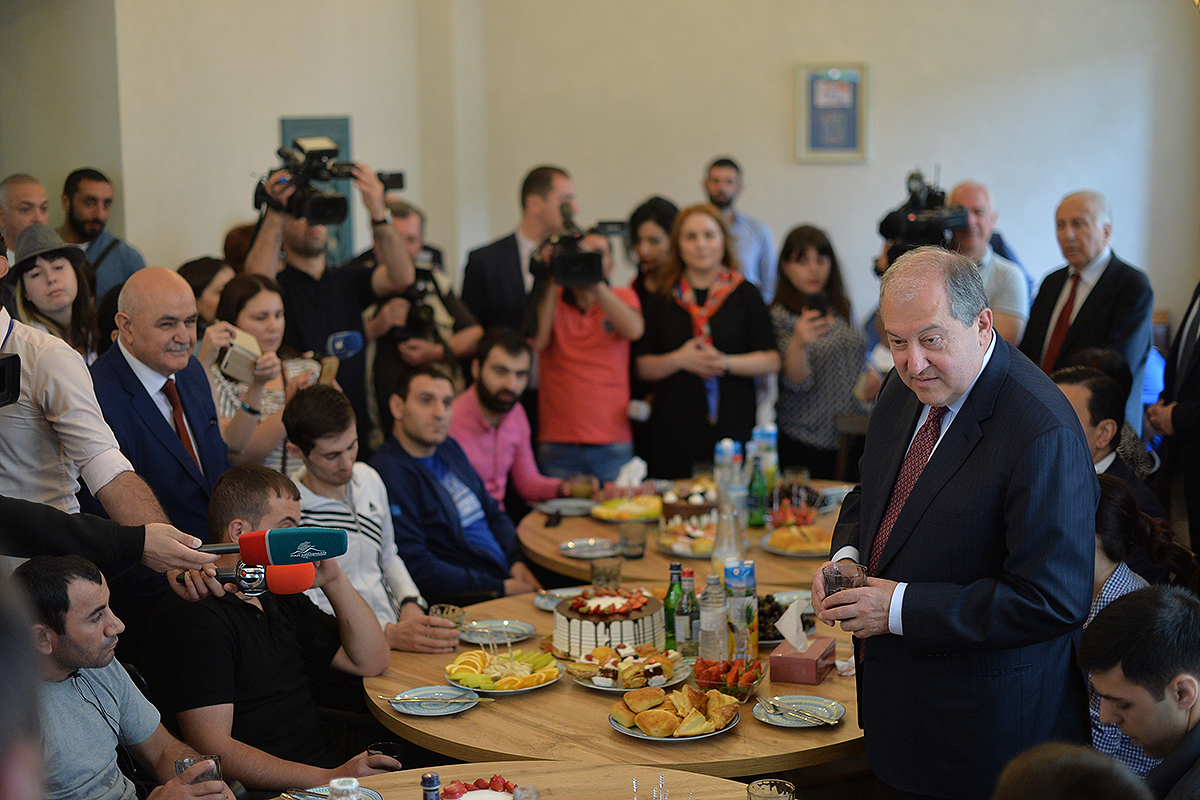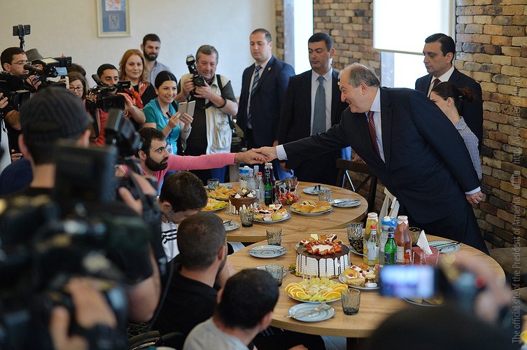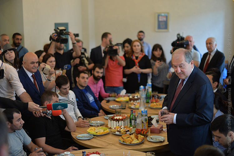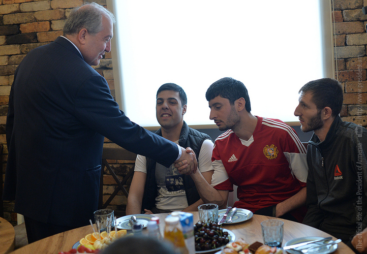 Նախագահ Սարգսյանը նախաճաշել է զինծառայողների հետ: Նա երախտագիտություն է հայտնել հայրենիքի պաշտպաններին՝ նվիրումի ու անմնացորդ ծառայության համար և նրանց մաղթել շուտափույթ առողջություն: