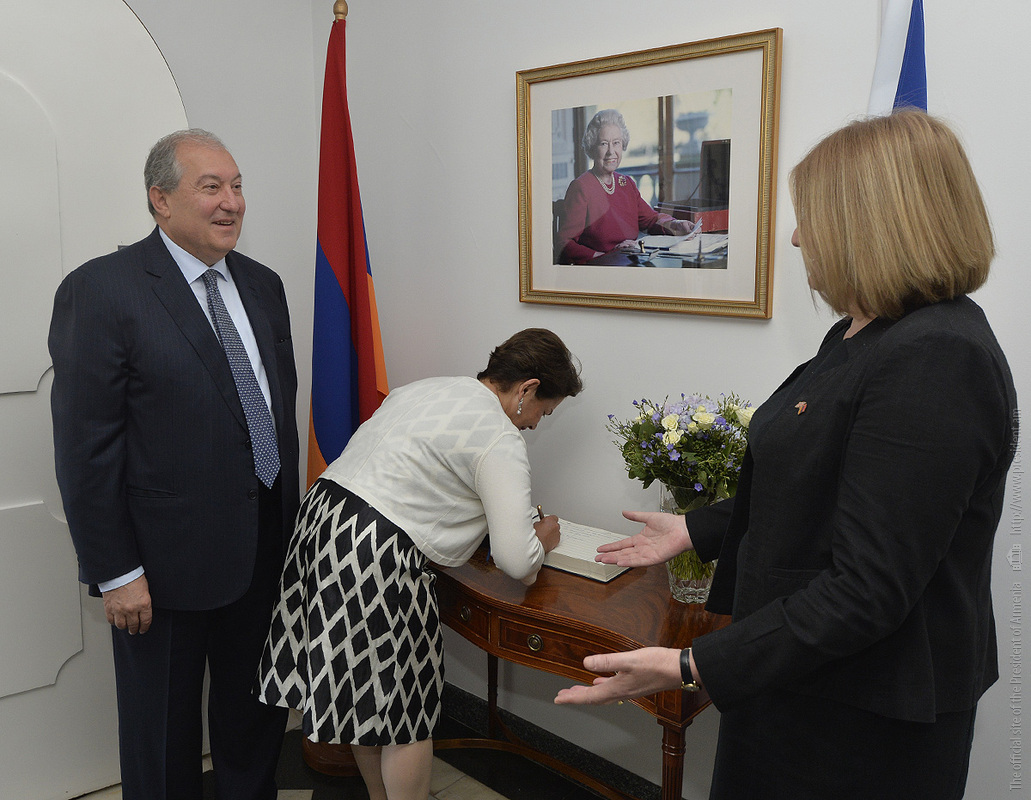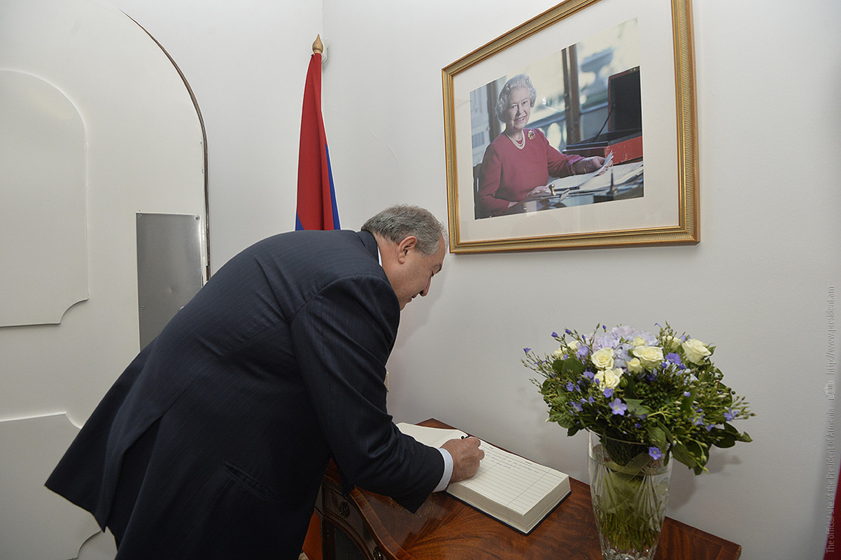Նախագահ Արմեն Սարգսյանը եւ տիկին Նունե Սարգսյանը Մեծ Բրիտանիայի եւ Հյուսիսային Իռլանդիայի Միացյալ Թագավորության ազգային տոնի՝ Եղիսաբեթ Երկրորդ Թագուհու պաշտոնական ծննդյան օրվա առթիվ, այսօր այցելել են Հայաստանի Հանրապետությունում Միացյալ Թագավորության դեսպանի կեցավայր` շնորհավորել դեսպան Ջուդիթ Ֆարնուորթին եւ դեսպանատան ամբողջ անձնակազմին: