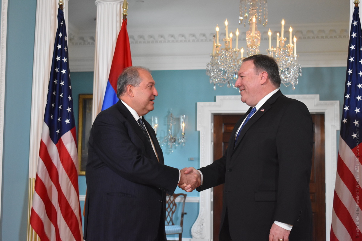 Վաշինգտոն կատարած աշխատանքային այցի վերջին օրը` հունիսի 29-ին, Հանրապետության նախագահ Արմեն Սարգսյանը հանդիպում է ունեցել Ամերիկայի Միացյալ Նահանգների պետքարտուղար Մայք Պոմփեոյի հետ: