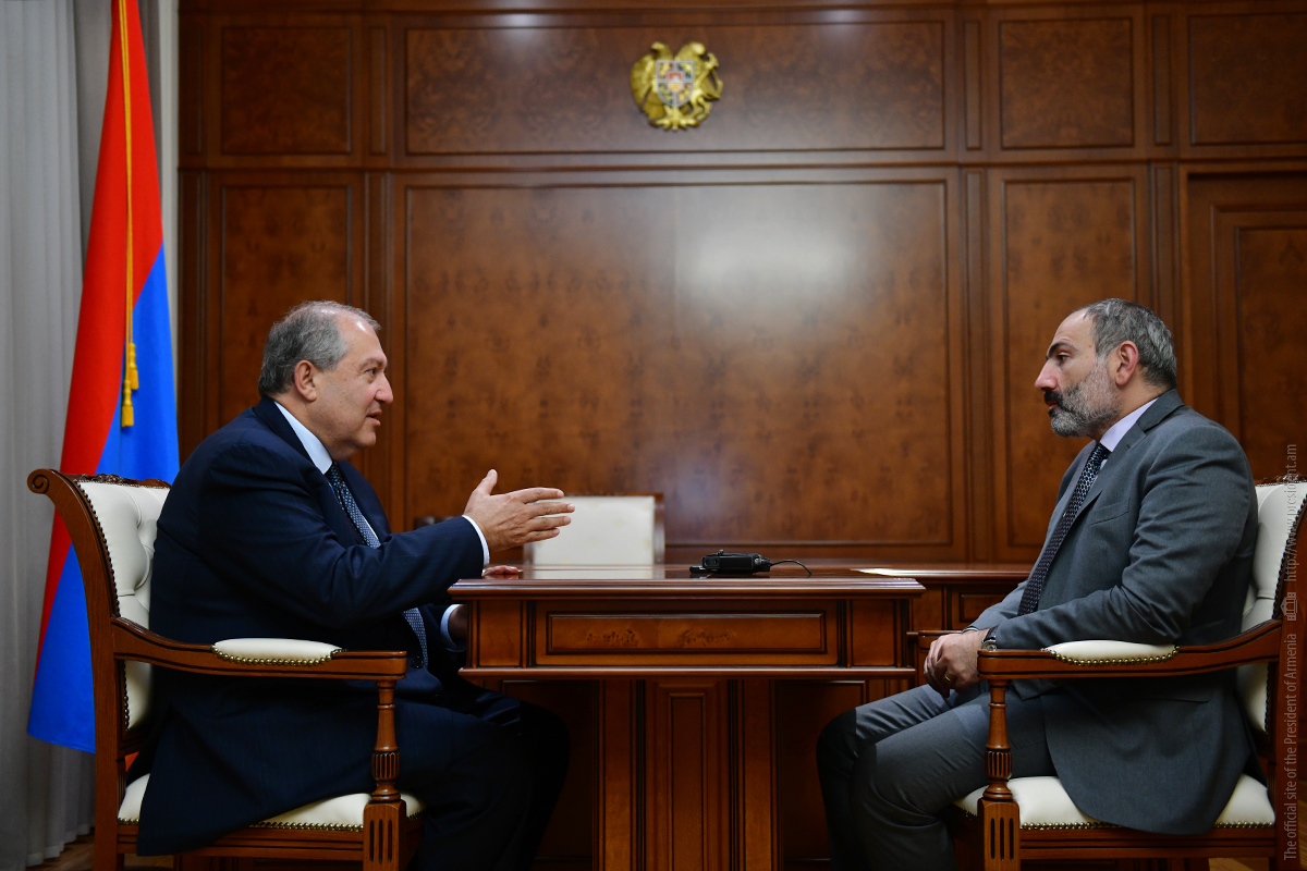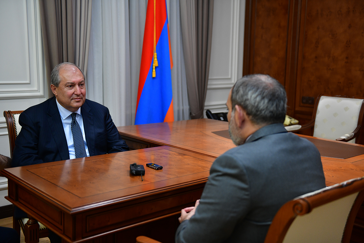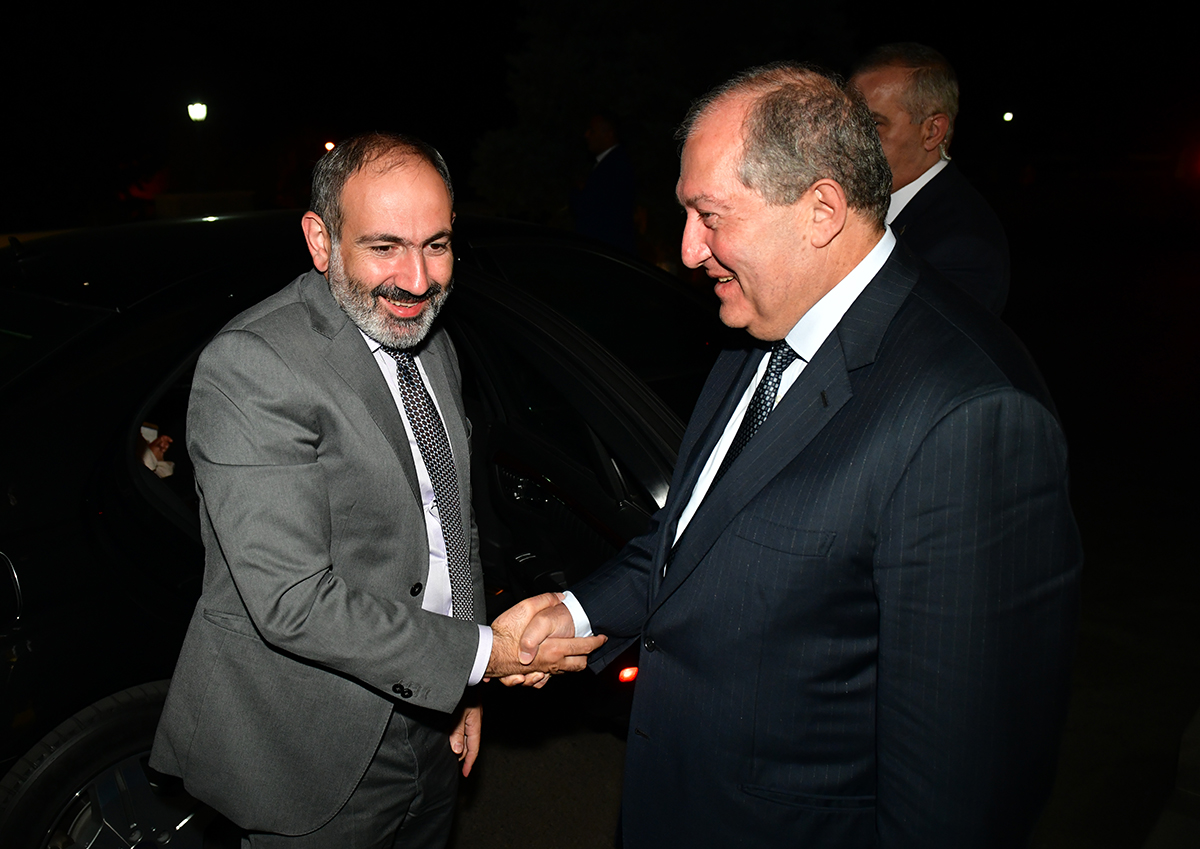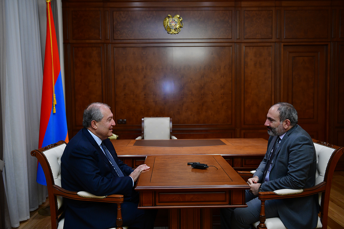 Հանրապետության նախագահի նստավայրում այսօր տեղի է ունեցել նախագահ Արմեն Սարգսյանի և վարչապետի պաշտոնակատար Նիկոլ Փաշինյանի հանդիպումը: Քննարկվել են ներքաղաքական իրավիճակին վերաբերող հարցեր: