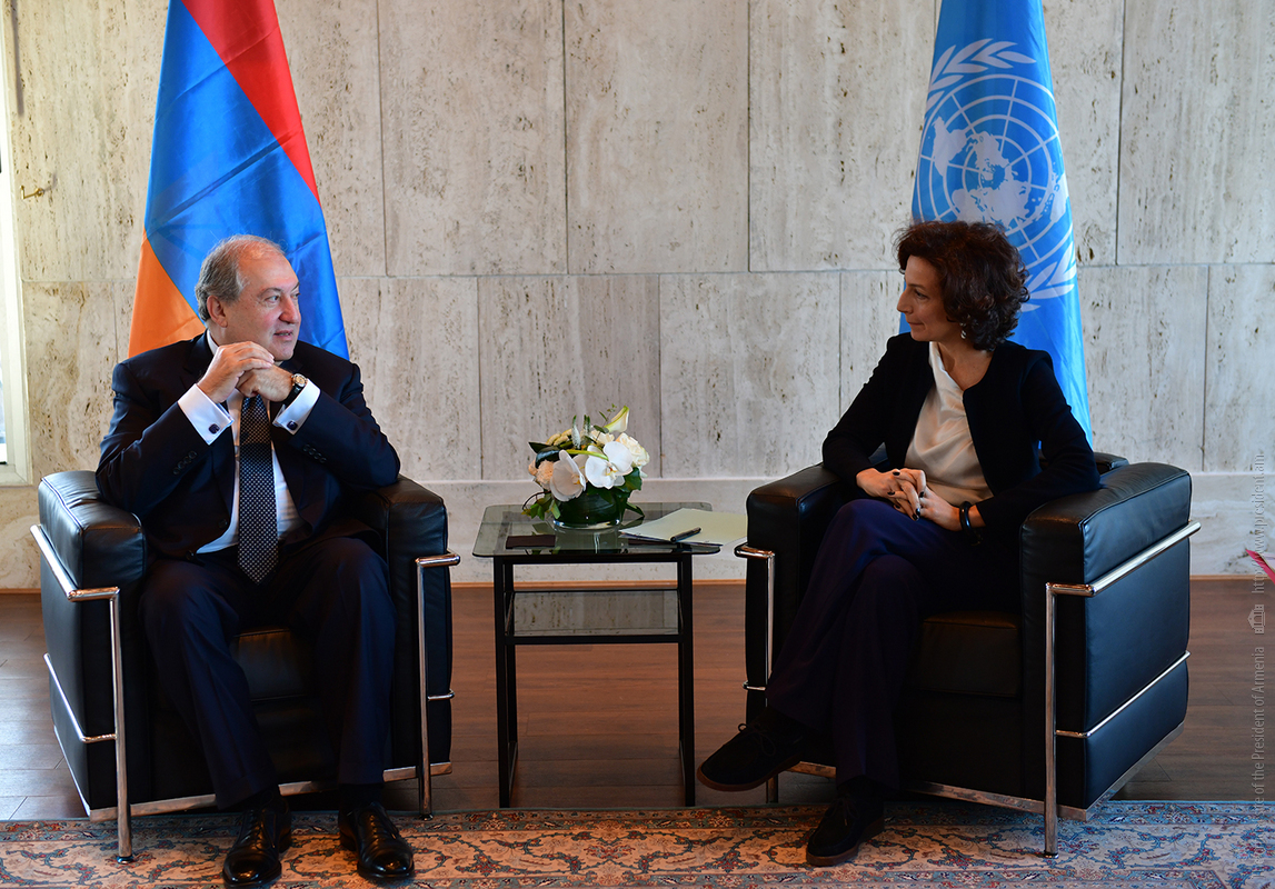 Հայաստանի Հանրապետության նախագահ Արմեն Սարգսյանը Փարիզում ՅՈՒՆԵՍԿՕ-ի կենտրոնակայանում այսօր հանդիպել է կազմակերպության գլխավոր տնօրեն Օդրի Ազուլայի հետ: