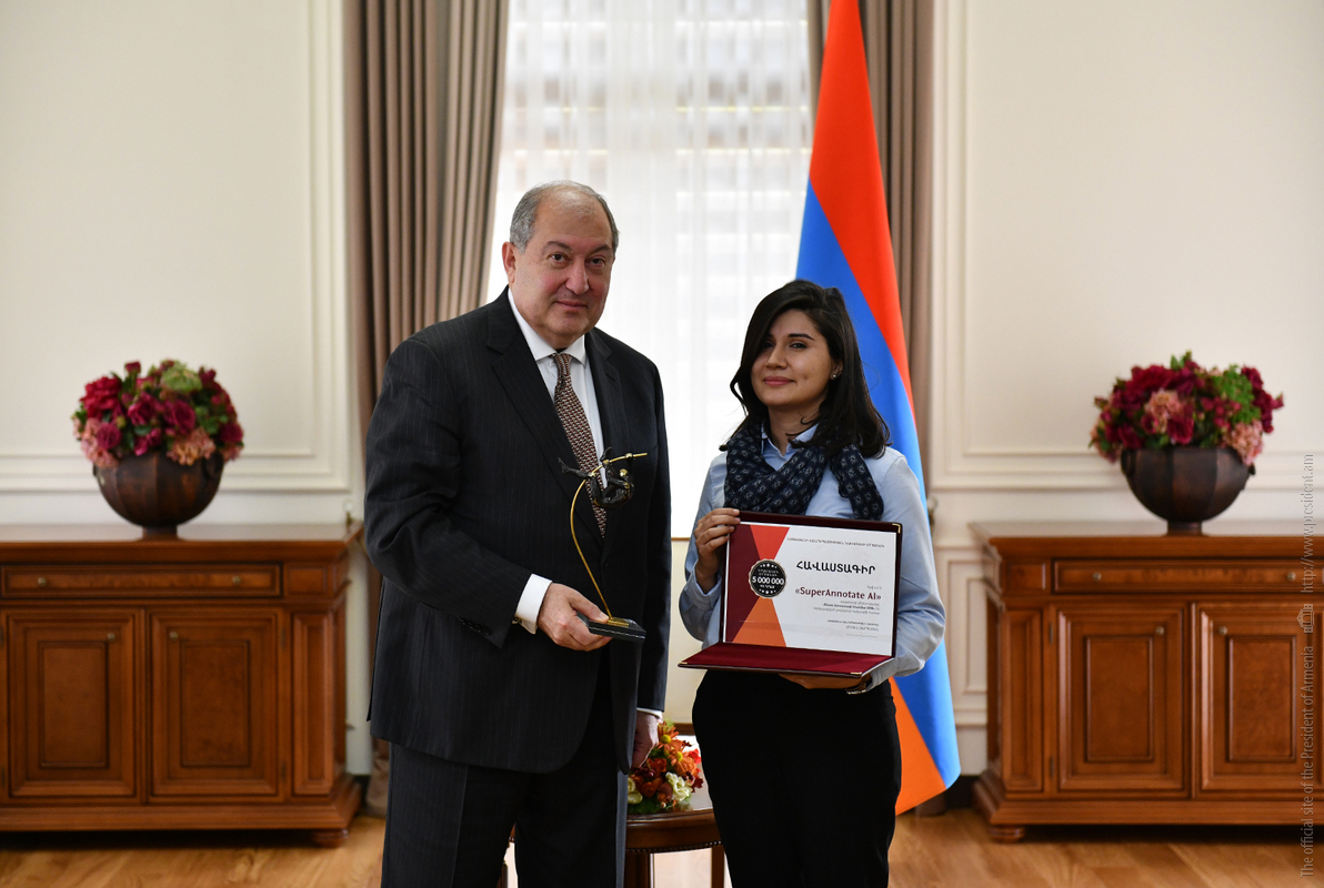 Նախագահական նստավայրում այսօր Հանրապետության նախագահի հատուկ մրցանակներ են հանձնվել «Սևան ստարտափ սամմիթ 2018»-ի մասնակից երեք թիմերի: