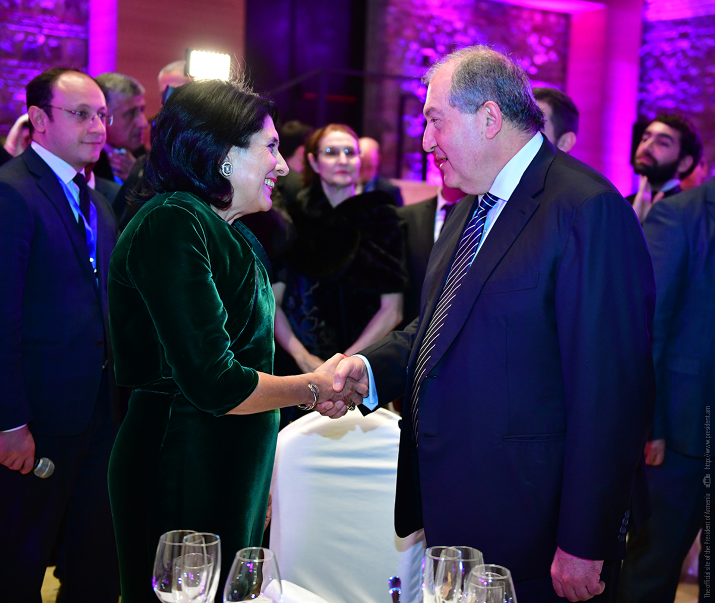 Հայաստանի Հանրապետության նախագահ Արմեն Սարգսյանն այսօր երեկոյան մասնակցել է Վրաստանի նախագահ Սալոմե Զուրաբիշվիլիի անունից՝ ի պատիվ Վրաստան ժամանած բարձրաստիճան պատվիրակությունների տրված պաշտոնական ընթրիքին: