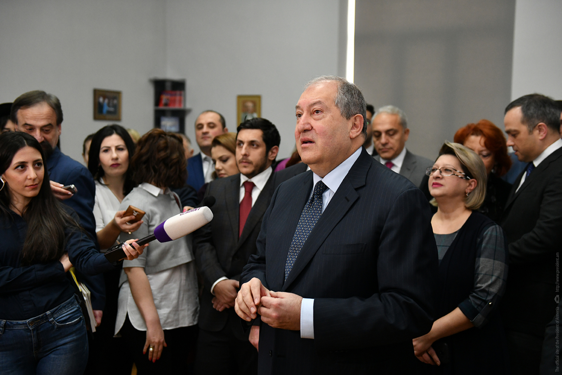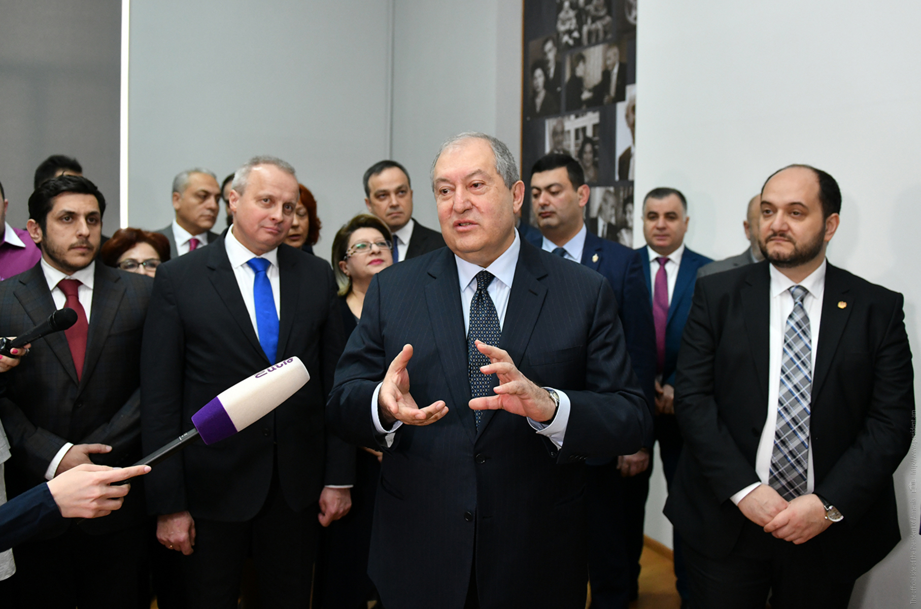 Հանրապետության նախագահ Արմեն Սարգսյանն այսօր Վ. Բրյուսովի անվան պետական լեզվահասարակագիտական համալսարանում մասնակցել է լեգենդար հետախույզներ Գոհար և Գևորգ Վարդանյանների անվան լսարանի բացման արարողությանը։