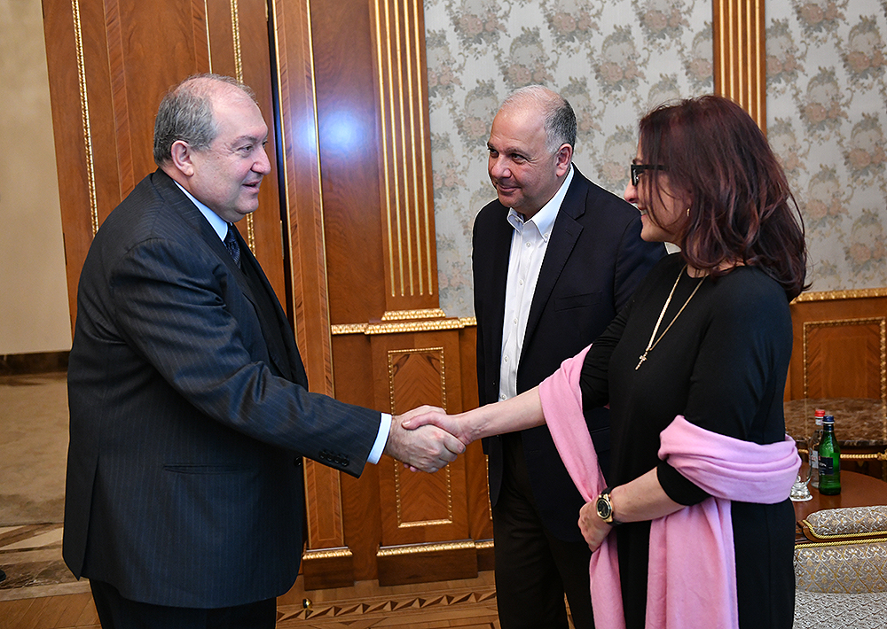 Հանրապետության նախագահ Արմեն Սարգսյանն այսօր ընդունել է Ամերիկայի հայկական համագումարի հոգաբարձուների խորհրդի համանախագահ Էնթոնի Բարսամյանին և կազմակերպության տարածաշրջանային տնօրեն Արփի Վարդանյանին: