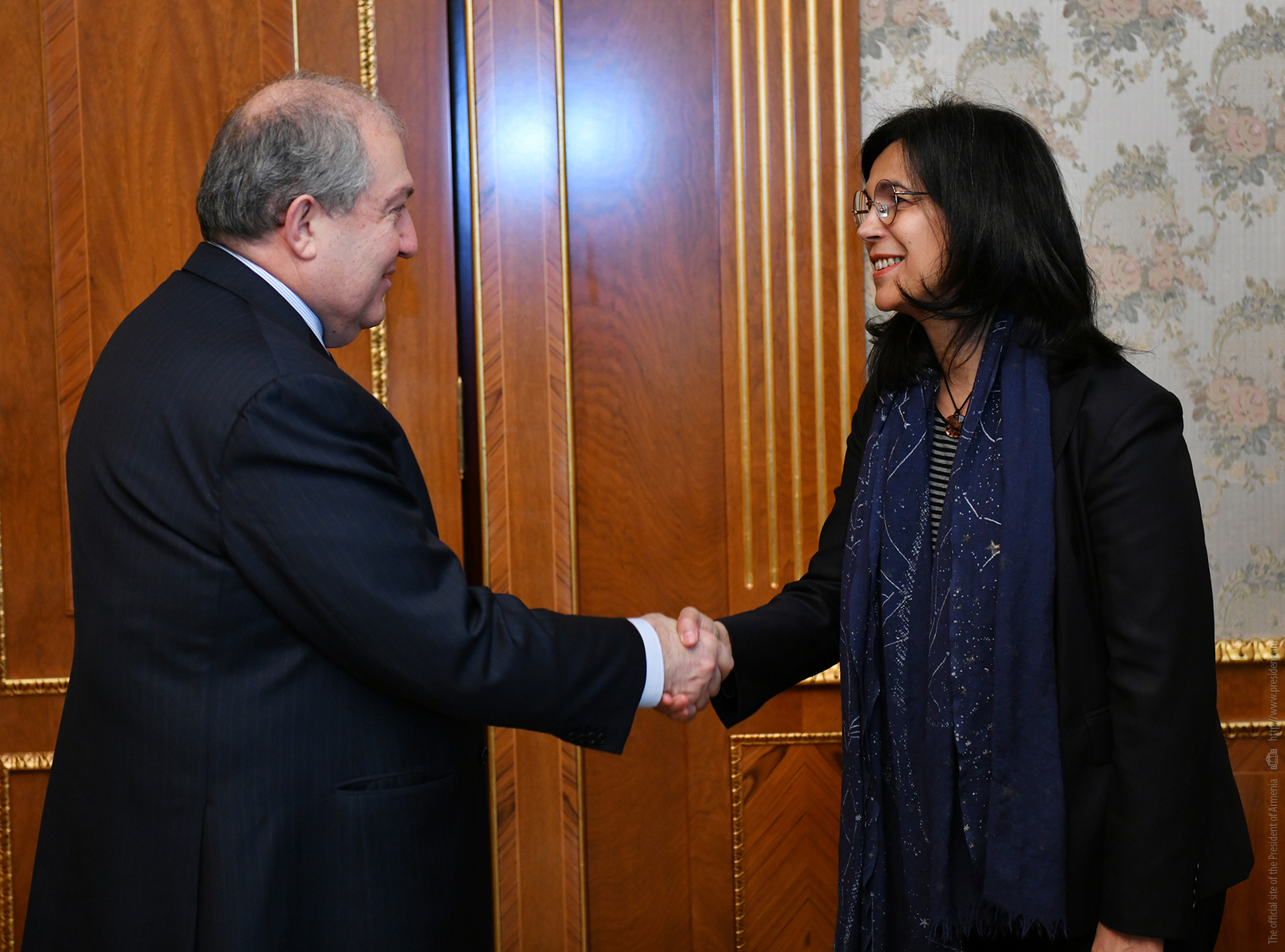 Հանրապետության նախագահ Արմեն Սարգսյանն այսօր ընդունել է ֆրանսիական առաջատար ընկերություններից մեկի՝ «Վեոլիա» ընկերության Կենտրոնական և Արևելյան Եվրոպայի երկրների գծով գործադիր փոխնախագահ Մալիկա Գենդուրիին: