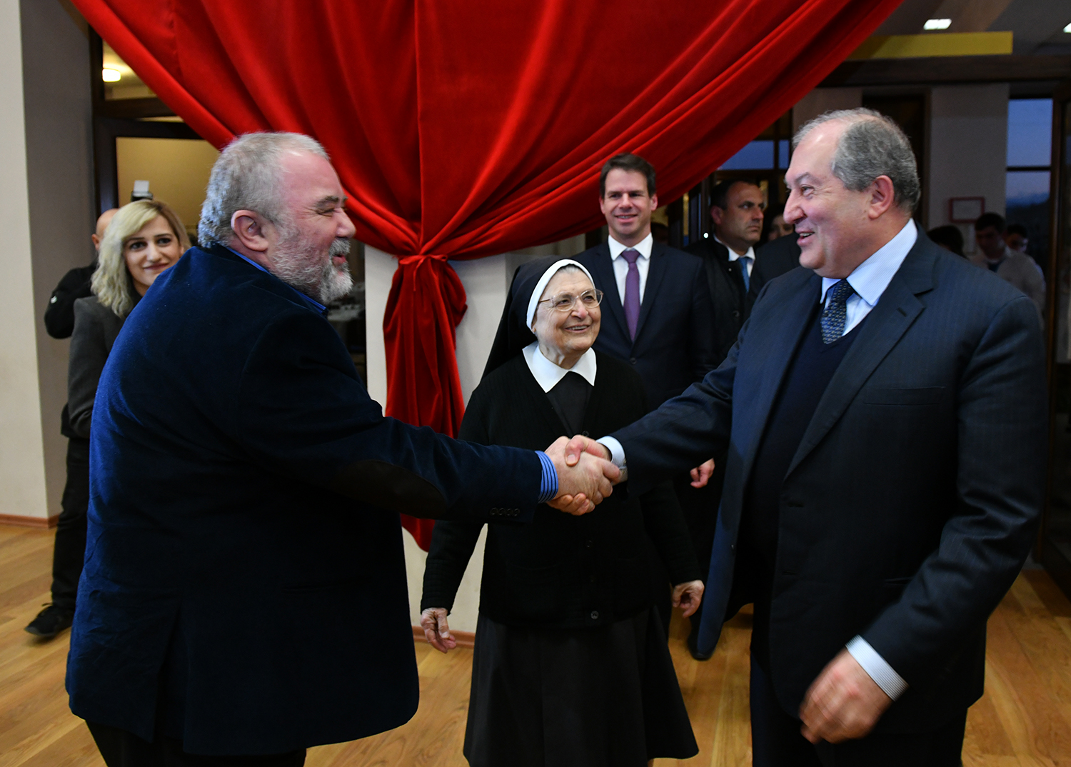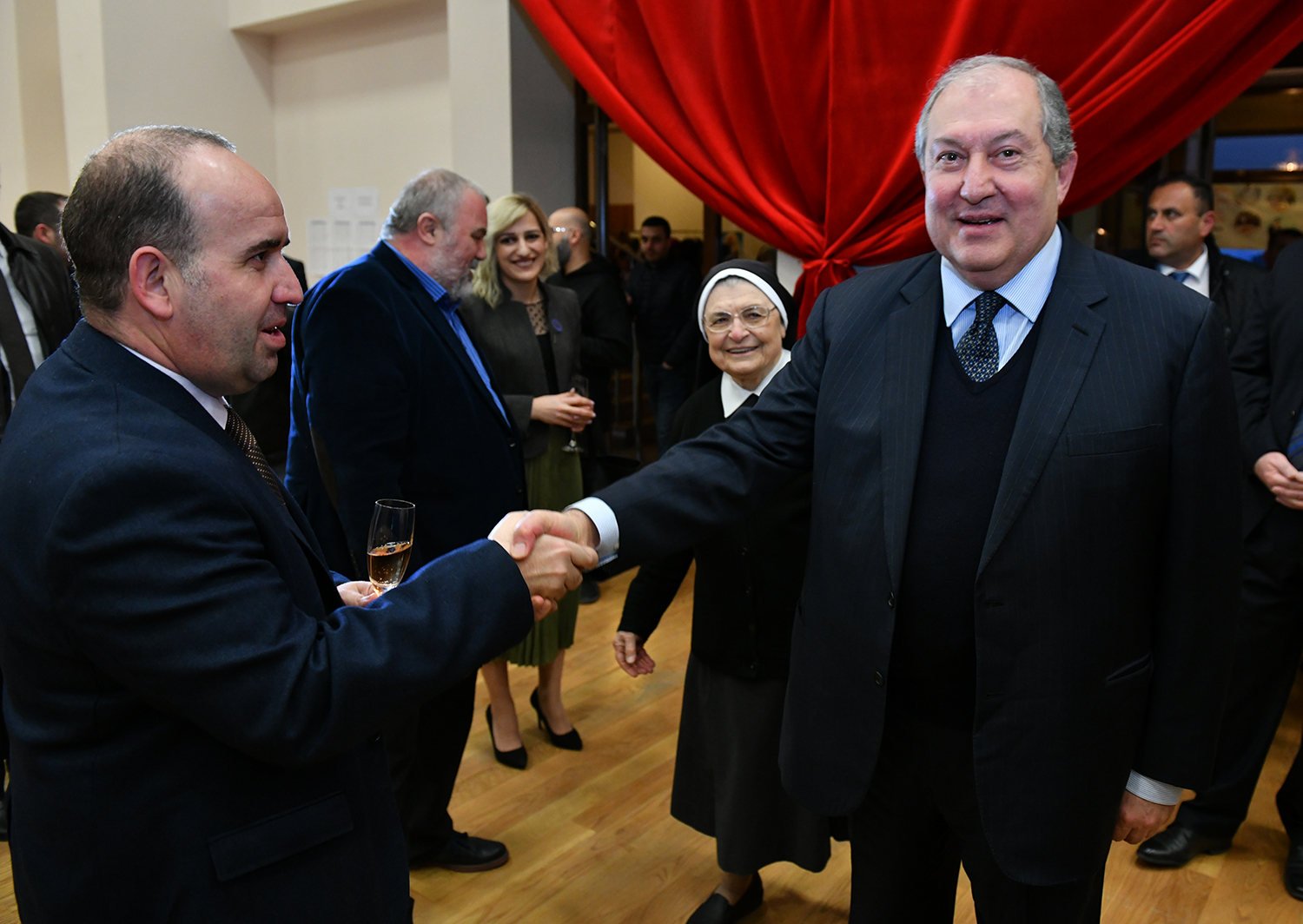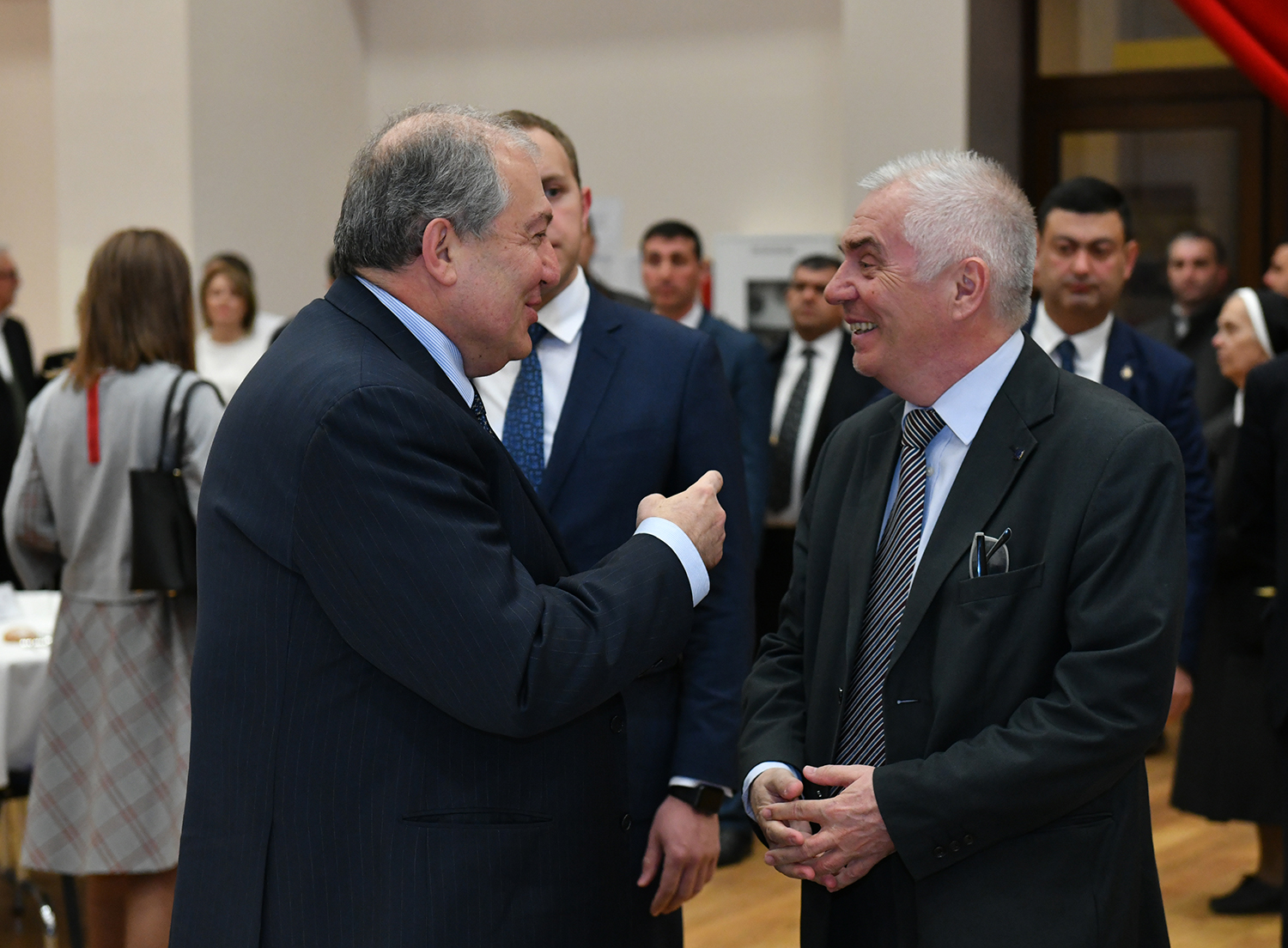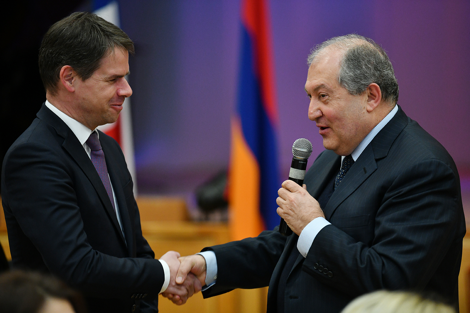 Հայաստանում Ֆրանսիայի արտակարգ և լիազոր դեսպան Ժոնաթան Լաքոթը շնորհակալություն է հայտնել նախագահ Սարգսյանին՝ հրավերն ընդունելու և իր ներկայությամբ ընթրիքը պատվելու համար: Նա նշել է, որ, ավանդական միջոցառում լինելով, ընթրիքն այս անգամ Գյումրիի վերածննդի մասին է, իսկ նախագահ Սարգսյանն այդ վերածննդի ակտիվ մասնակիցներից ու ջատագովներից է: Այդ թեմայով Հանրապետության նախագահն առիթ է ունեցել խոսելու նաև ՅՈՒՆԵՍԿՕ-ի գլխավոր քարտուղարի հետ: