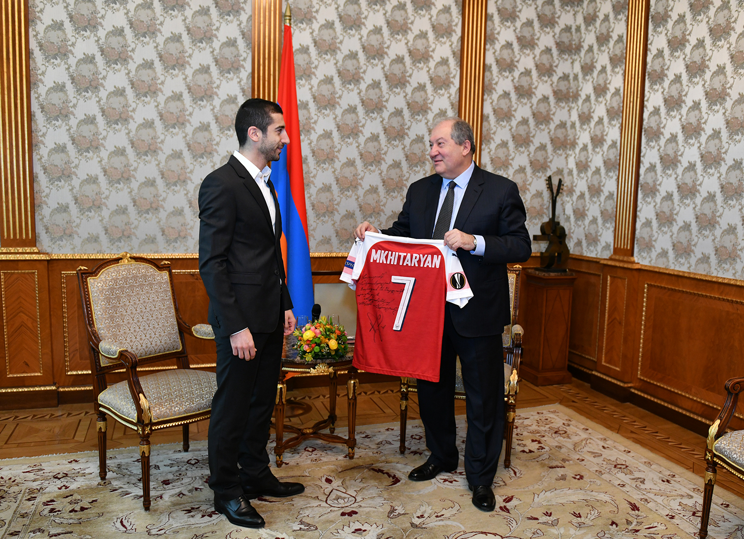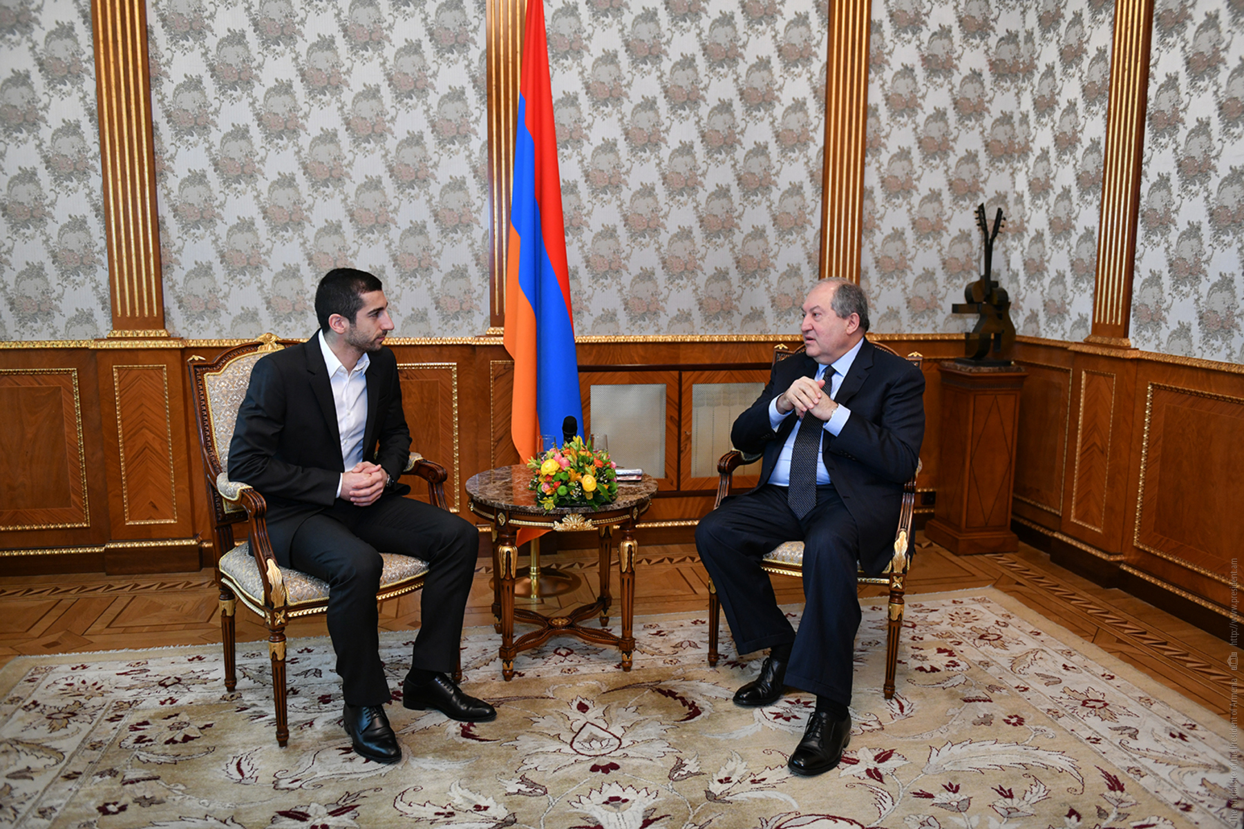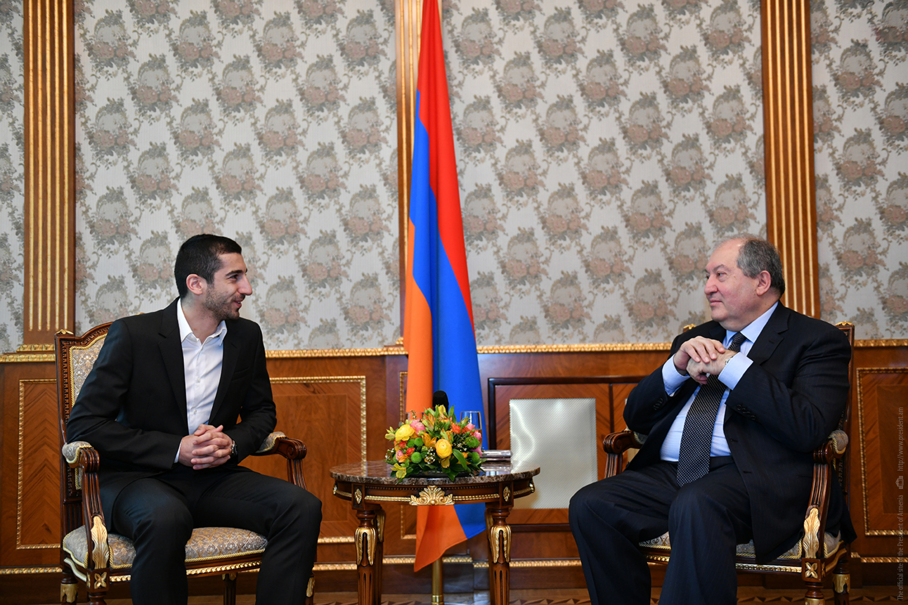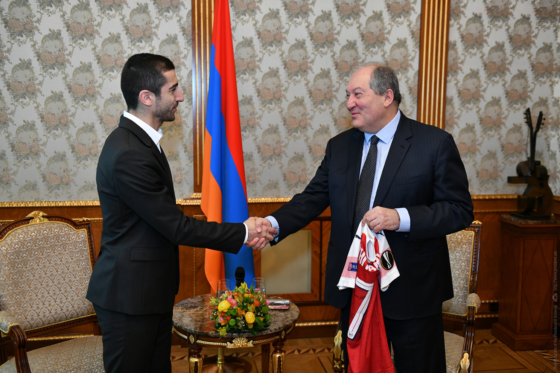Հանրապետության նախագահ Արմեն Սարգսյանն այսօր հյուրընկալել է Հայաստանի ֆուտբոլի ազգային հավաքականի ավագ, Լոնդոնի «Արսենալ» թիմի կիսապաշտպան Հենրիխ Մխիթարյանին: Հանդիպմանը ներկա է եղել նաև գյումրեցի դպրոցական Մանվել Լոռեցյանը: