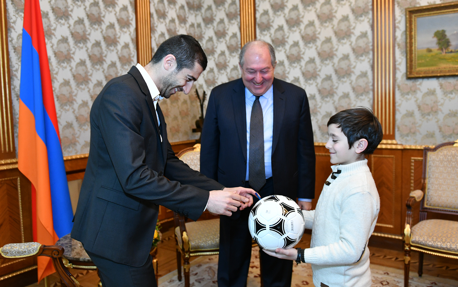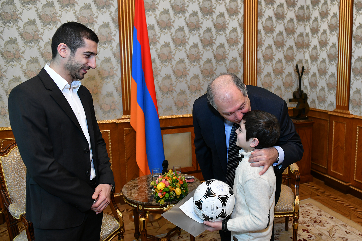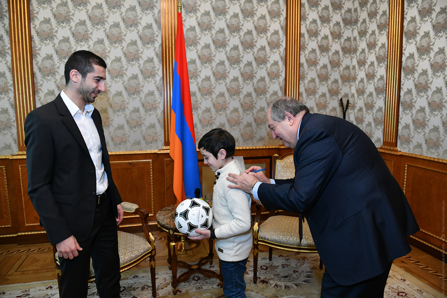 Մարդկանց երազանքները կարող են մեկ օրում կատարվել. նախագահ Արմեն Սարգսյանը հյուրընկալել է Հայաստանի ֆուտբոլի հավաքականի ավագ Հենրիխ Մխիթարյանին և նրա գյումրեցի փոքրիկ երկրպագուին