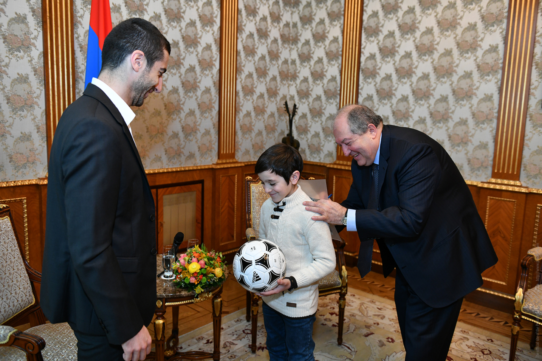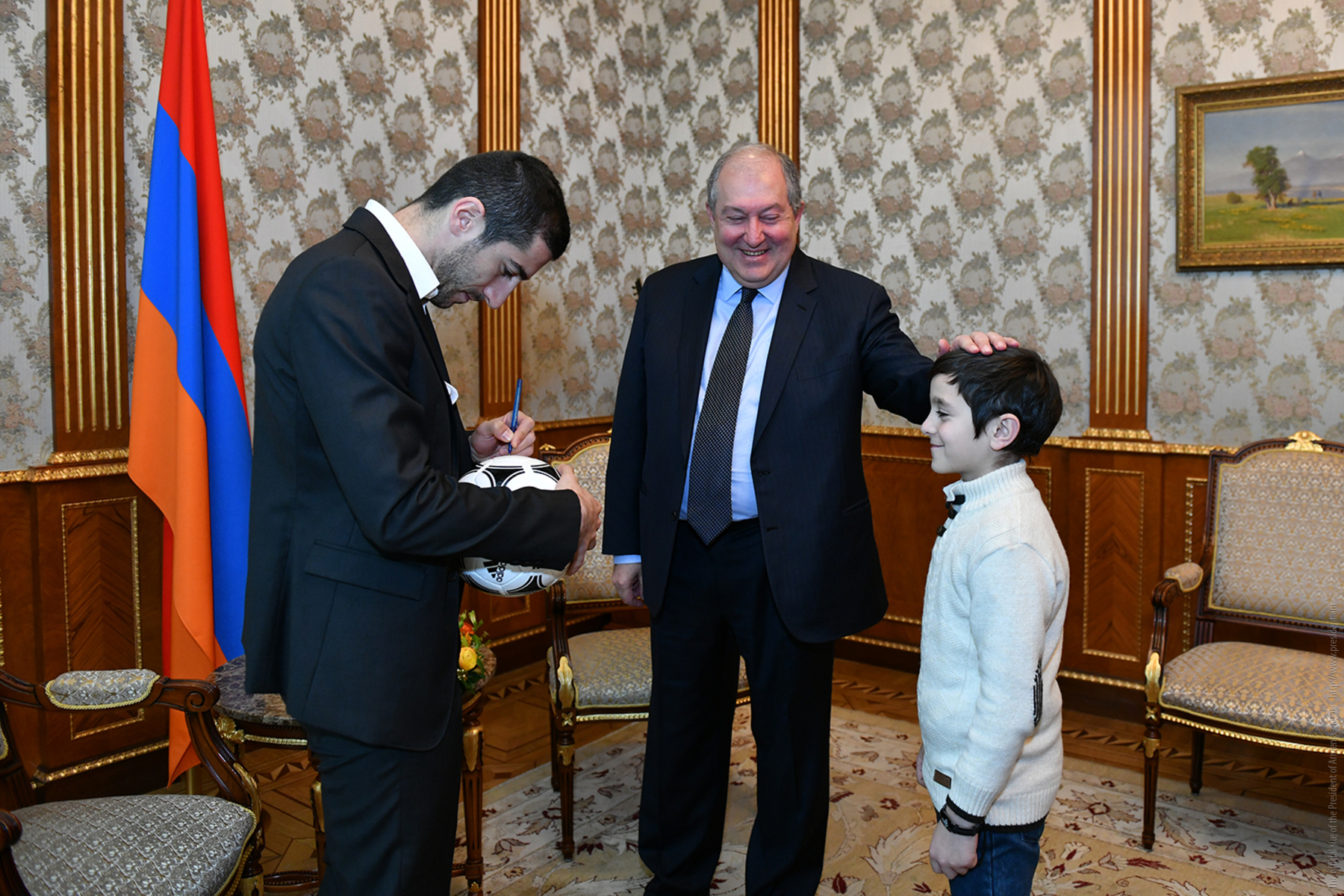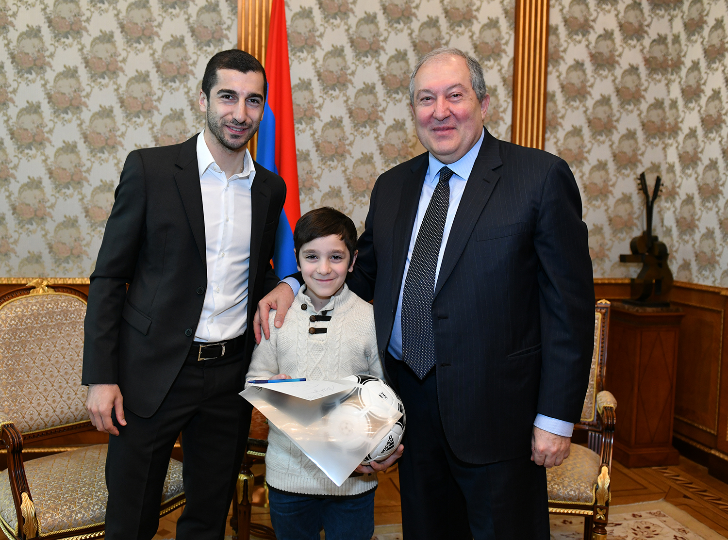 Մարդկանց երազանքները կարող են մեկ օրում կատարվել. նախագահ Արմեն Սարգսյանը հյուրընկալել է Հայաստանի ֆուտբոլի հավաքականի ավագ Հենրիխ Մխիթարյանին և նրա գյումրեցի փոքրիկ երկրպագուին