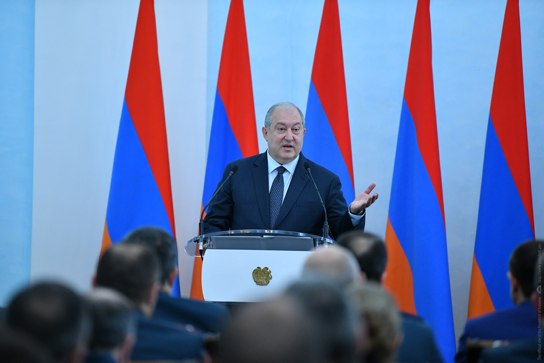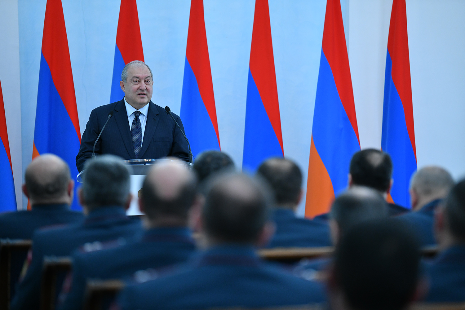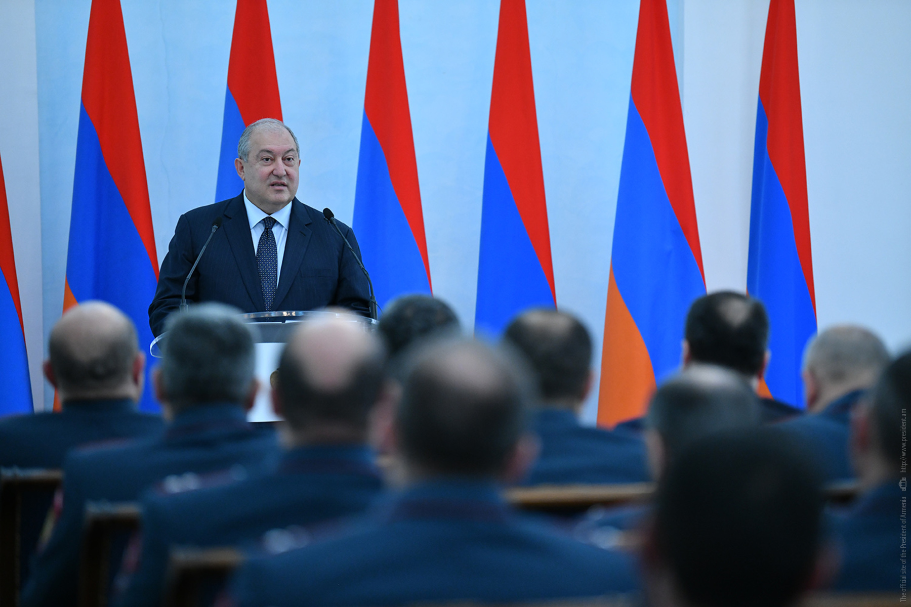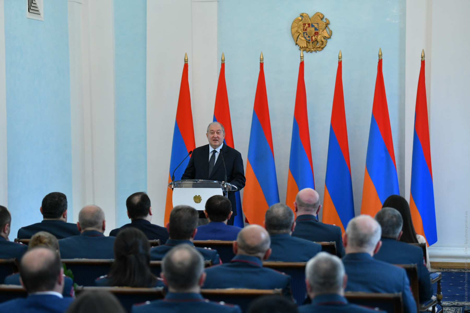 Ծառայելով հայրենիքին, ծառայելով օրենքին՝ վստահ եմ, դուք գիտակցում եք ձեր անձնական պատասխանատվությունը հայրենիքի, հասարակության, մեր ժողովրդի առջև: Որովհետև, ի տարբերություն մյուս պետական ծառայությունների, դուք չեք կարող անհամբերությամբ նայել ժամացույցին և սպասել, թե երբ պետք է տուն գնաք: Որովհետև դուք գիտակցում և զգում եք, որ ձեր աշխատանքը շարունակվելու է նաև այն պահից սկսած, երբ հանում եք ձեր համազգեստը, երբ փողոցում եք կամ տանը՝ ձեր աշխատավայրից հեռու: Այսինքն՝ ինչ-որ իմաստով դուք համազգեստ եք կրում նաև բոլոր այն պահերին, երբ համազգեստ չունեք, և սա մեծ իմաստ ունի»: