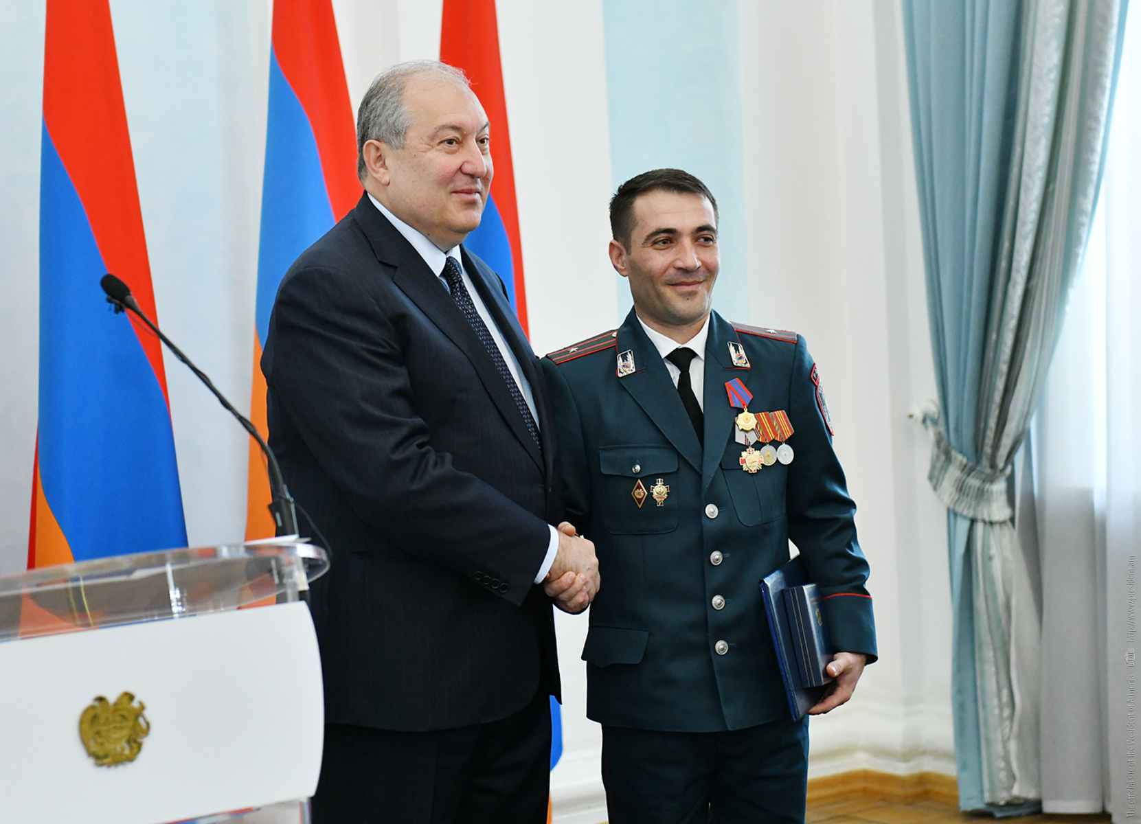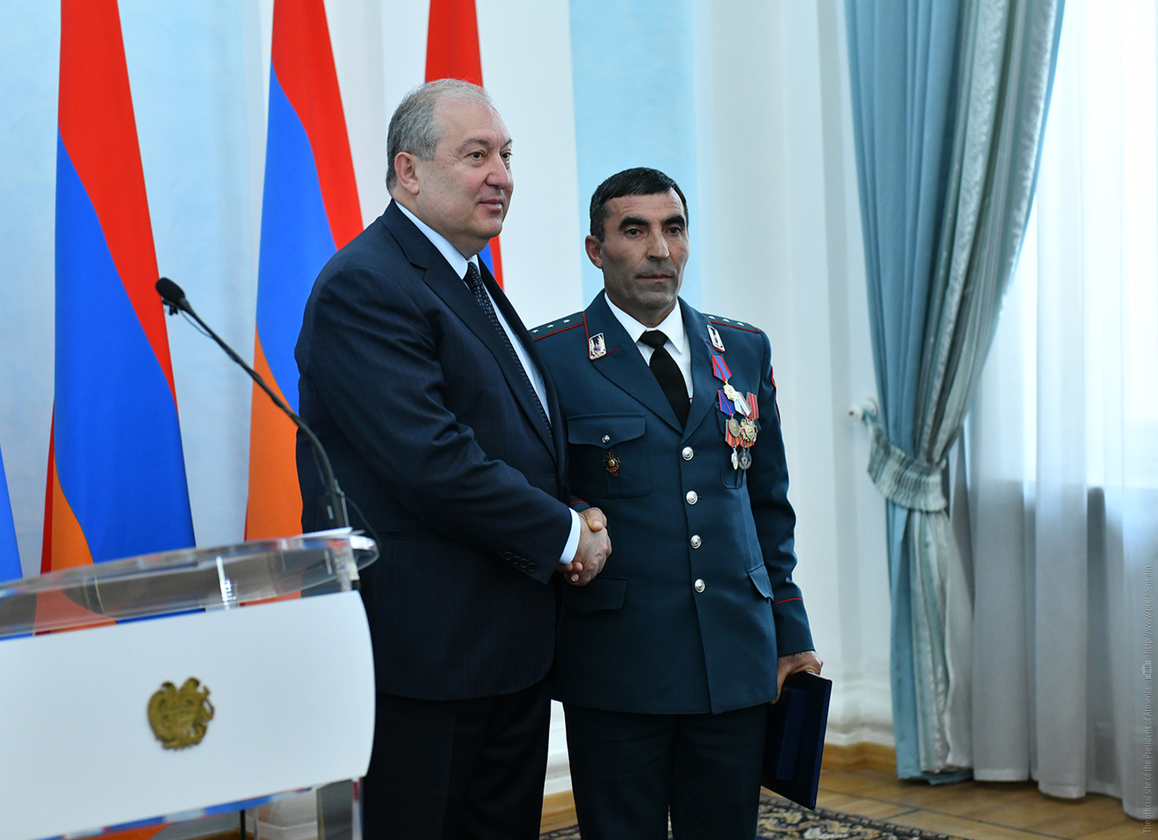 Շնորհավորելով պարգևատրմանը ներկա ոստիկաններին և ի դեմս նրանց՝ Հայաստանի Հանրապետության ոստիկանության համակարգի բոլոր աշխատակիցներին Ոստիկանության օրվա առթիվ՝ Հանրապետության նախագահը մասնավորապես նշել է, որ իրավապահ համակարգը պետության հենասյուներից մեկն է, իսկ ոստիկանությունը՝ այդ համակարգի կարևորագույն մասն ու առանցքը: