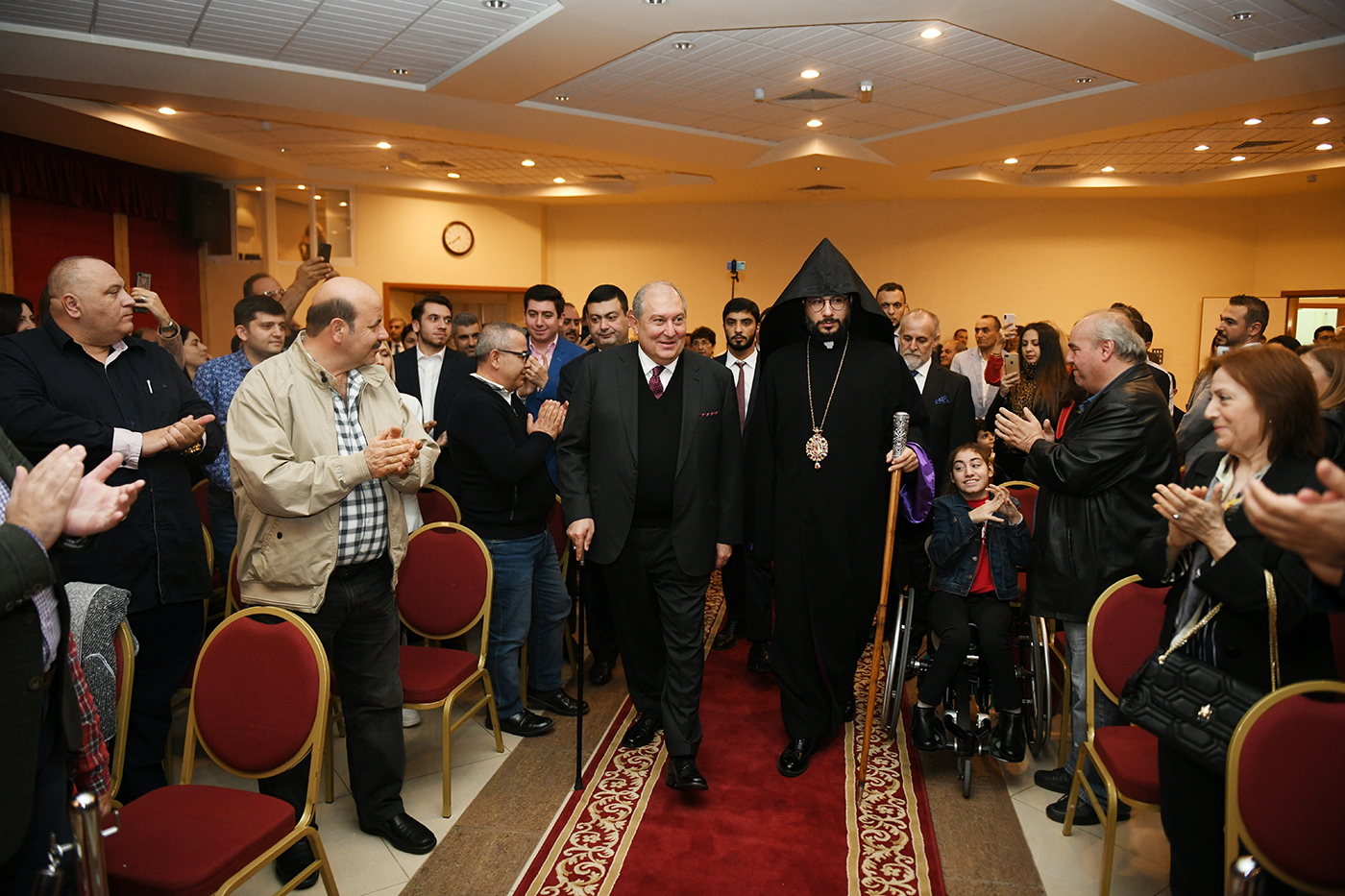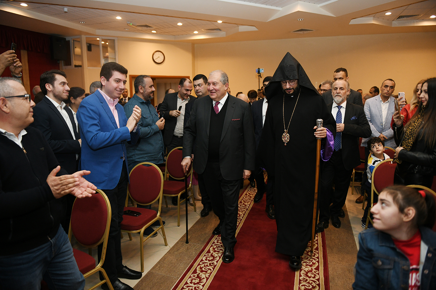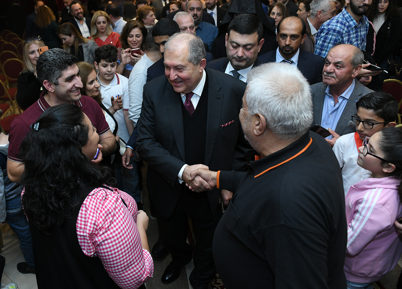 Օհաննէսեան հայկական վարժարանի սրահում նախագահ Սարգսյանը դիտել է վարժարանի սաների փոքրիկ համերգը, այնուհետև հանդիպել հայ համայնքի ներկայացուցիչների հետ։