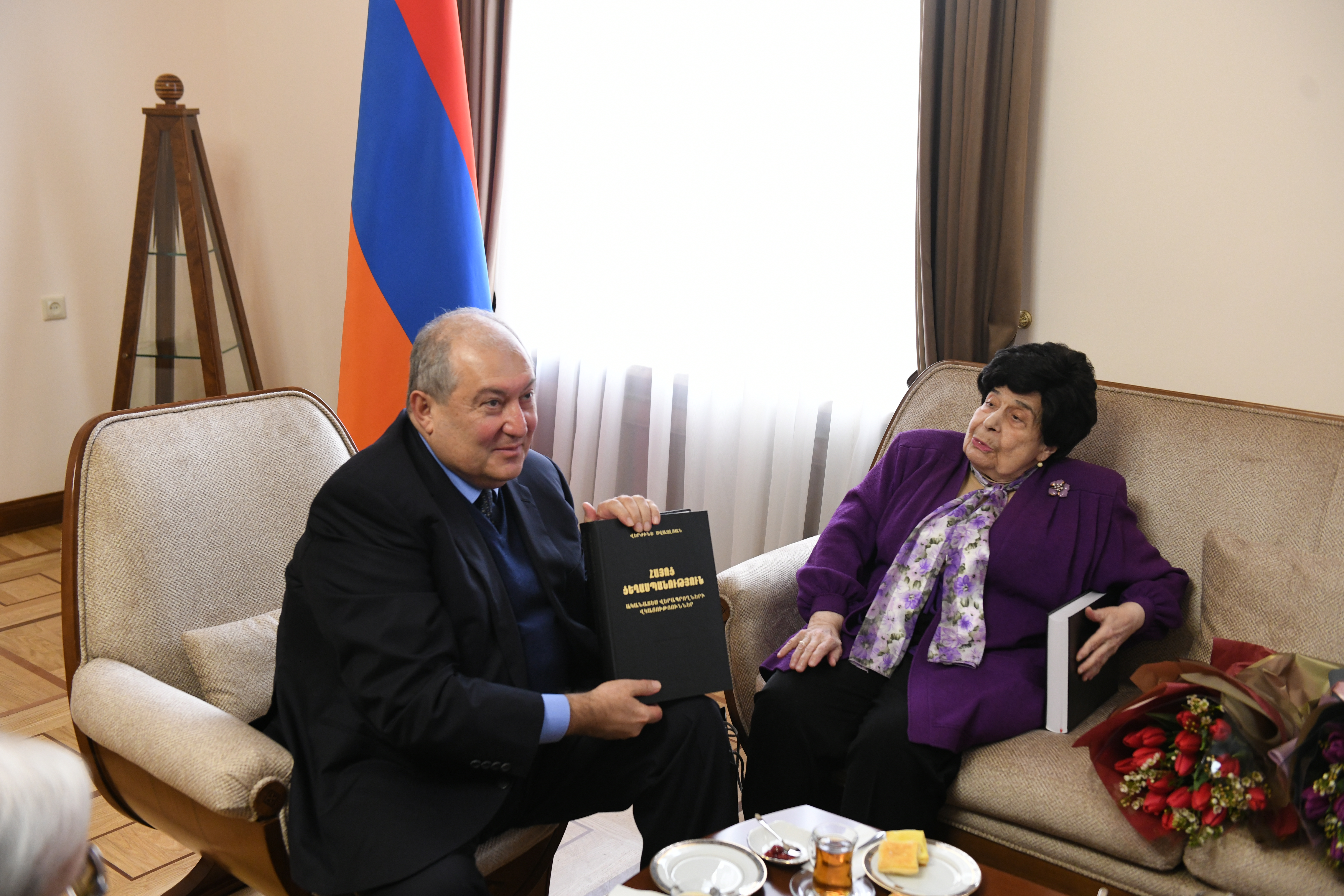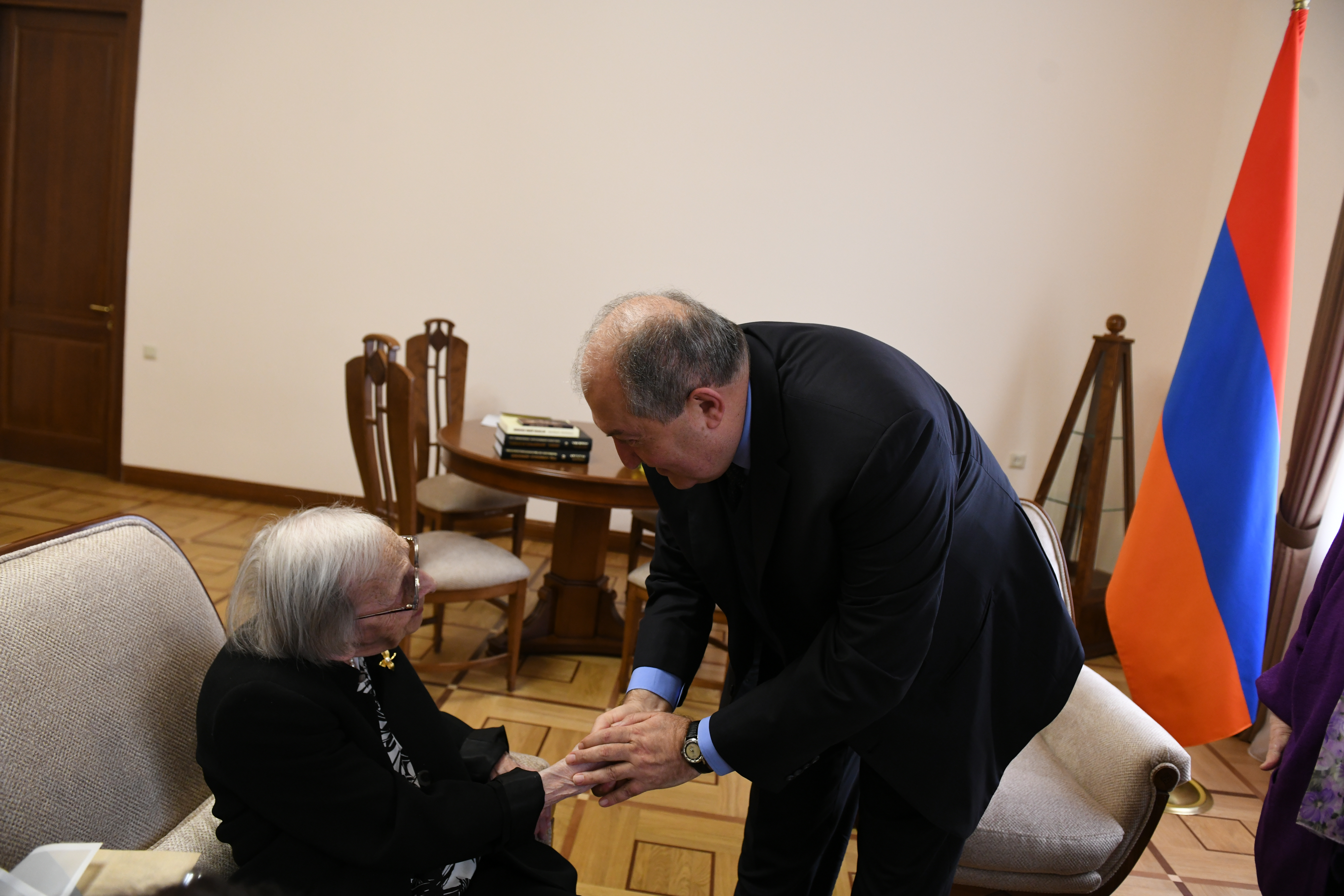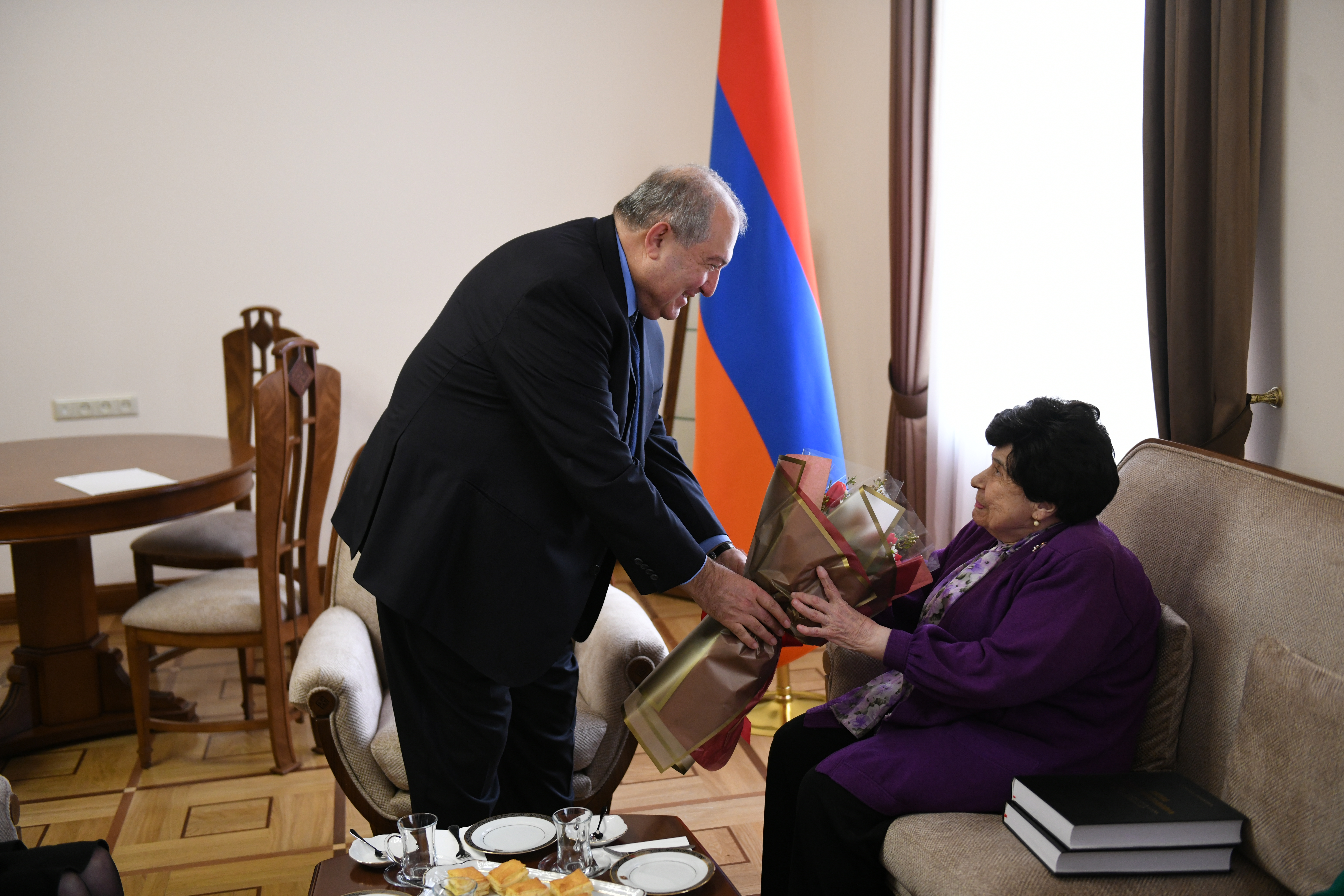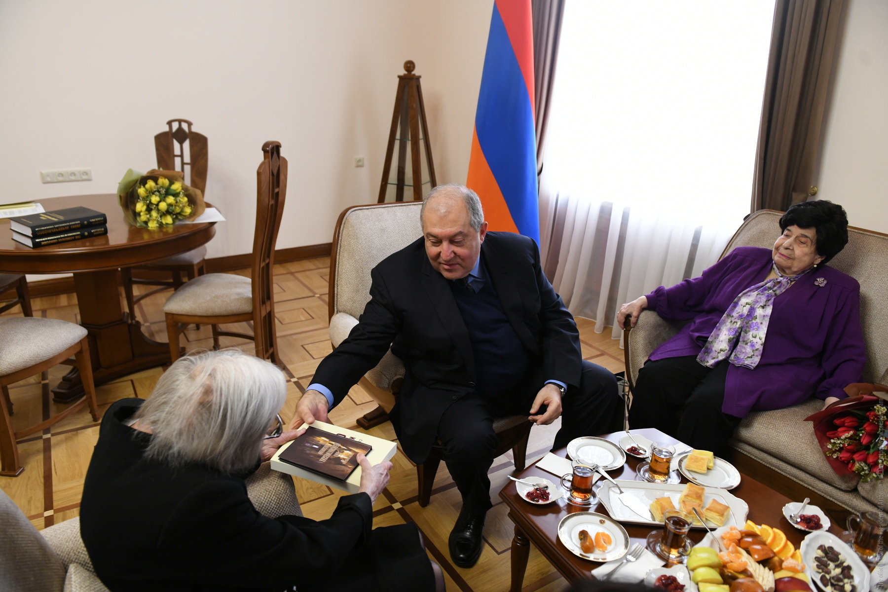 Հանրապետության նախագահ Արմեն Սարգսյանը Կանանց տոնի նախօրեին նախագահական նստավայրում հյուրընկալել է ժողովրդագետ, բանահավաք, ցեղասպանագետ, ՀՀ ԳԱԱ հնագիտության և ազգագրության ինստիտուտի առաջատար գիտաշխատող, բանասիրական գիտությունների դոկտոր, պրոֆեսոր, ՀՀ գիտության վաստակավոր գործիչ Վերժինե Սվազլյանին, պատմաբան, թարգմանիչ, պատմական գիտությունների թեկնածու, Երկրորդ Համաշխարհային պատերազմի մասնակից, Մատենադարանի ավագ գիտաշխատող Մարգարիտա Դարբինյանին, կոմպոզիտոր, մանկավարժ, ՀՀ ժողովրդական արտիստ Գեղունի Չթչյանին, Երկրորդ Համաշխարհային պատերազմի վետերան Ռոզալիա Աբգարյանին: