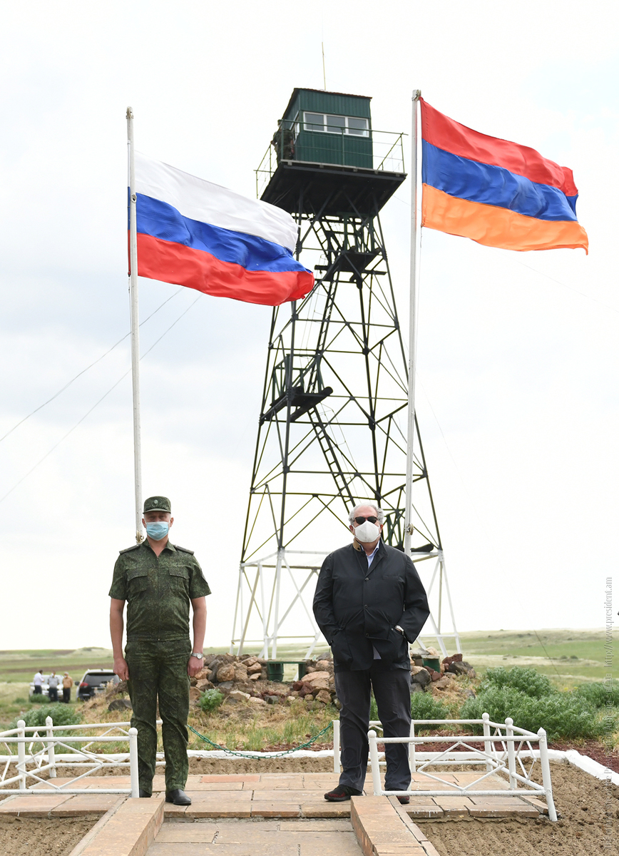Հանրապետության նախագահ Արմեն Սարգսյանն անցյալ շաբաթավերջին այցելել է Հայաստանի պետական սահման, եղել Ռուսաստանի սահմանապահ զորքերի ջոկատում, որը, համաձայն 1992թ. սեպտեմբերի 30-ի Հայաստանի և Ռուսաստանի միջպետական համաձայնագրի, իրականացնում է Թուրքիայի և Իրանի հետ Հայաստանի Հանրապետության պետական սահմանի հսկողությունը: