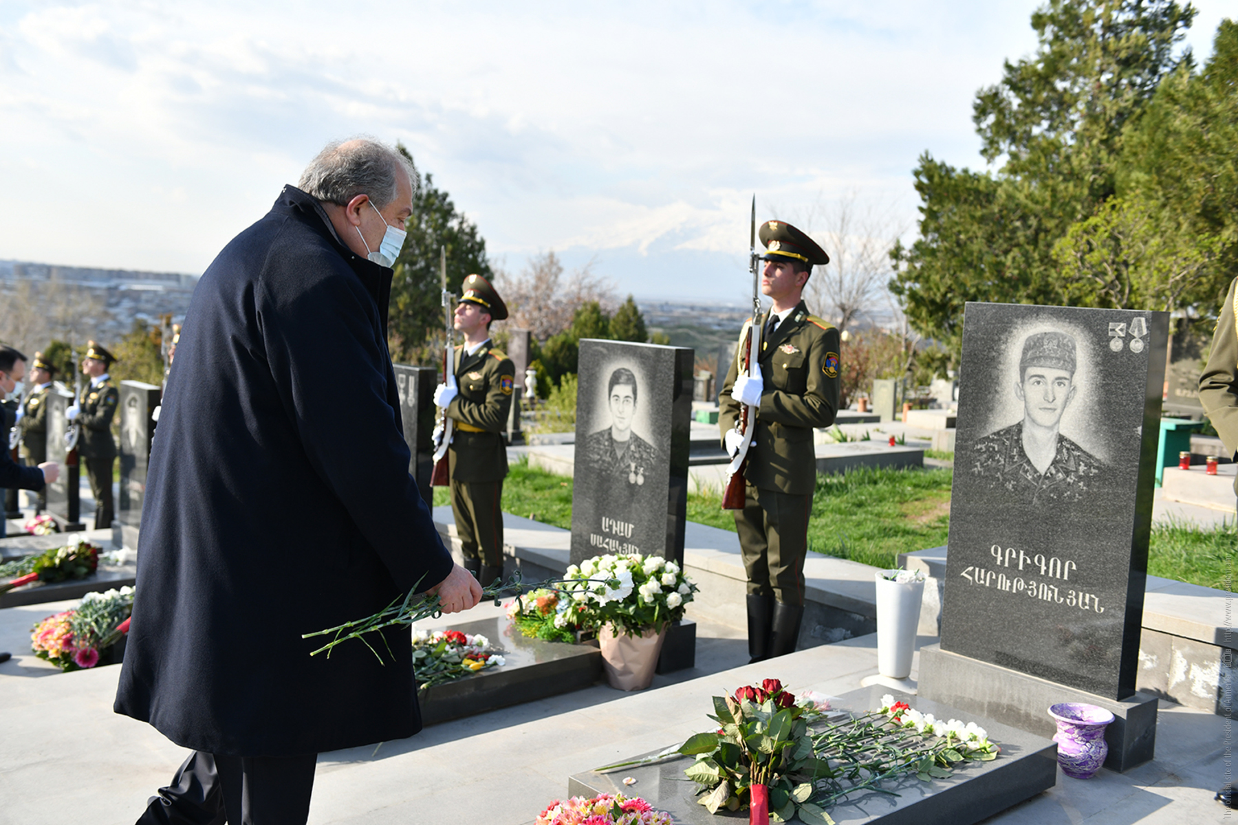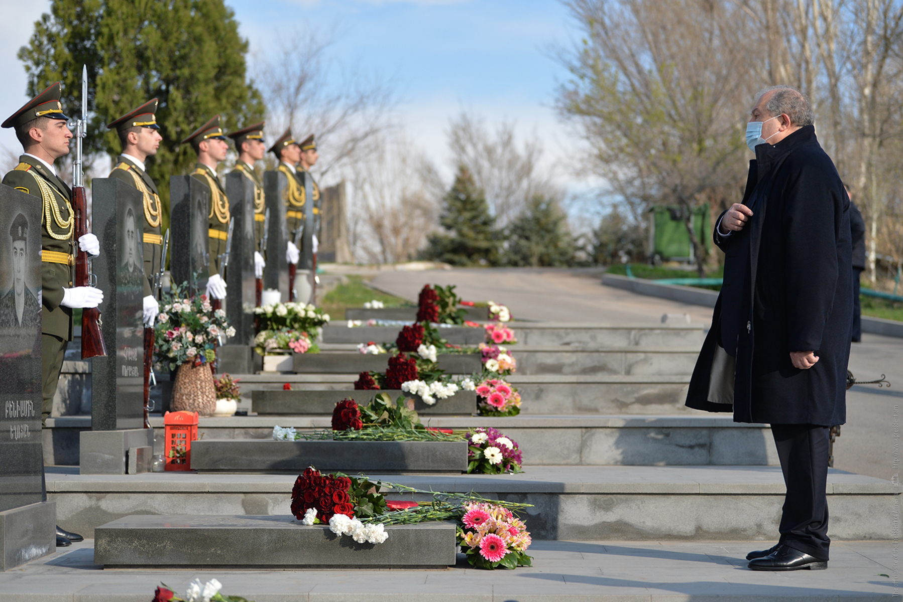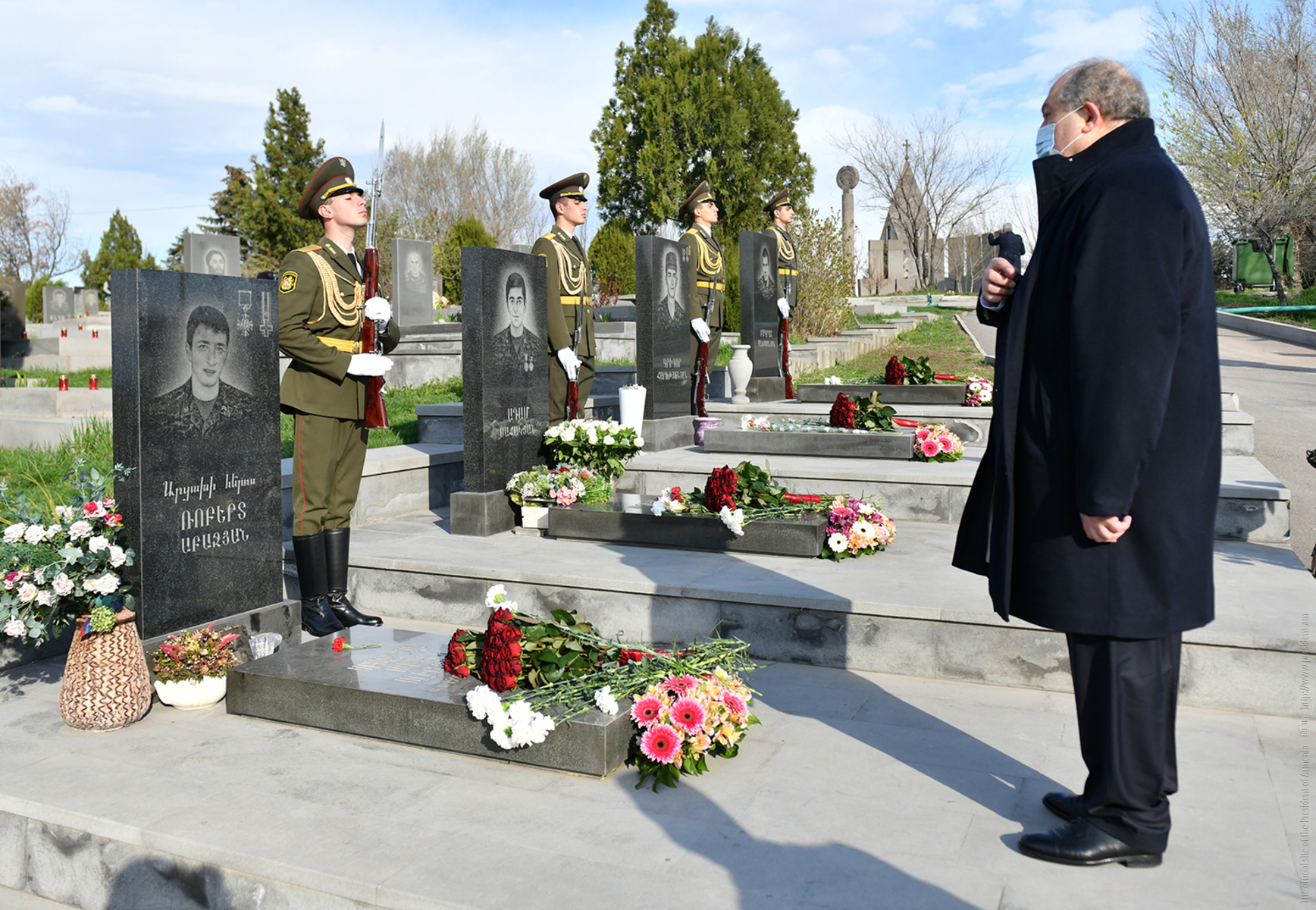 Նախագահ Սարգսյանը ծաղիկներ է դրել 2016թ. ապրիլյան ռազմական գործողությունների, ինչպես նաև արցախյան վերջին պատերազմի ժամանակ իրենց կյանքը զոհաբերած հերոսների շիրիմներին և հարգանքի տուրք մատուցել նրանց հիշատակին, զրուցել Եռաբլուր այցելած՝ արցախյան պատերազմի ժամանակ զոհված զինծառայողների հարազատների հետ: